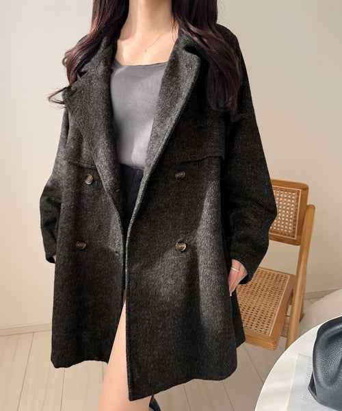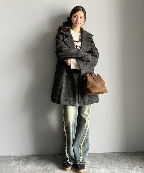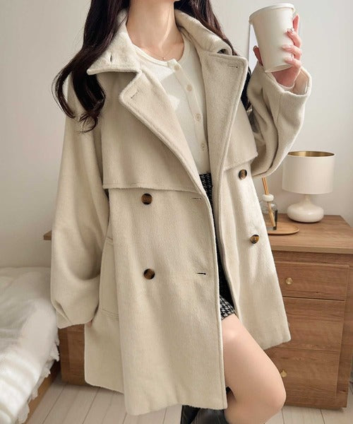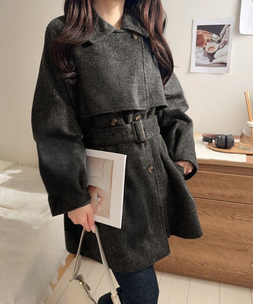 前後にヨーク切替があり、どの角度から見ても可愛いシルエットが楽しめる冬に大活躍の万能コートです◎