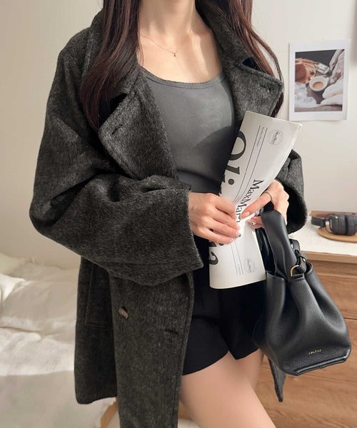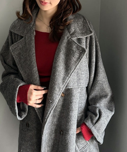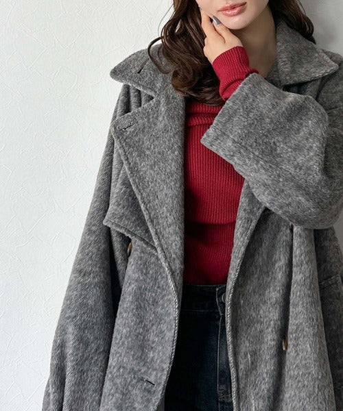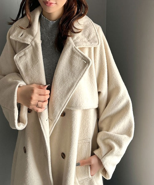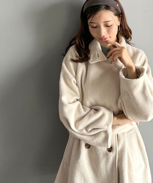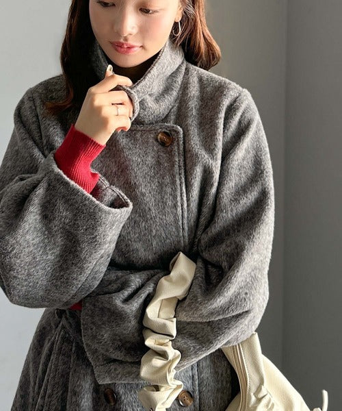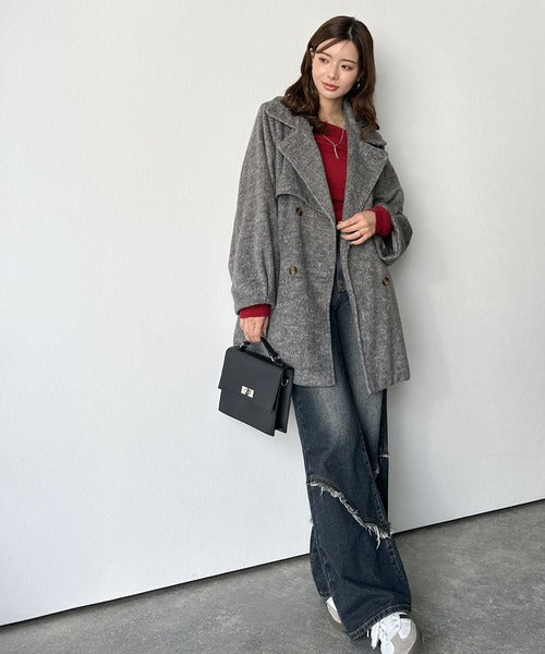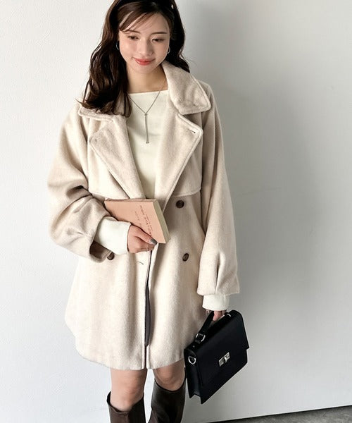 柔らかなフェザーショートシャギー素材を使用したコート。
