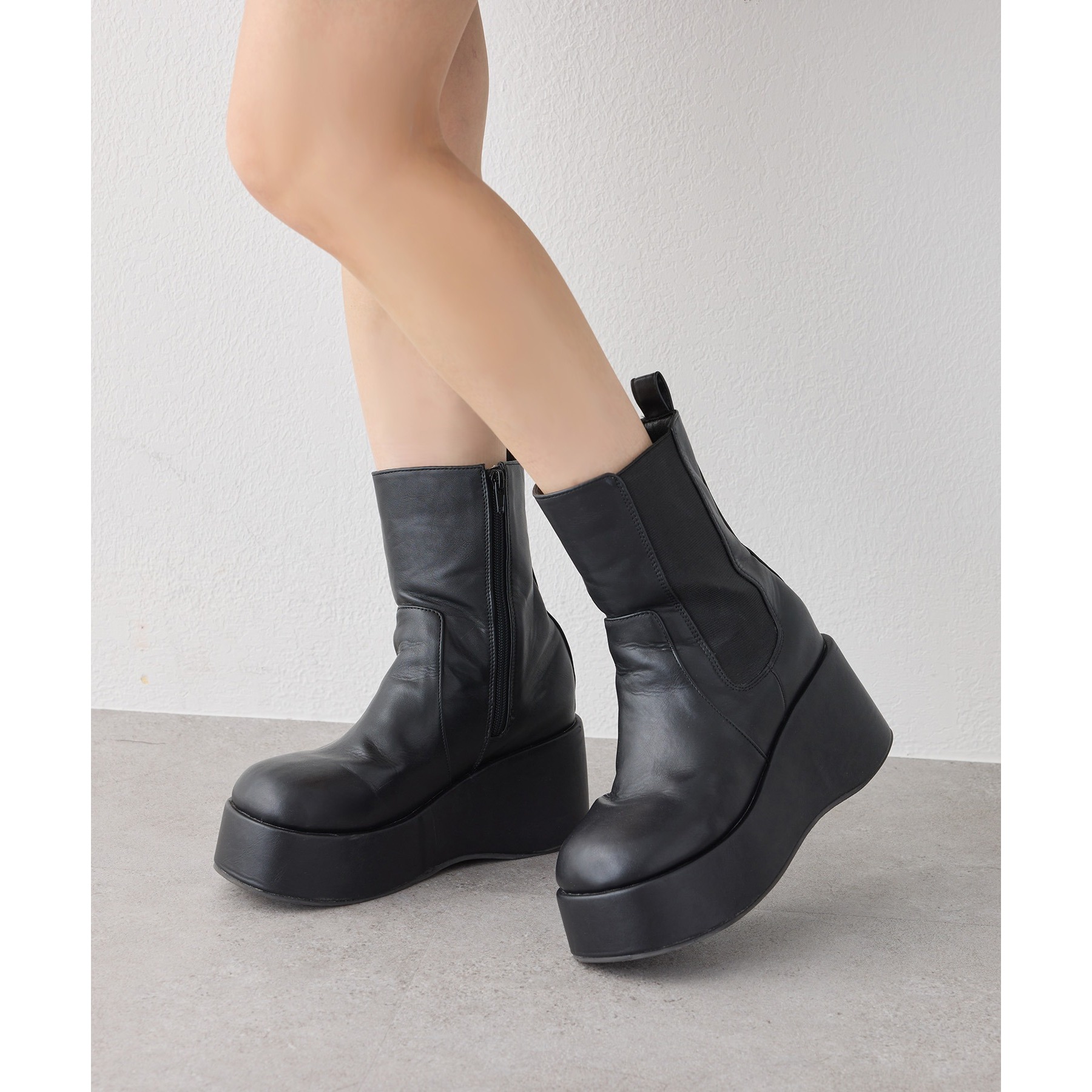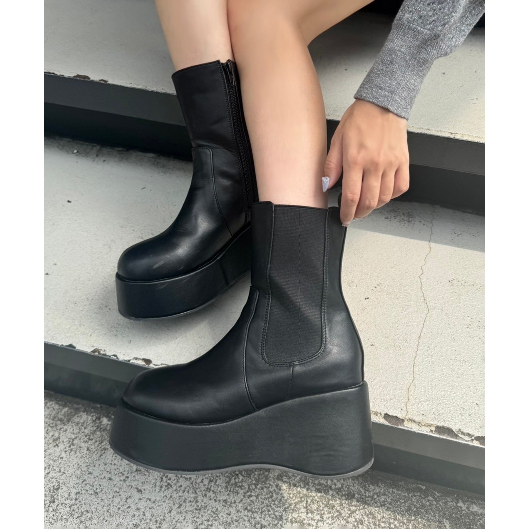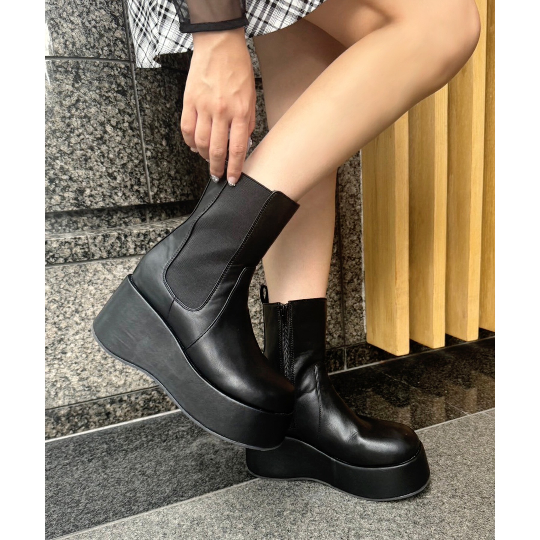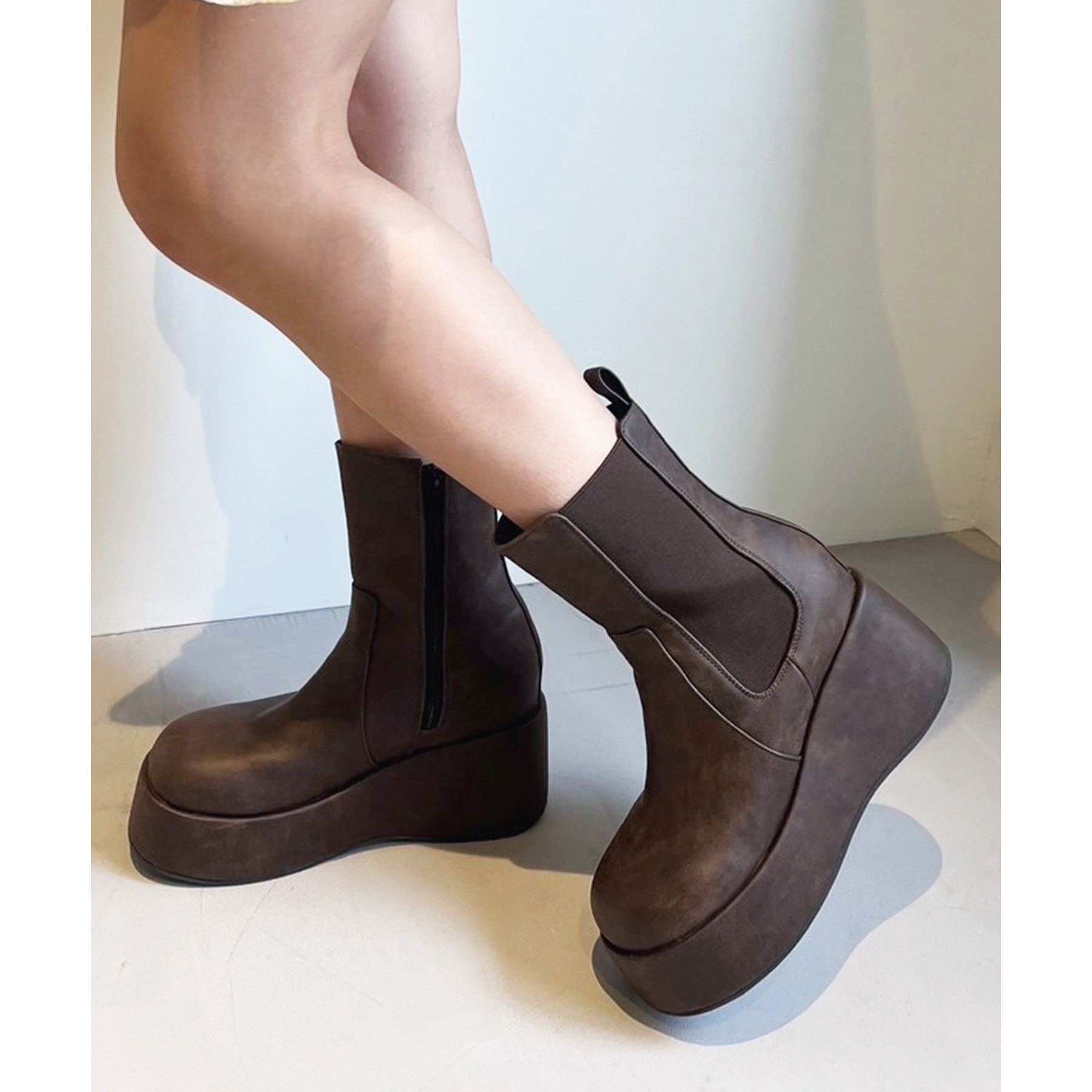 【マイナス3キロ見え】サイドゴアボリュームソールショートブーツ