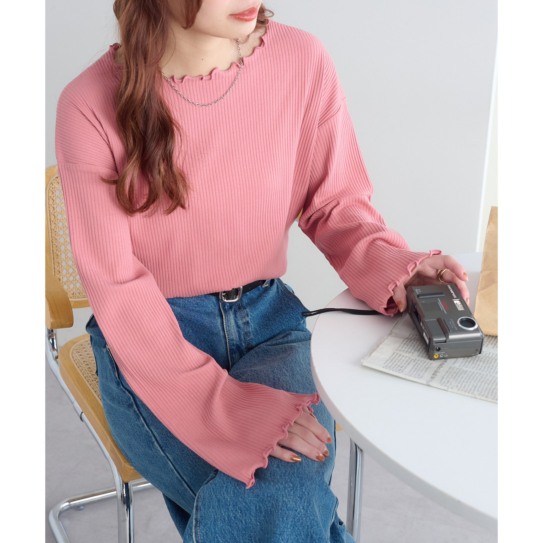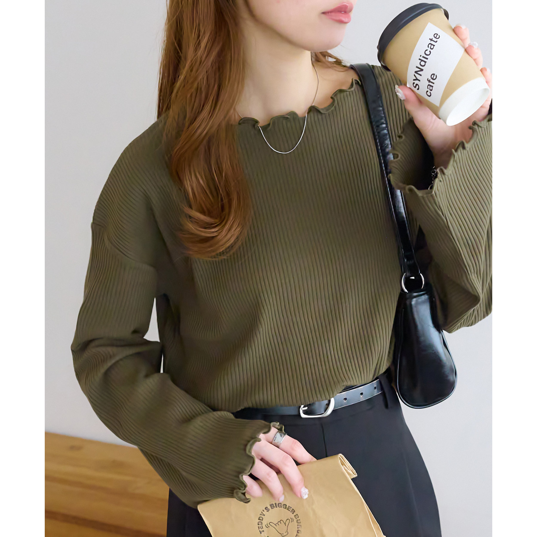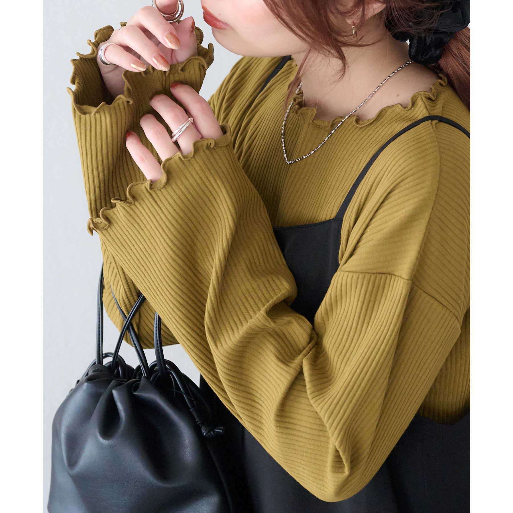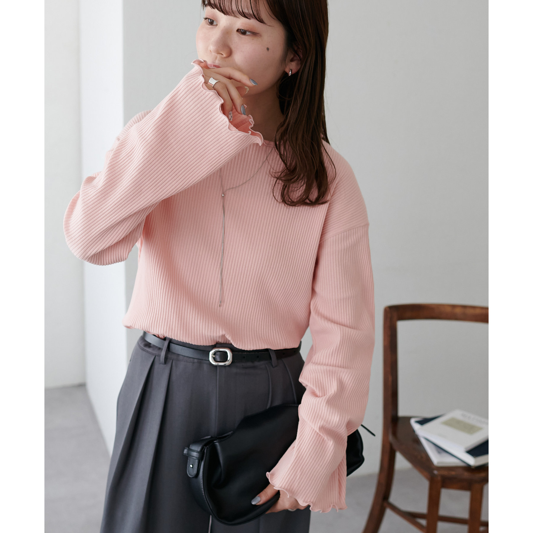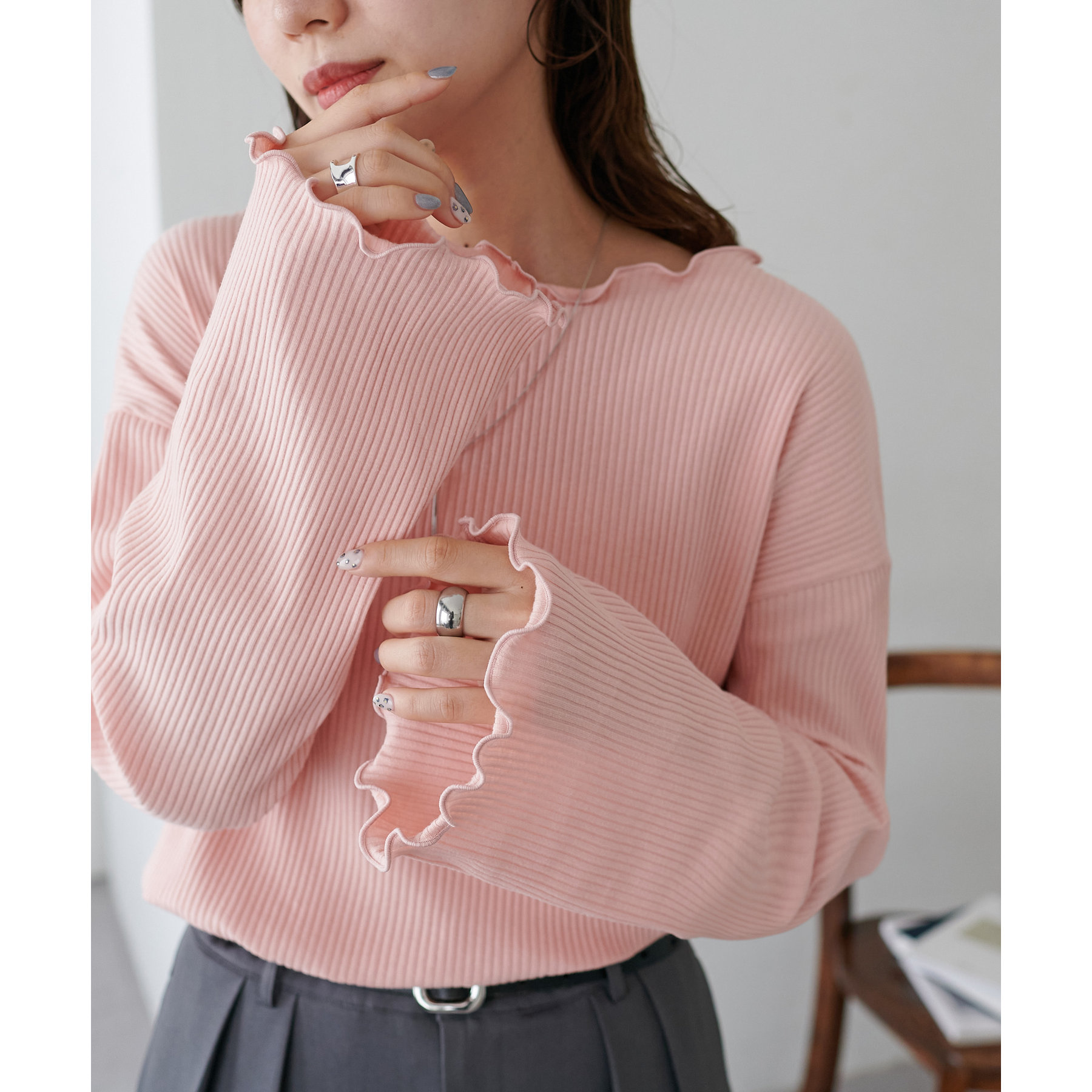 ・袖口・裾口・首元のメローデザインがポイントのリブトップス