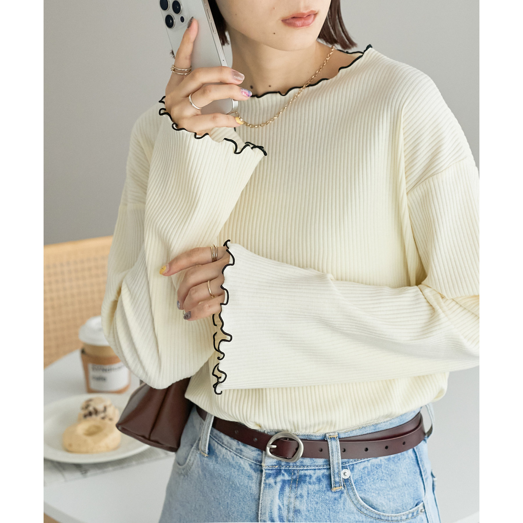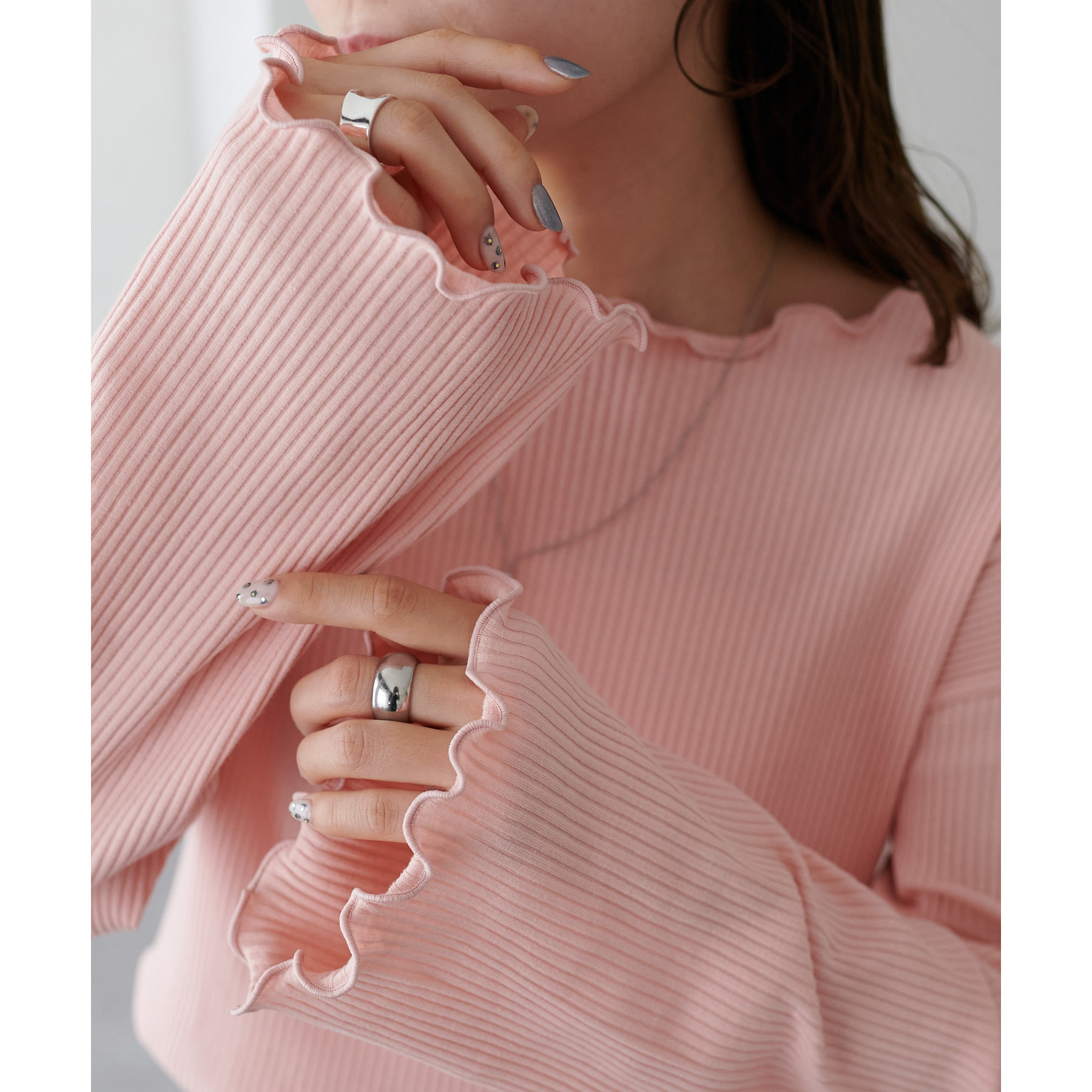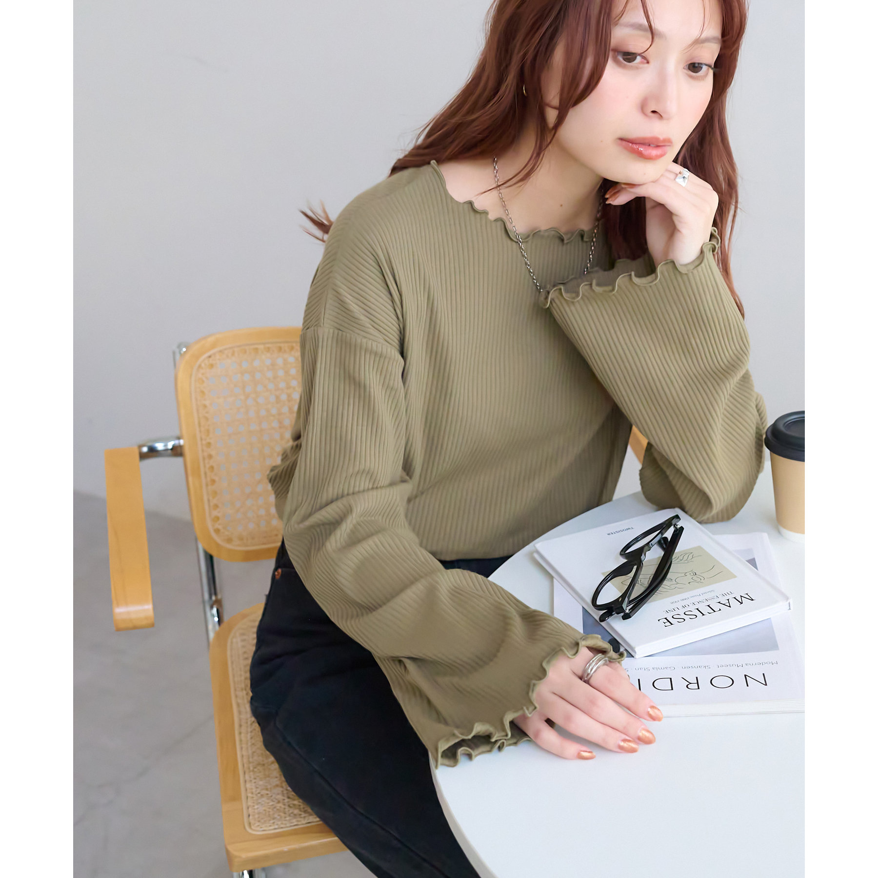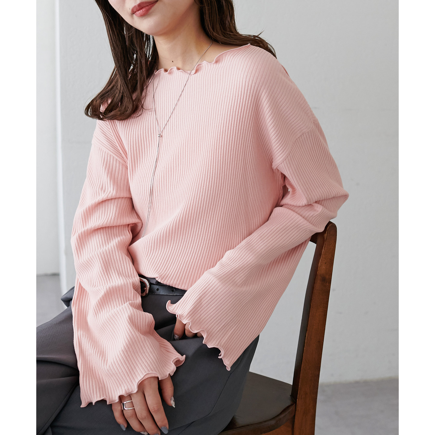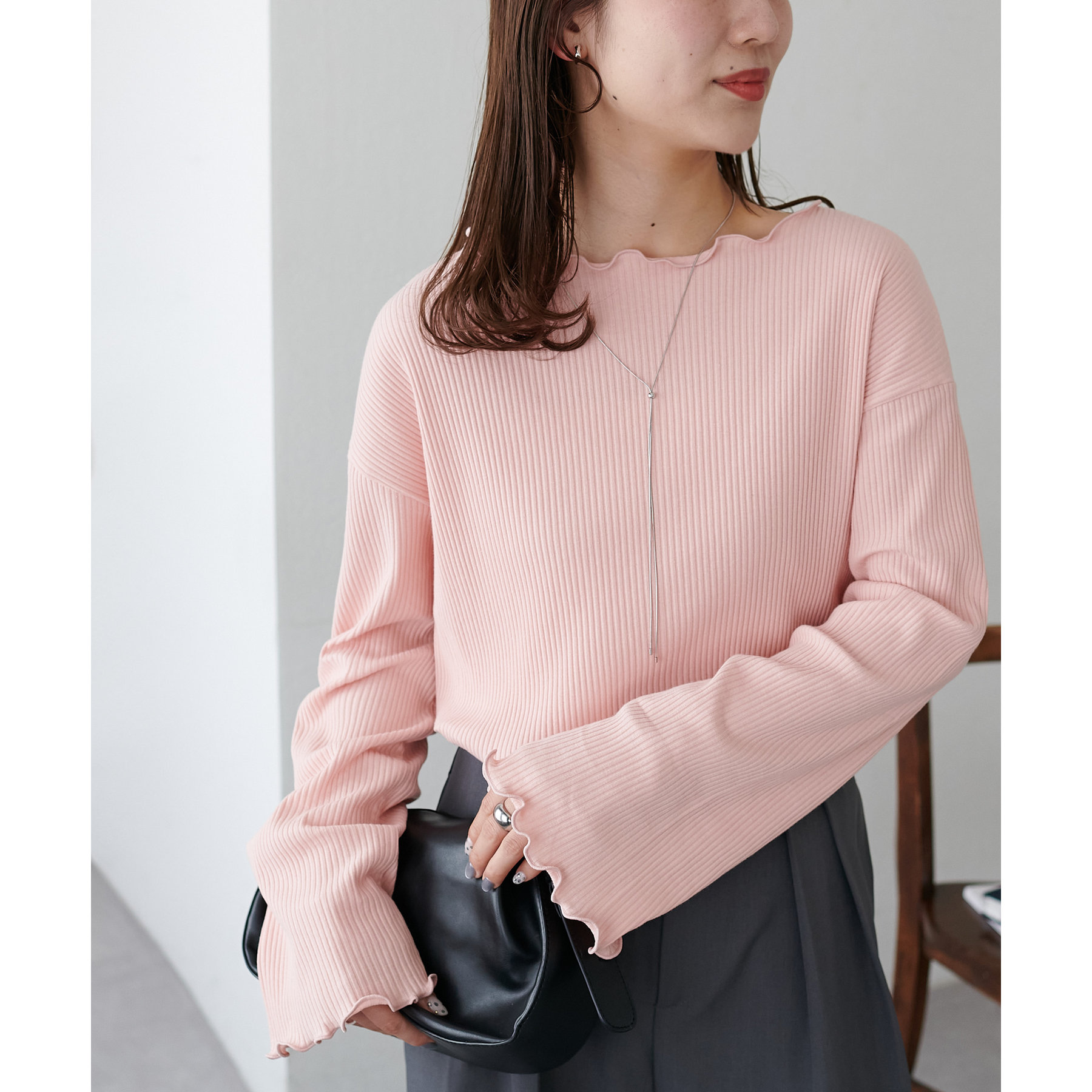 ・袖口・裾口・首元のメローデザインがポイントのリブトップス