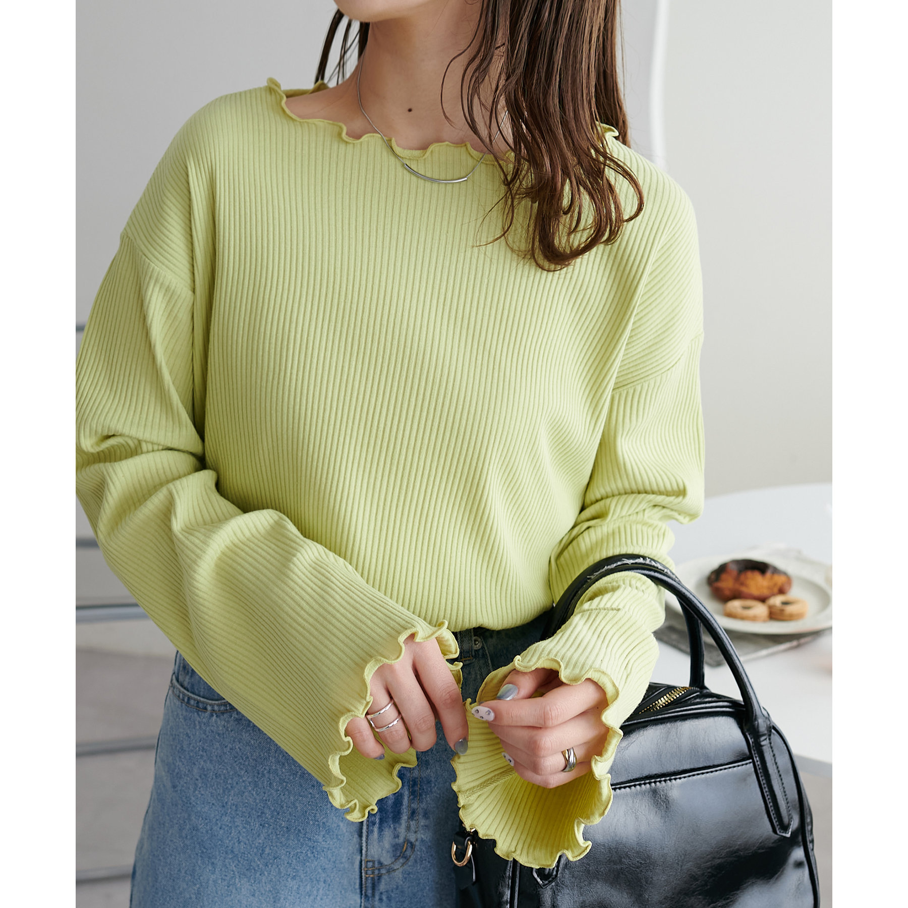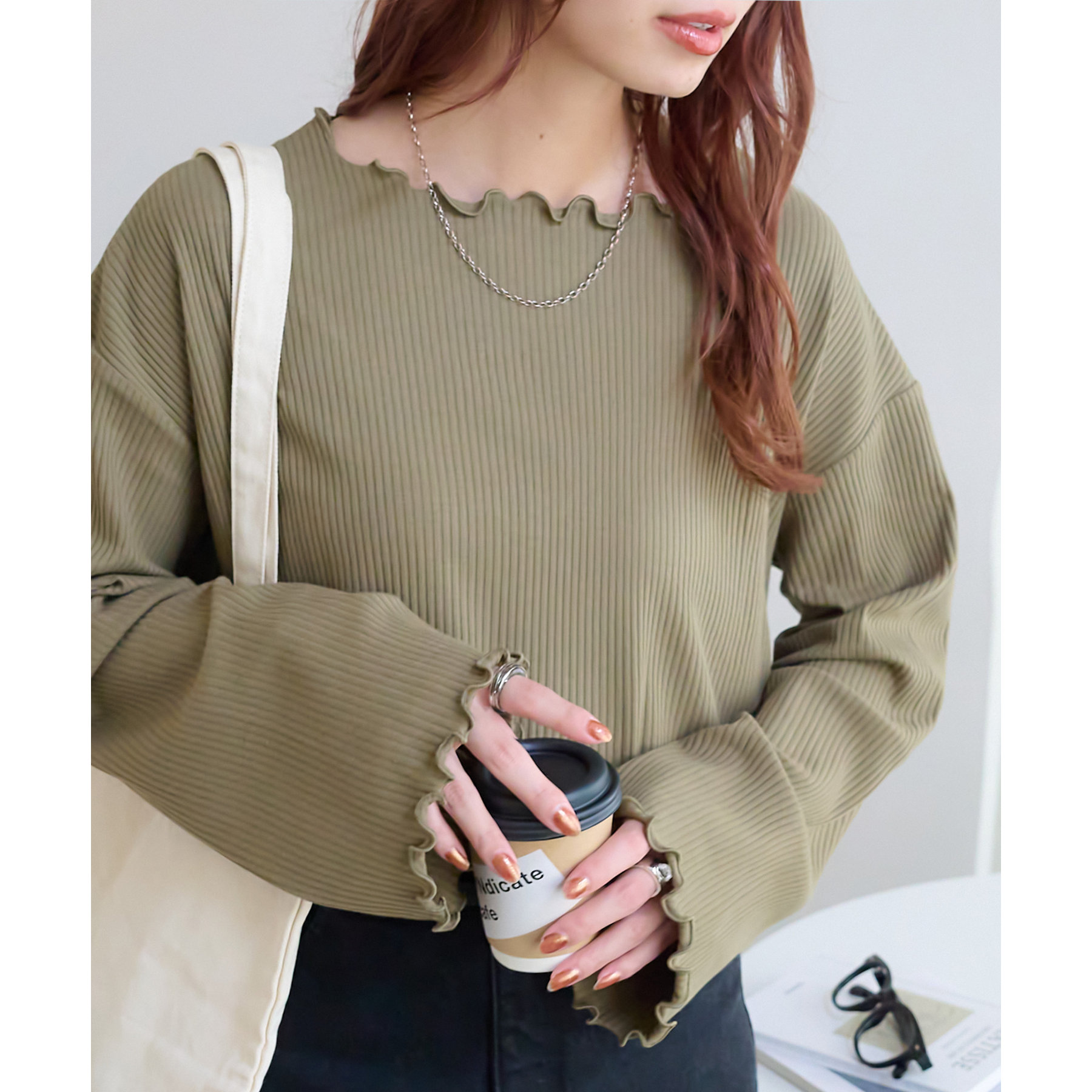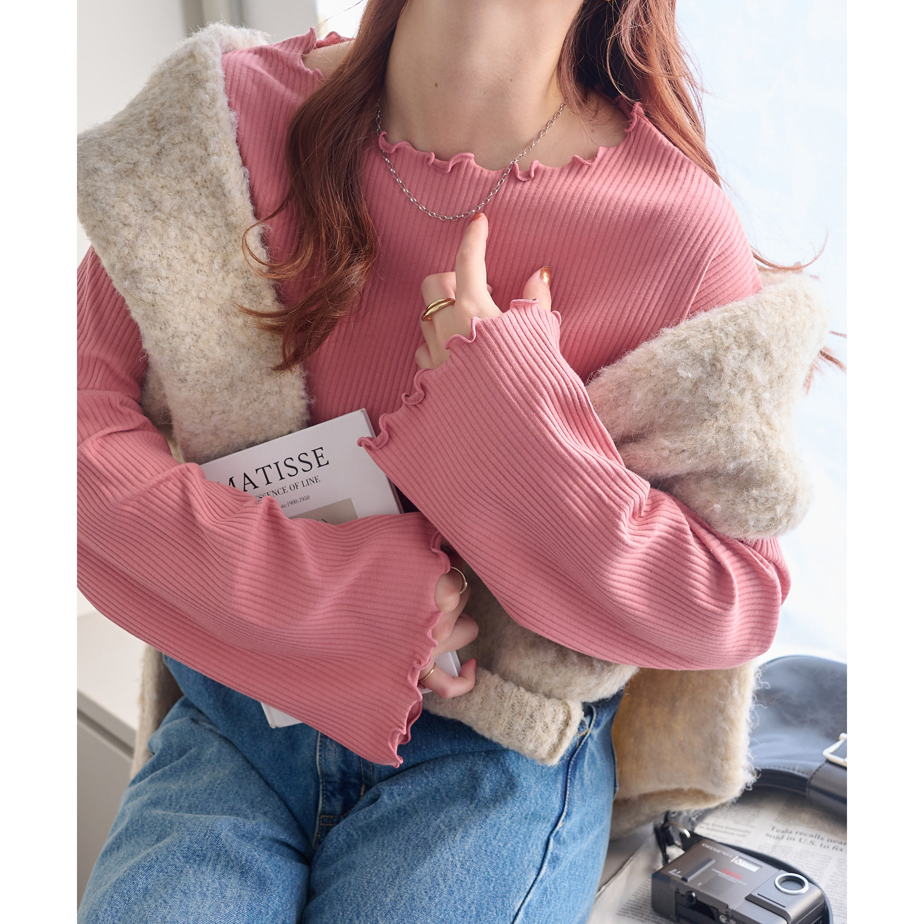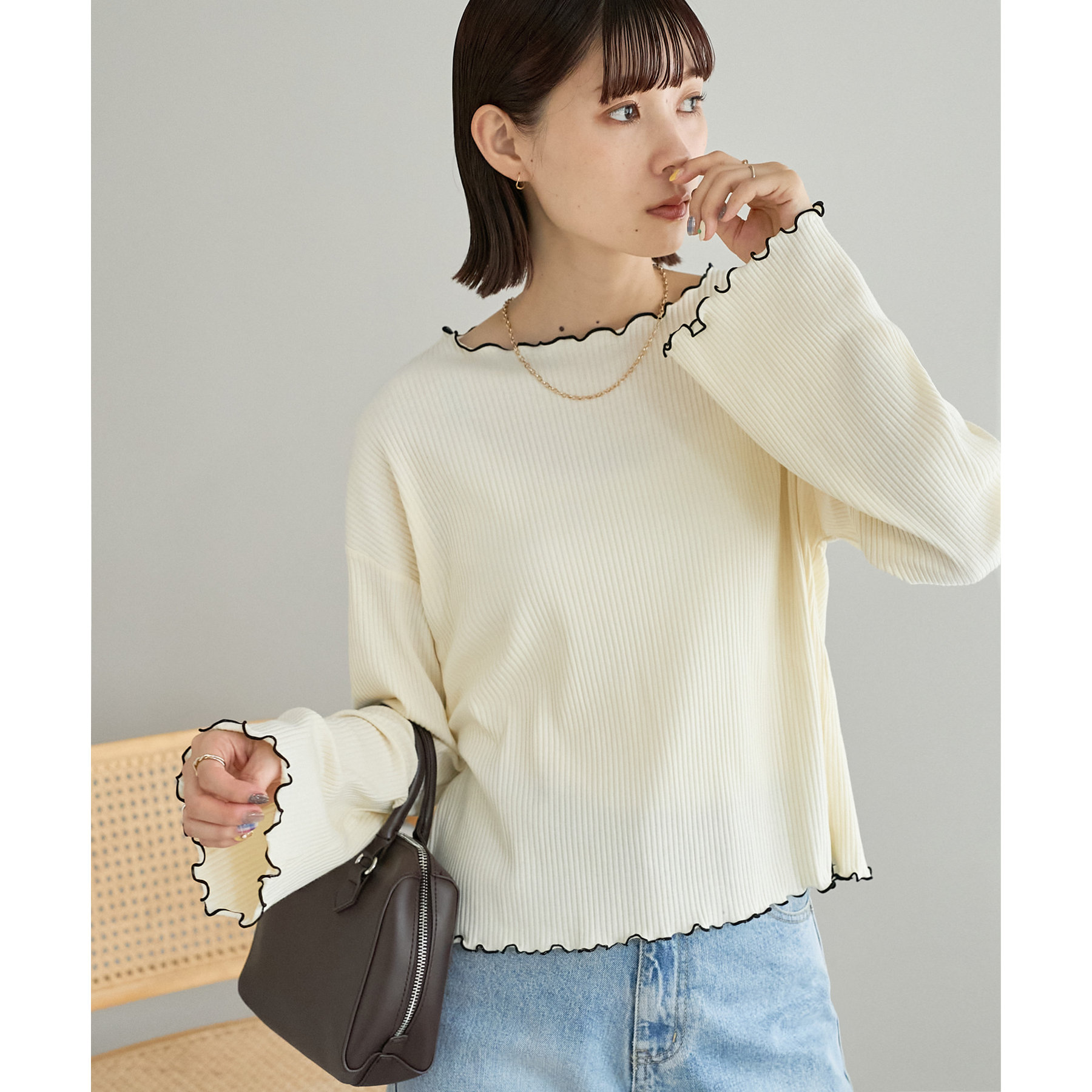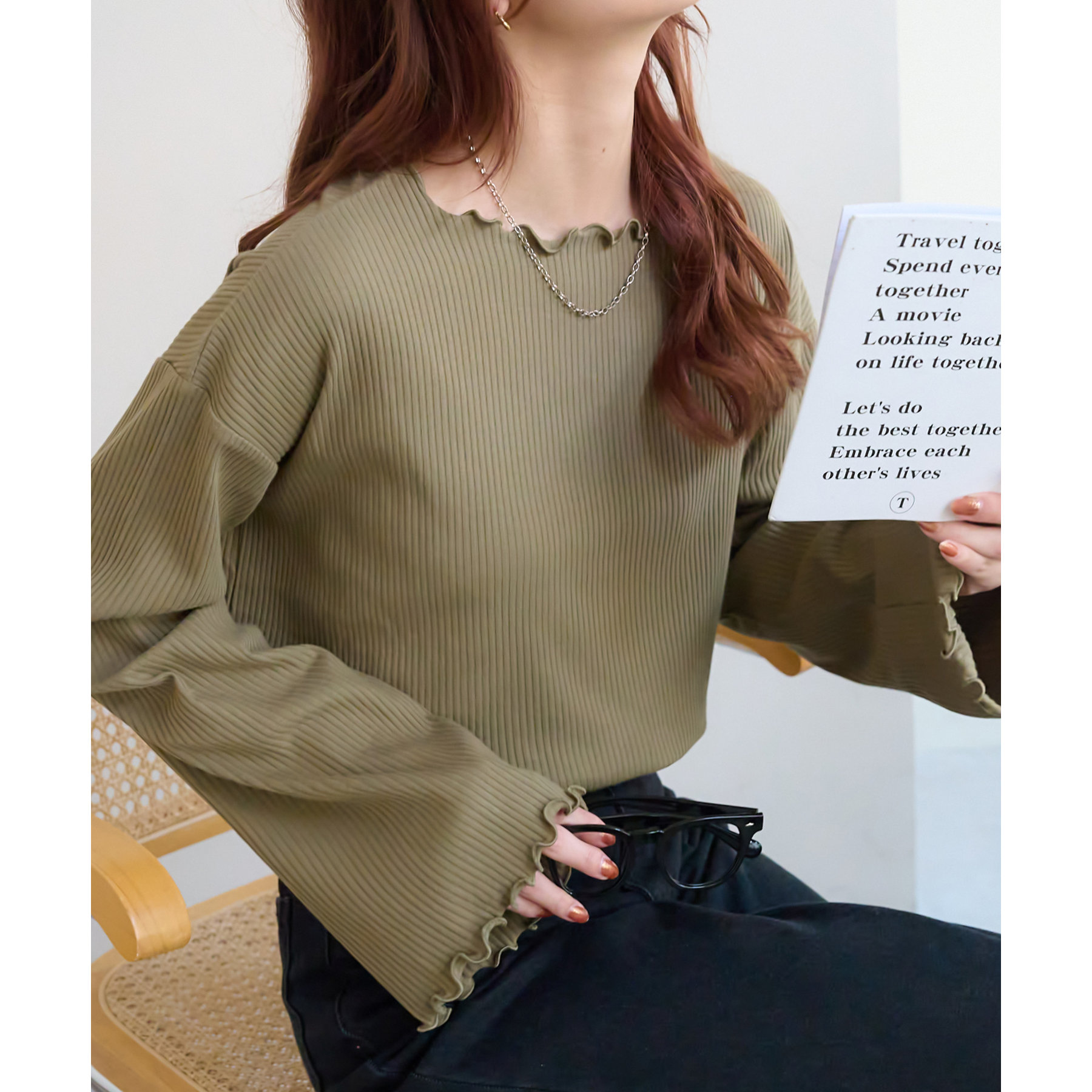 ・袖口・裾口・首元のメローデザインがポイントのリブトップス