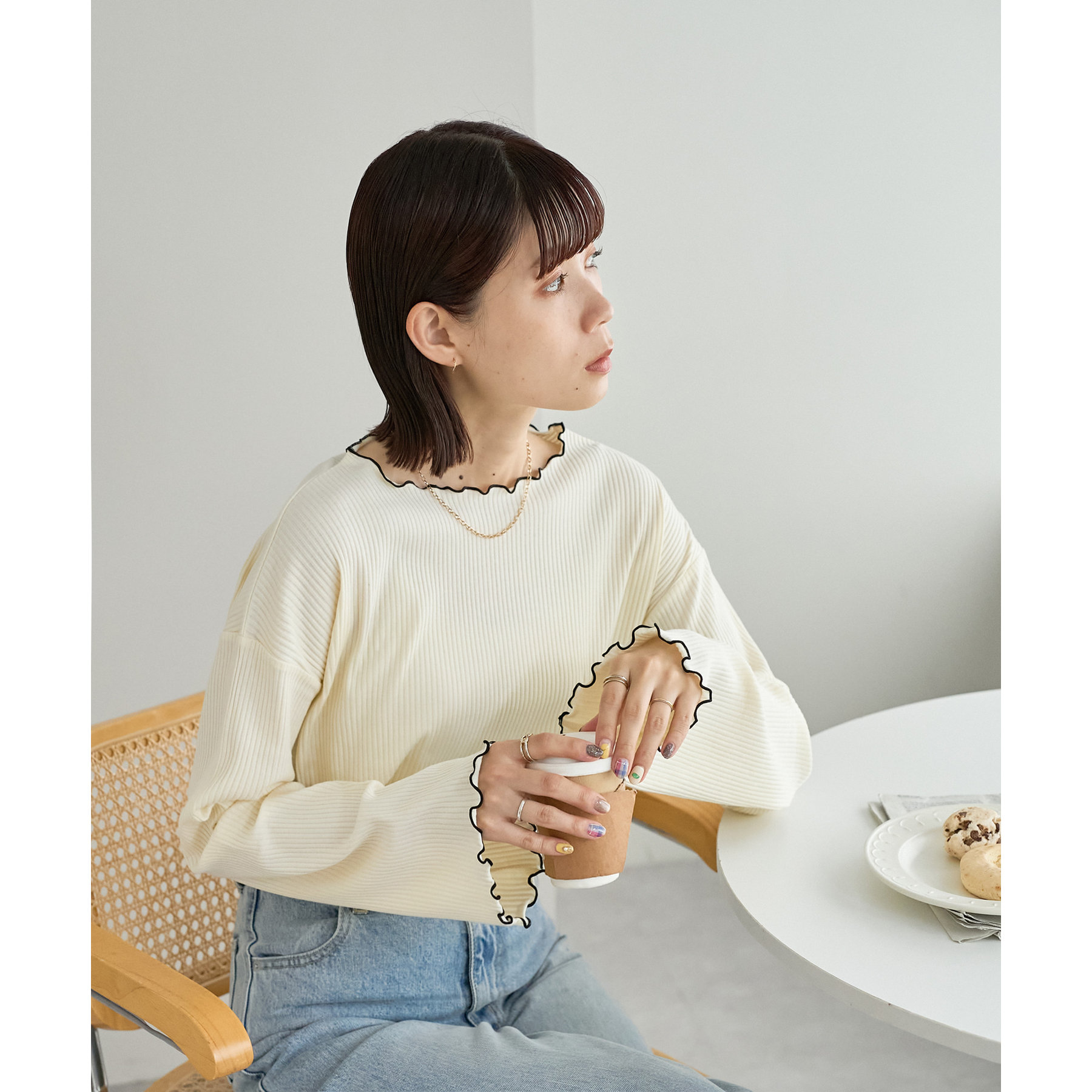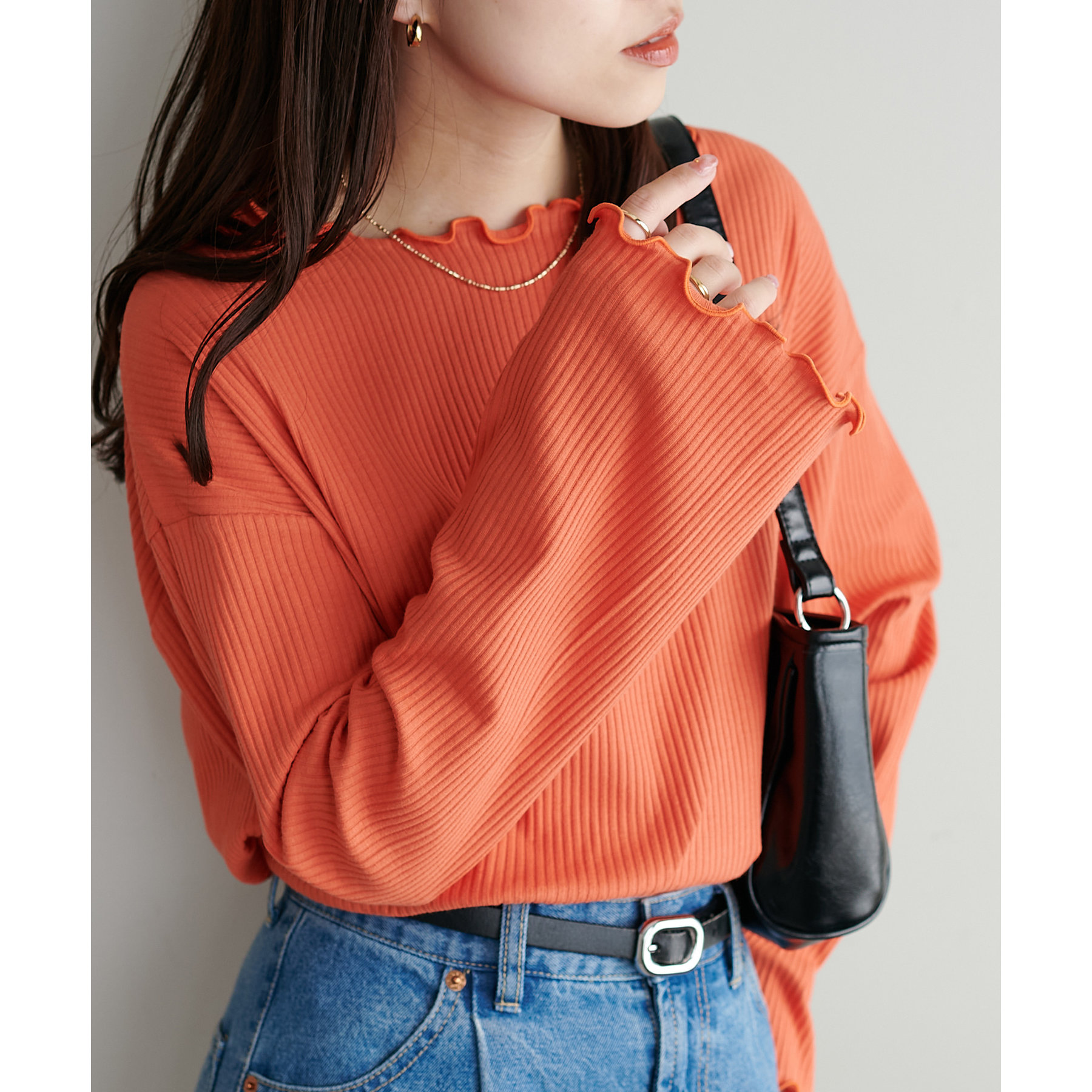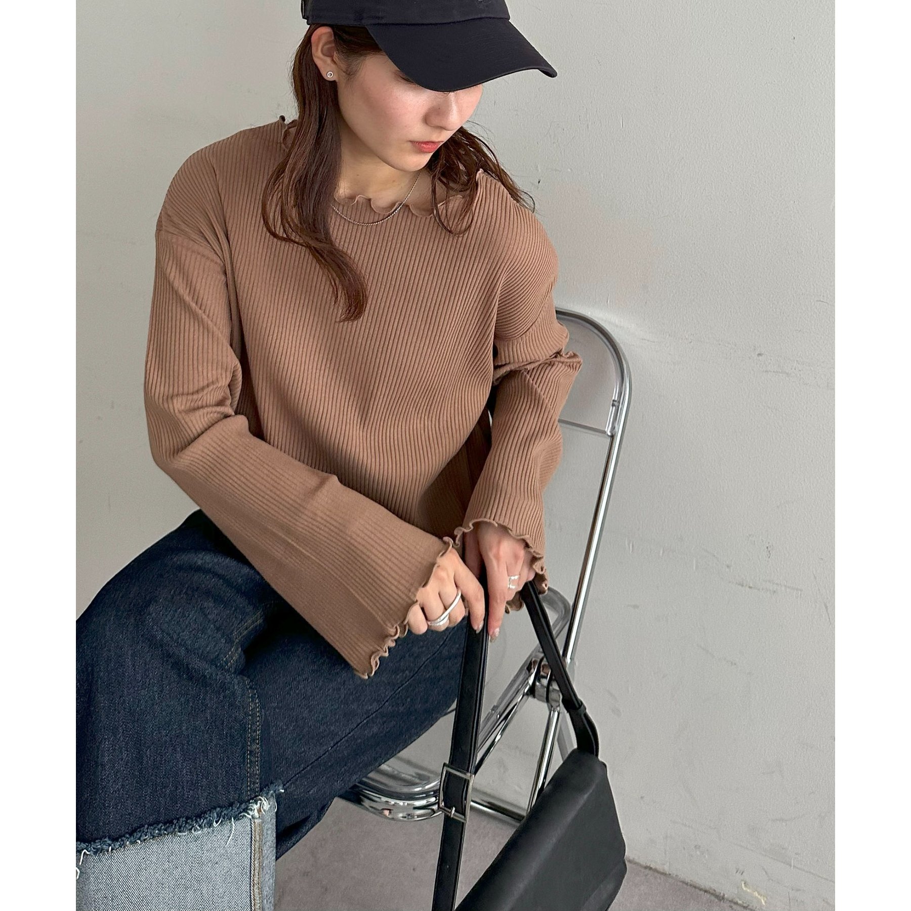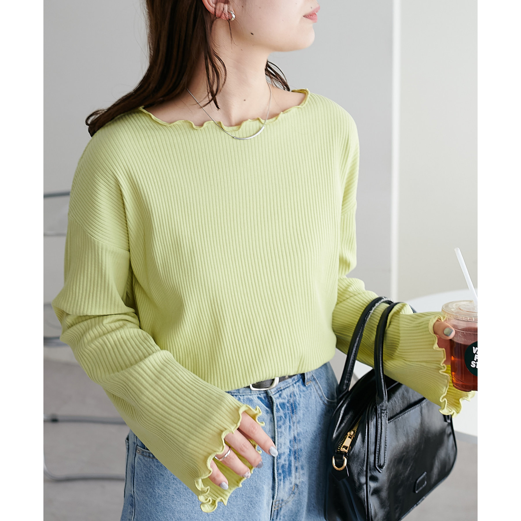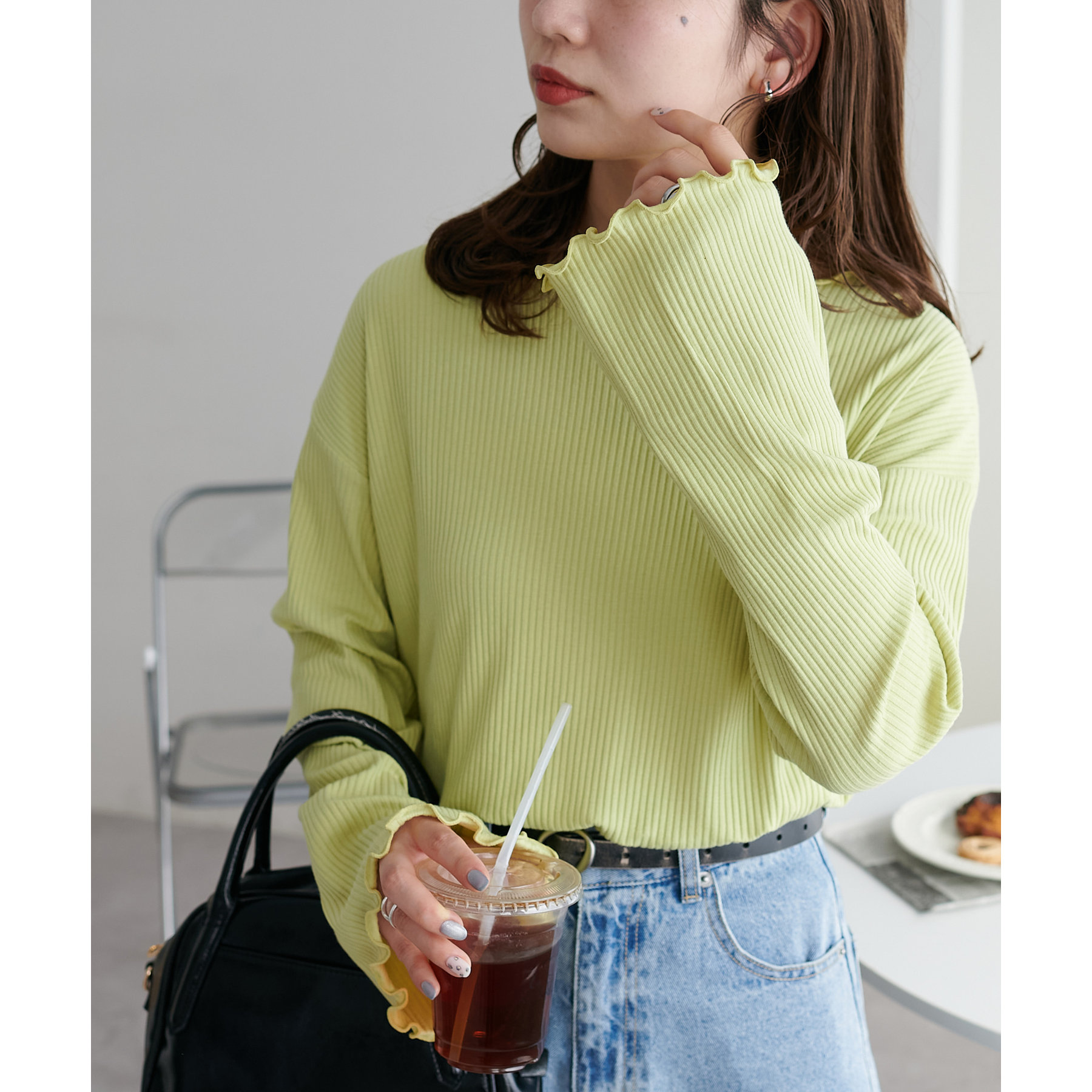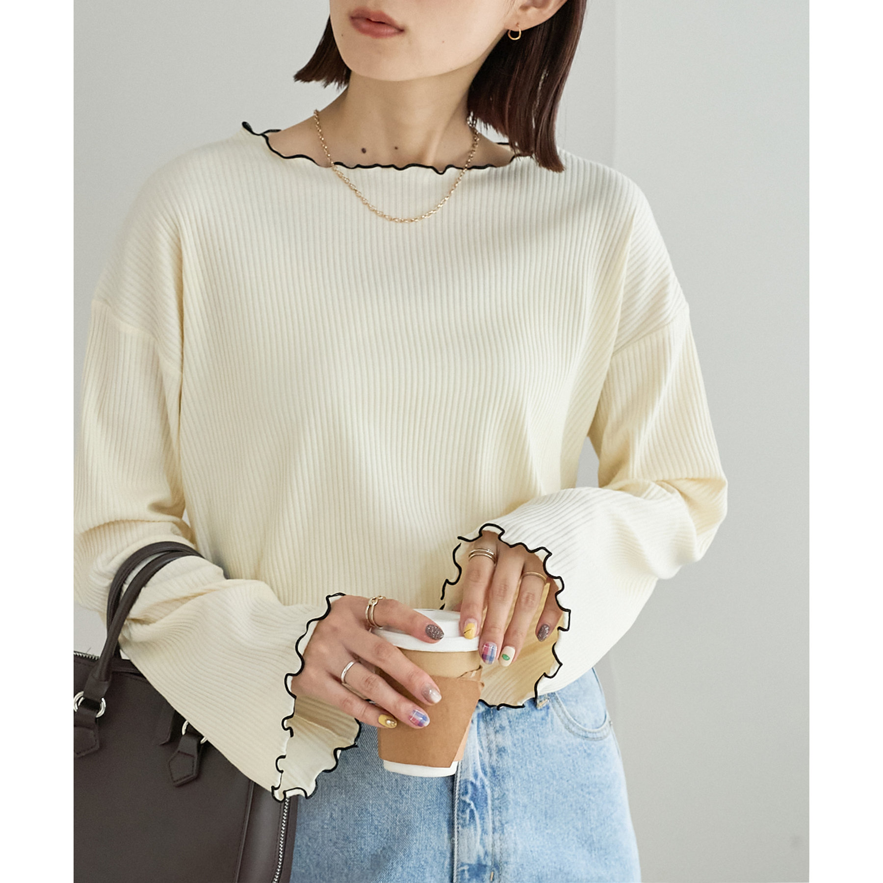 ・袖口・裾口・首元のメローデザインがポイントのリブトップス