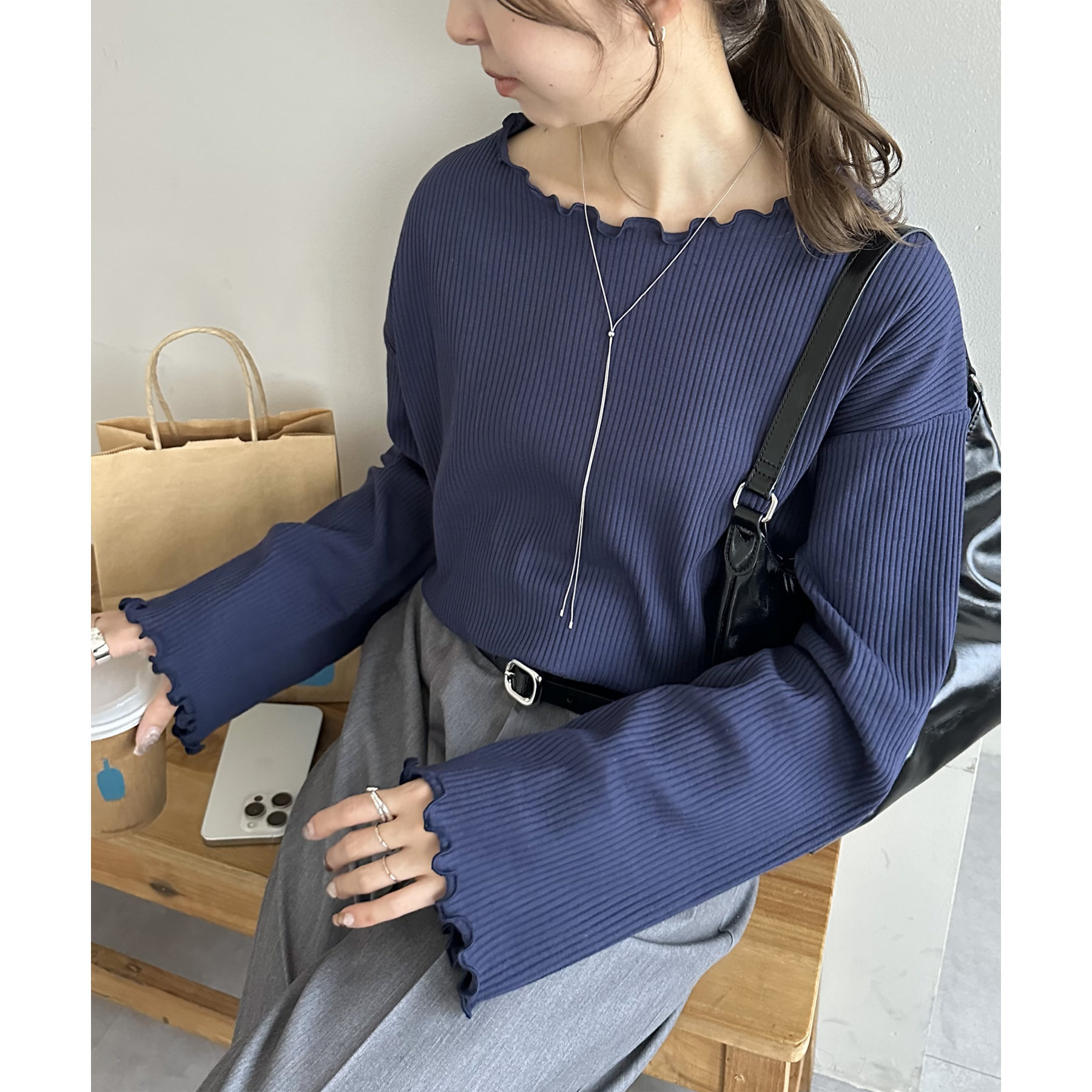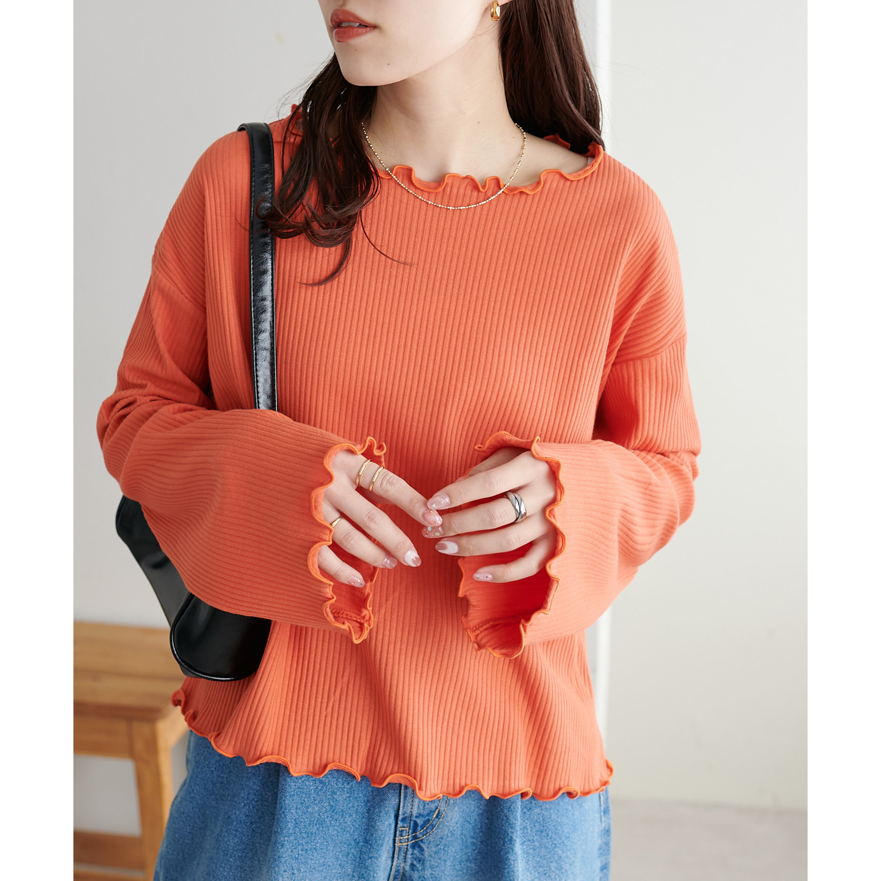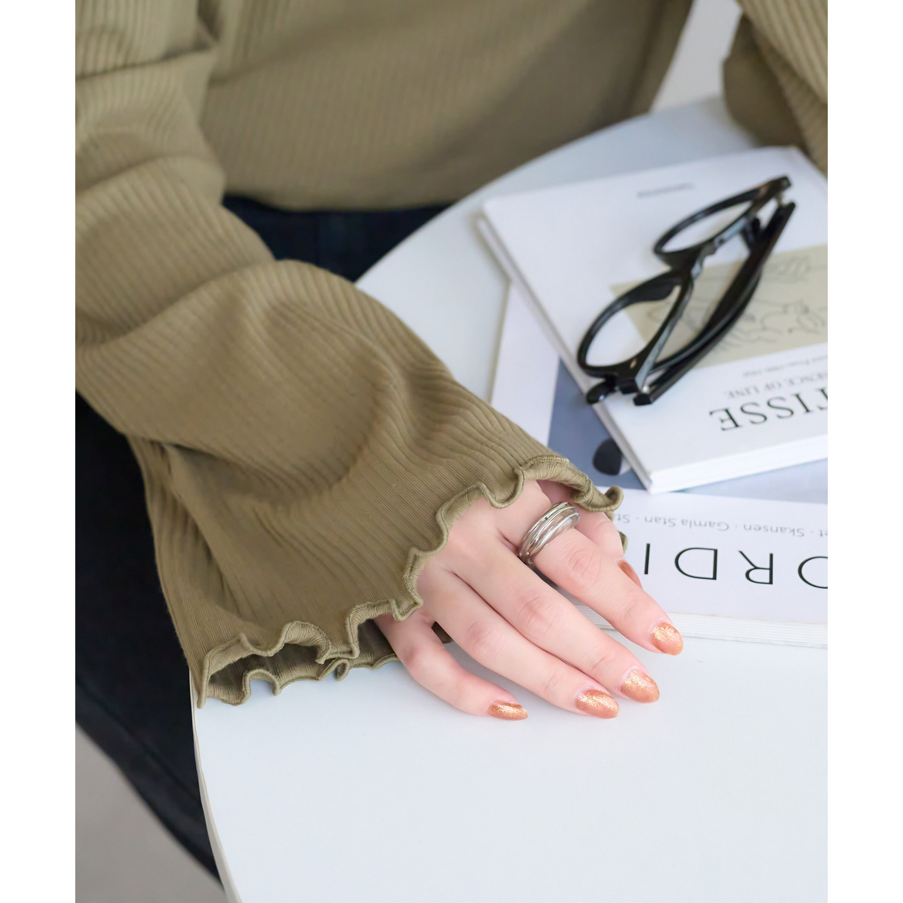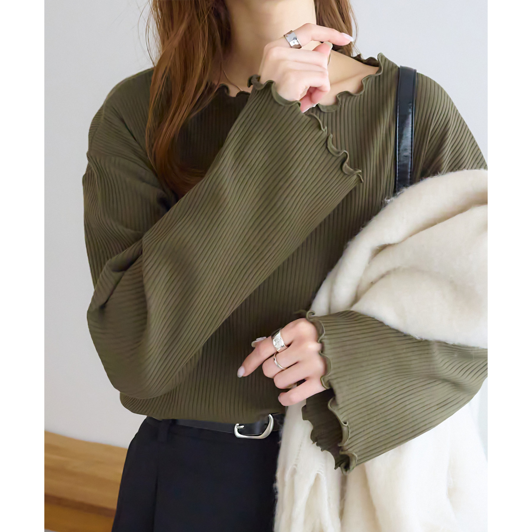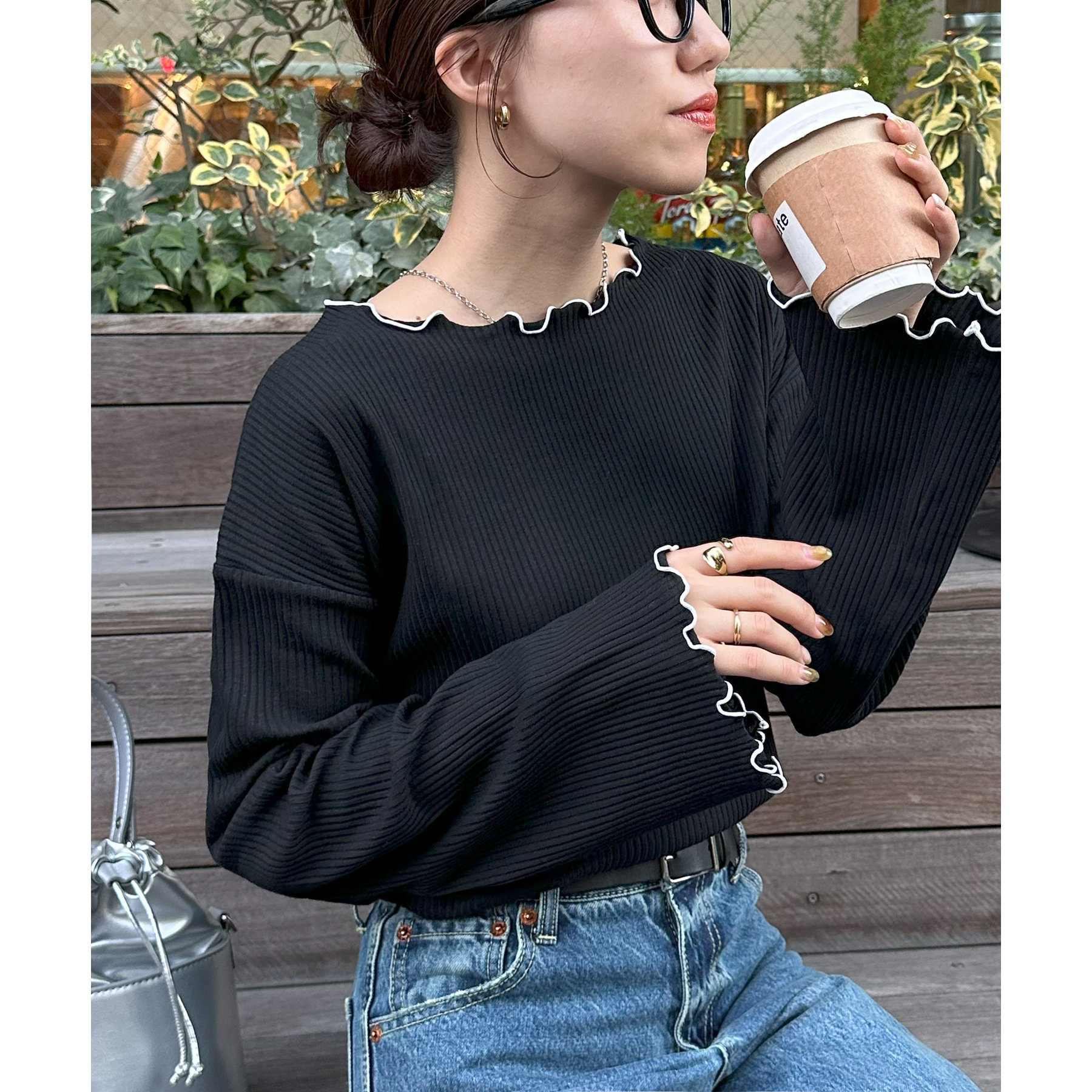 ・袖口・裾口・首元のメローデザインがポイントのリブトップス