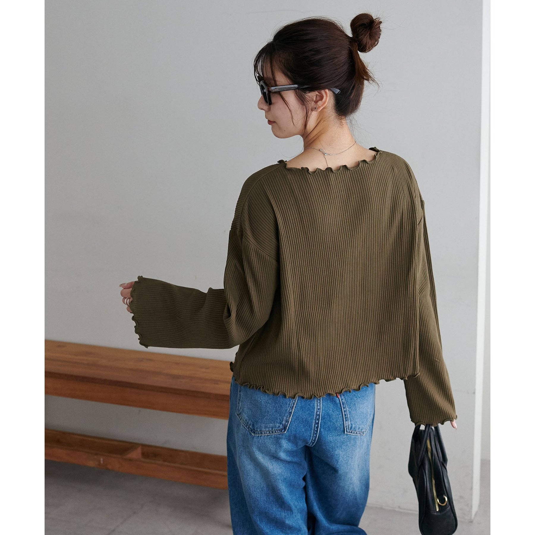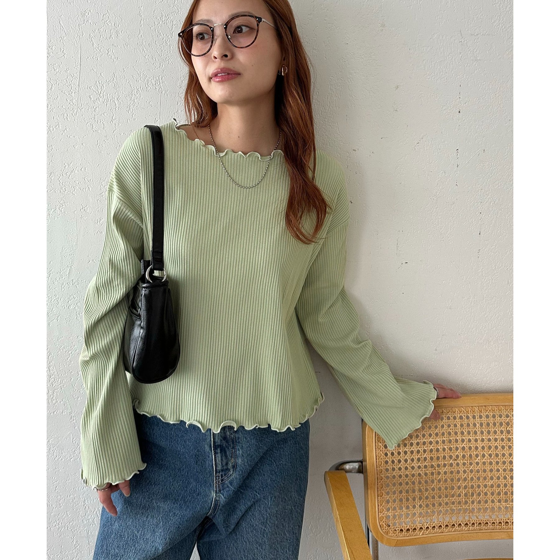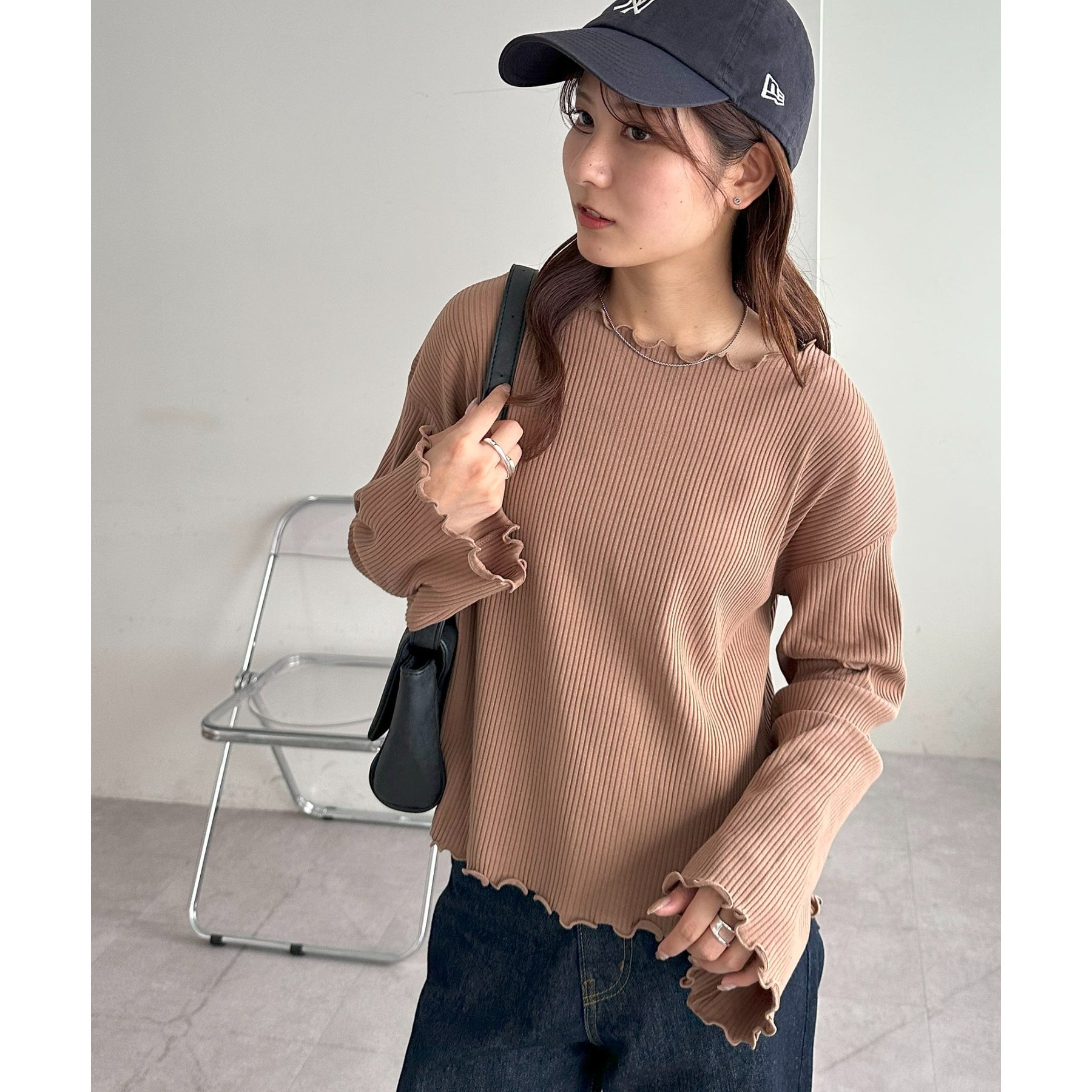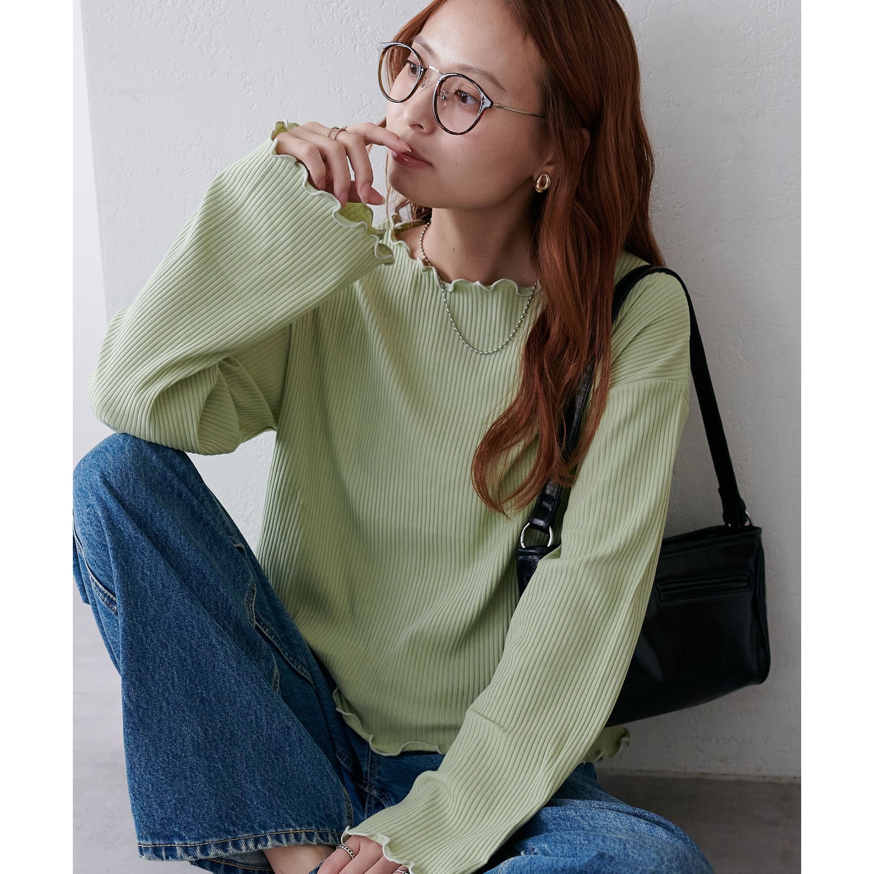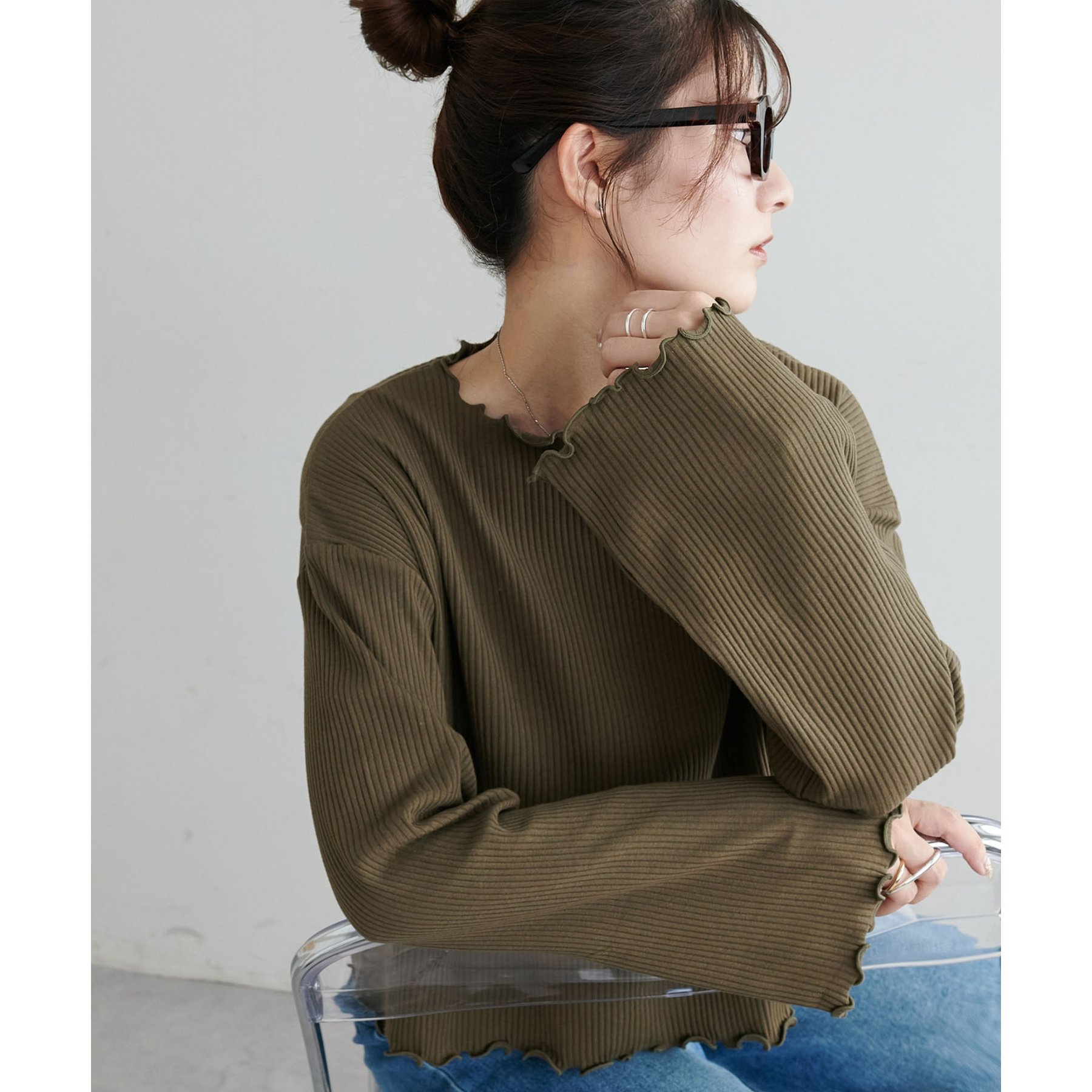 ・袖口・裾口・首元のメローデザインがポイントのリブトップス