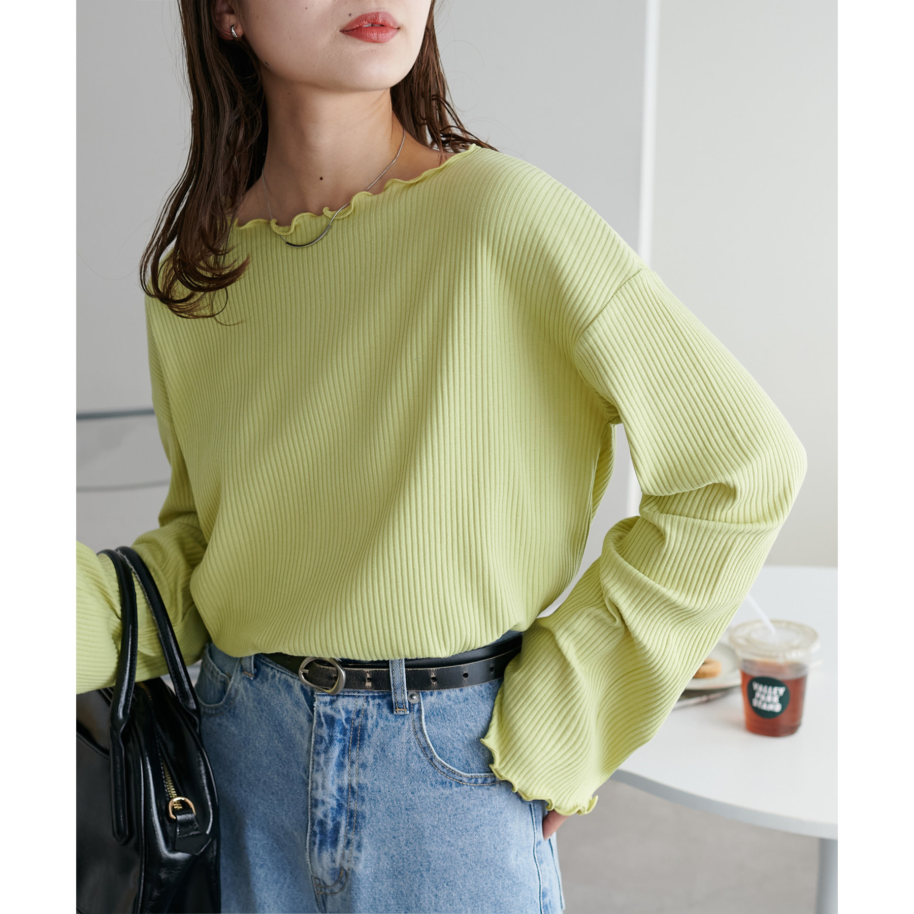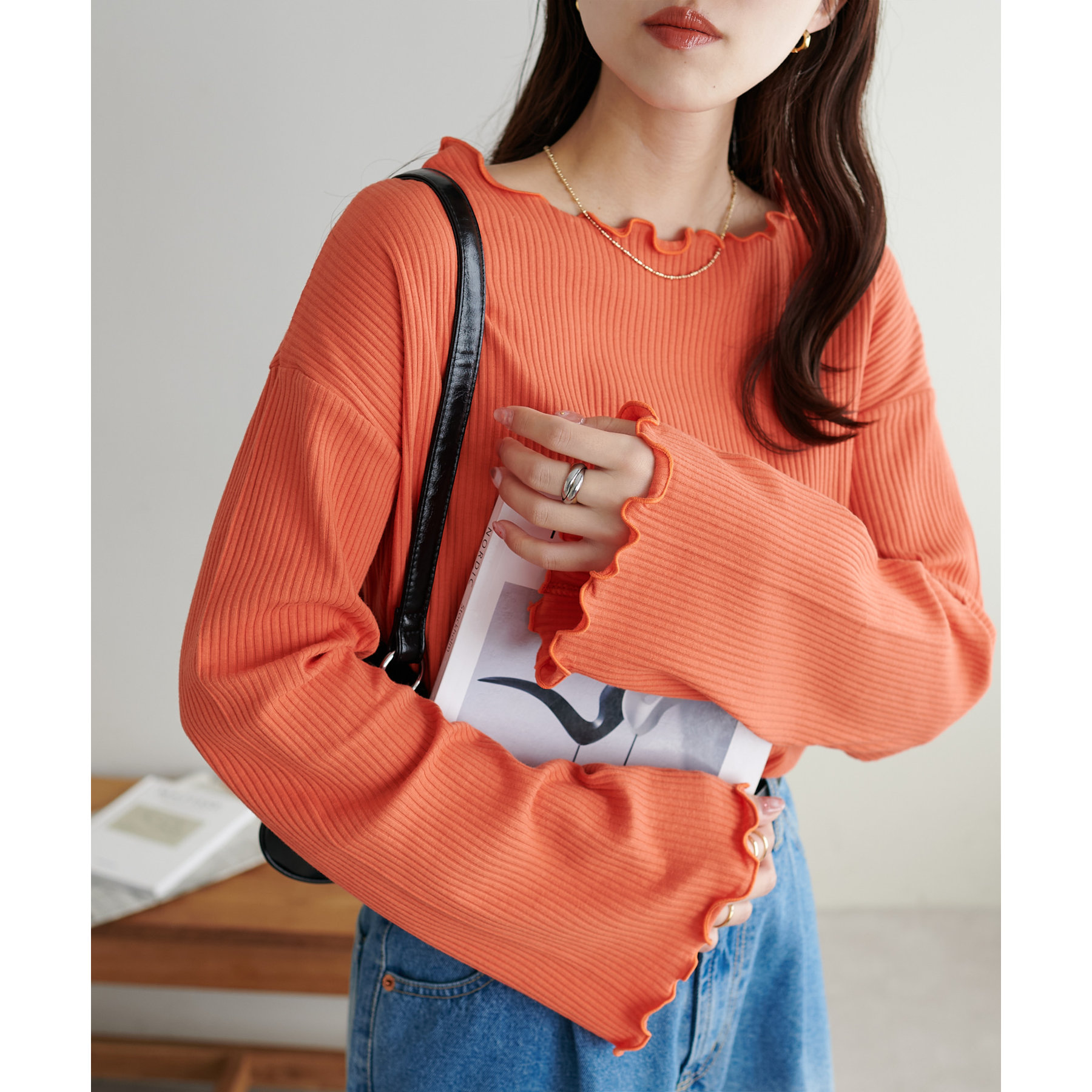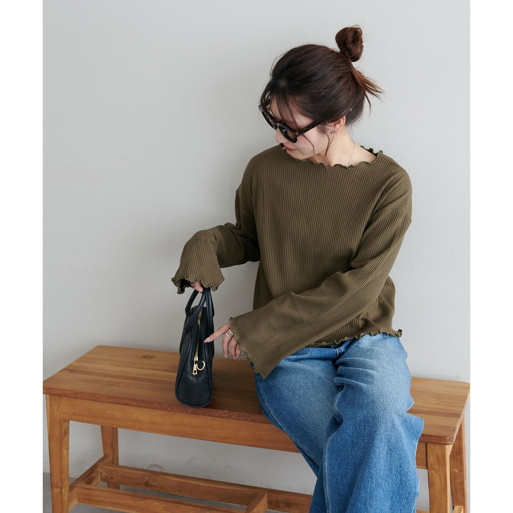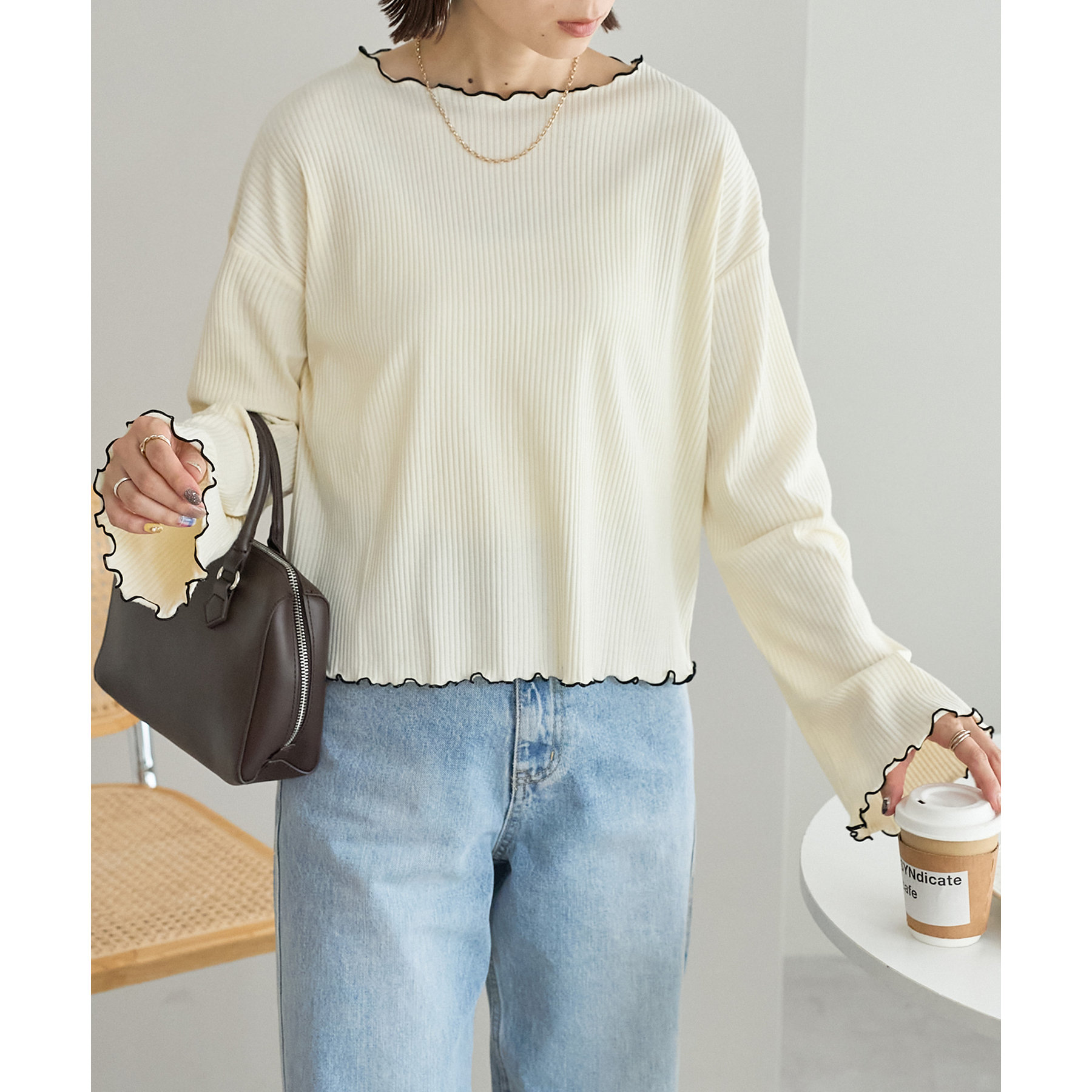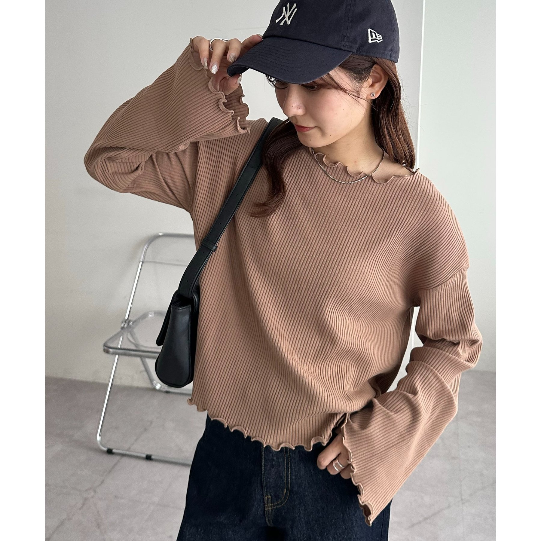 ・袖口・裾口・首元のメローデザインがポイントのリブトップス