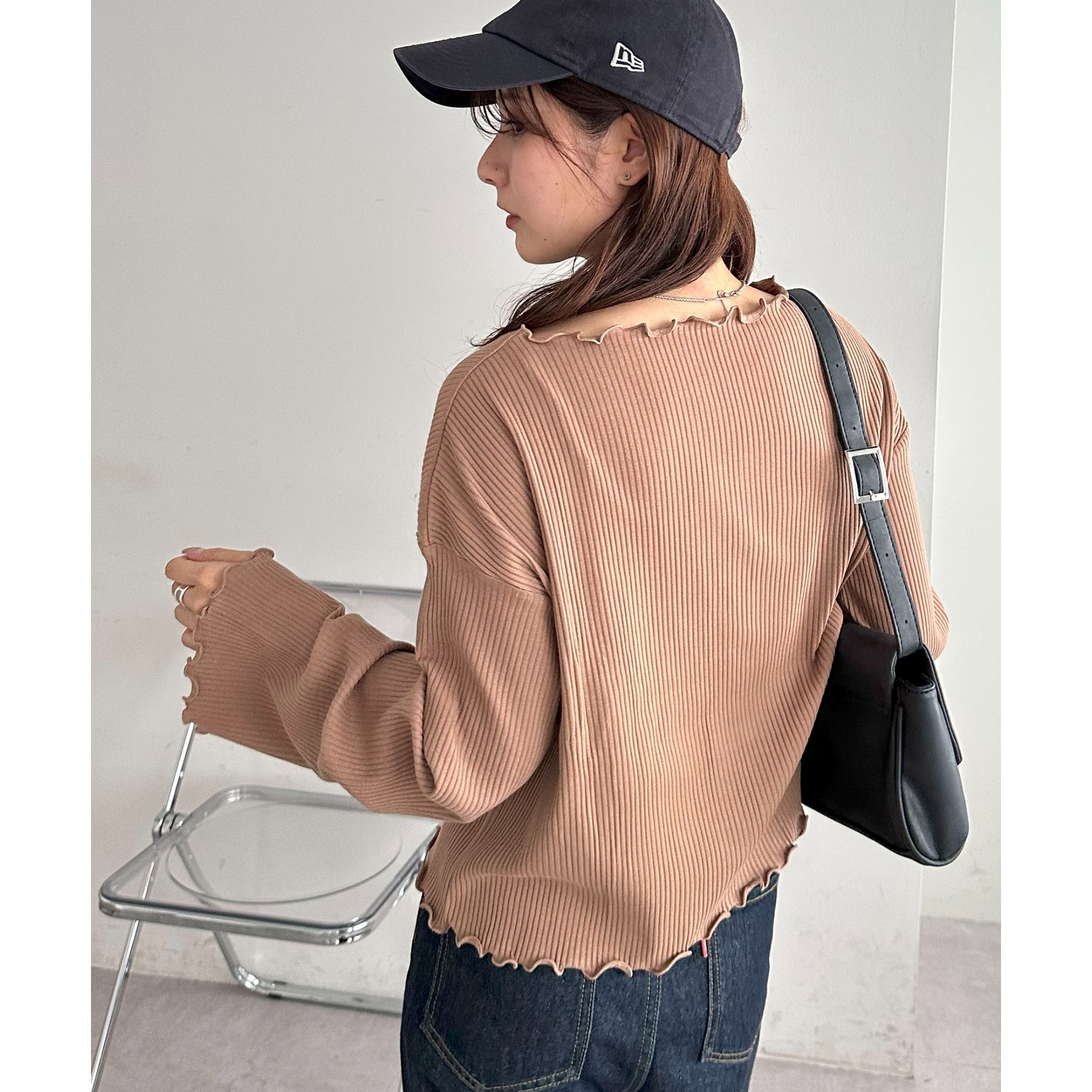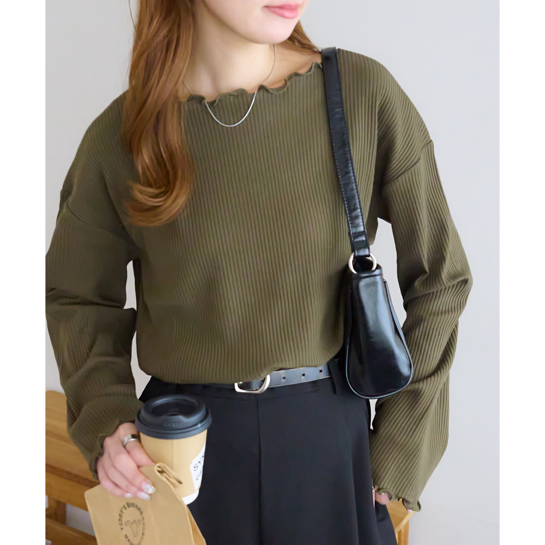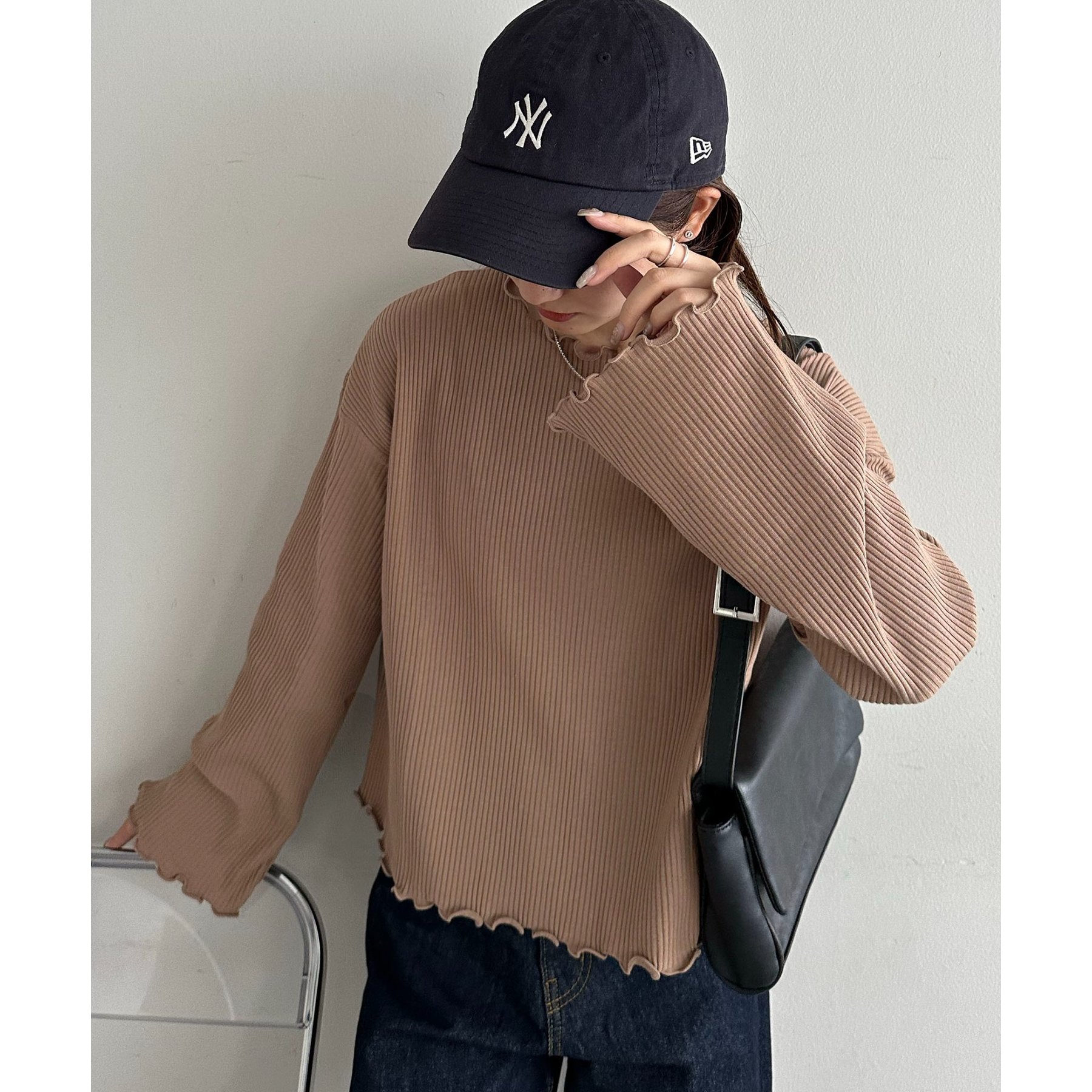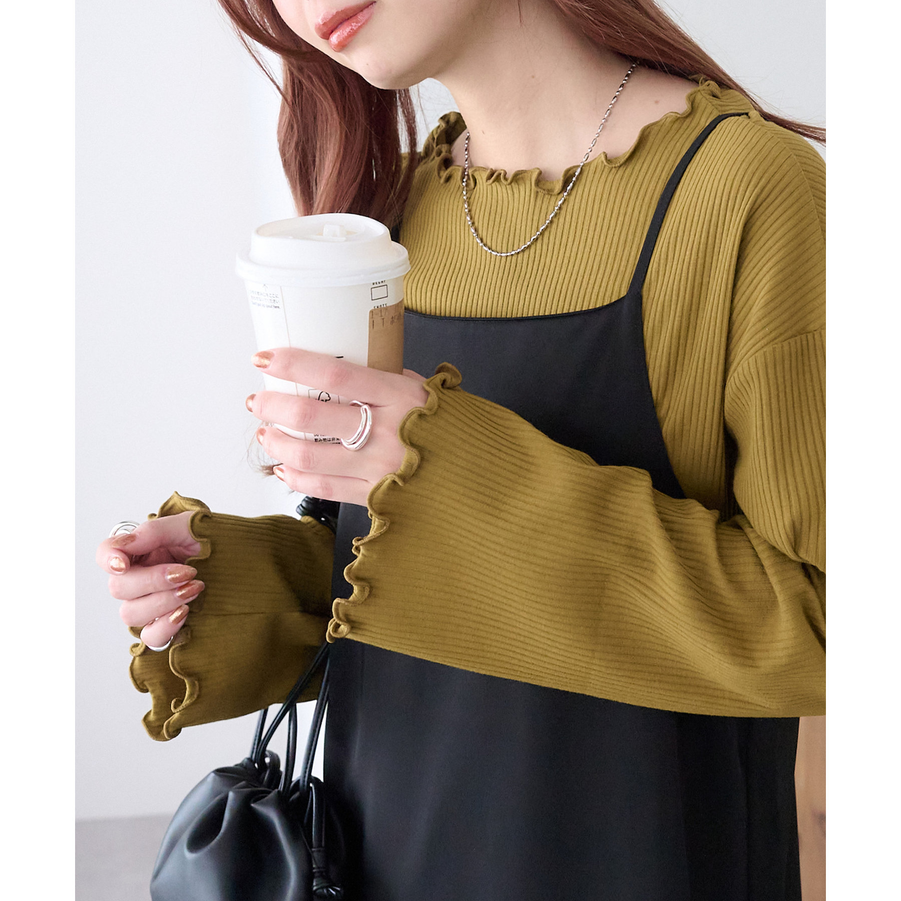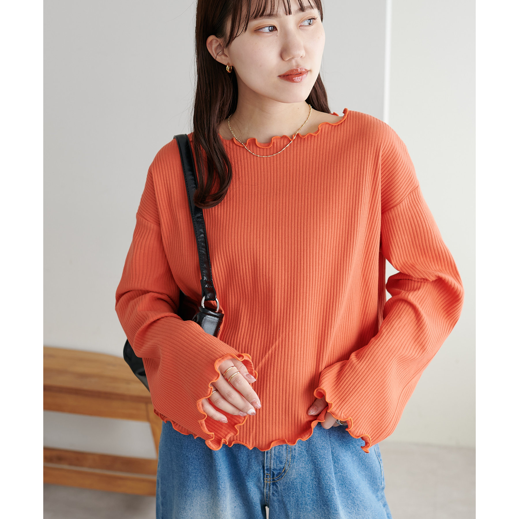 ・袖口・裾口・首元のメローデザインがポイントのリブトップス