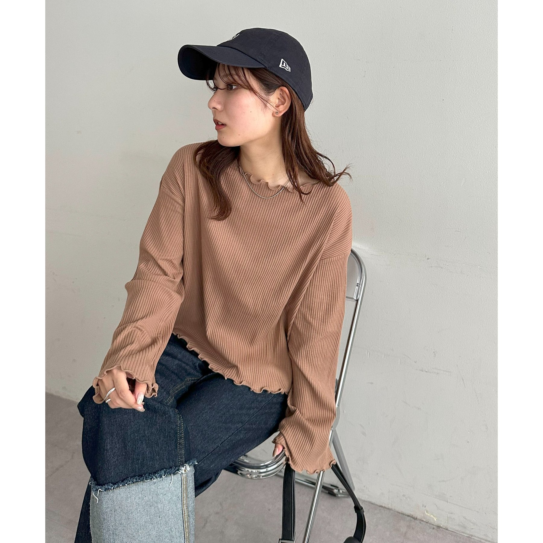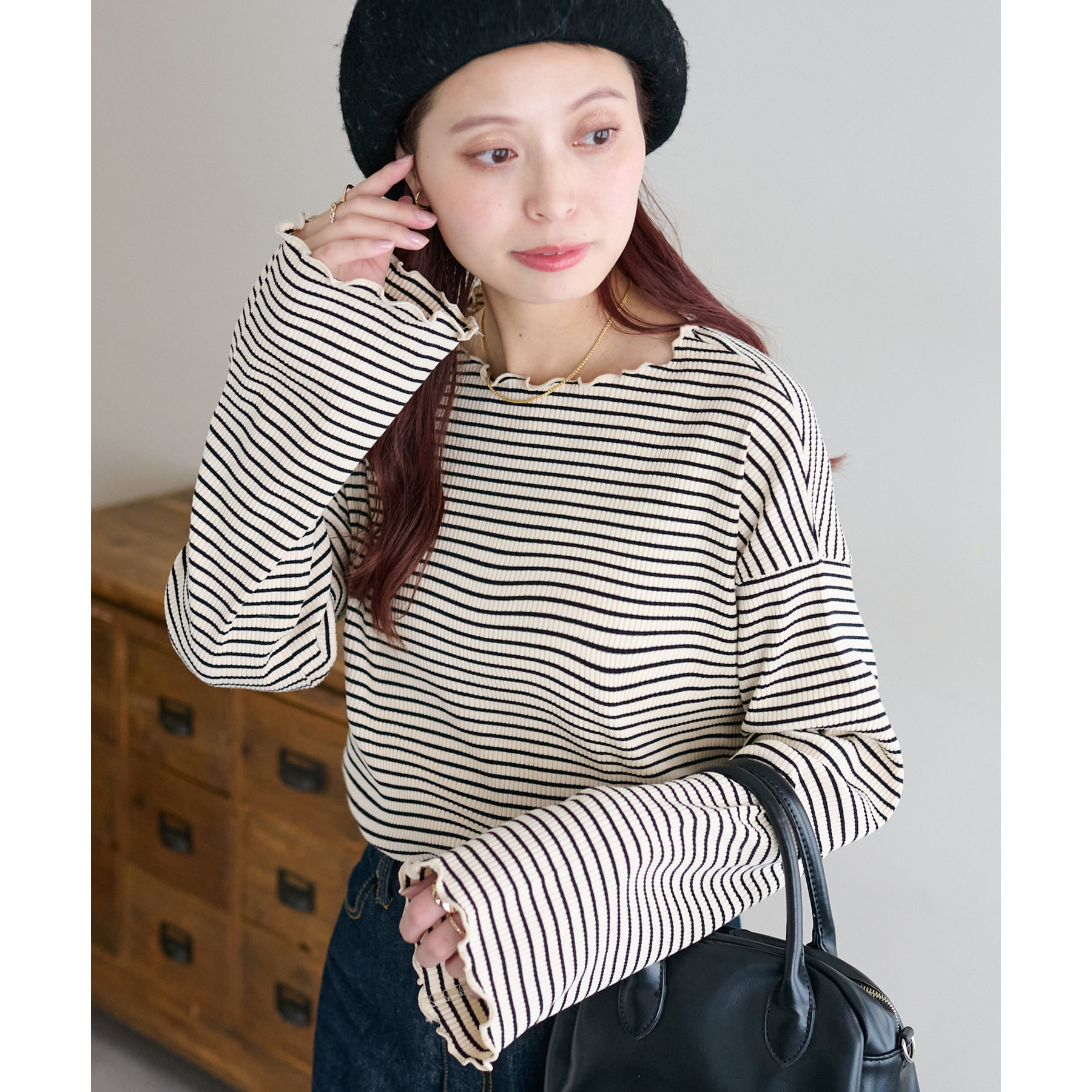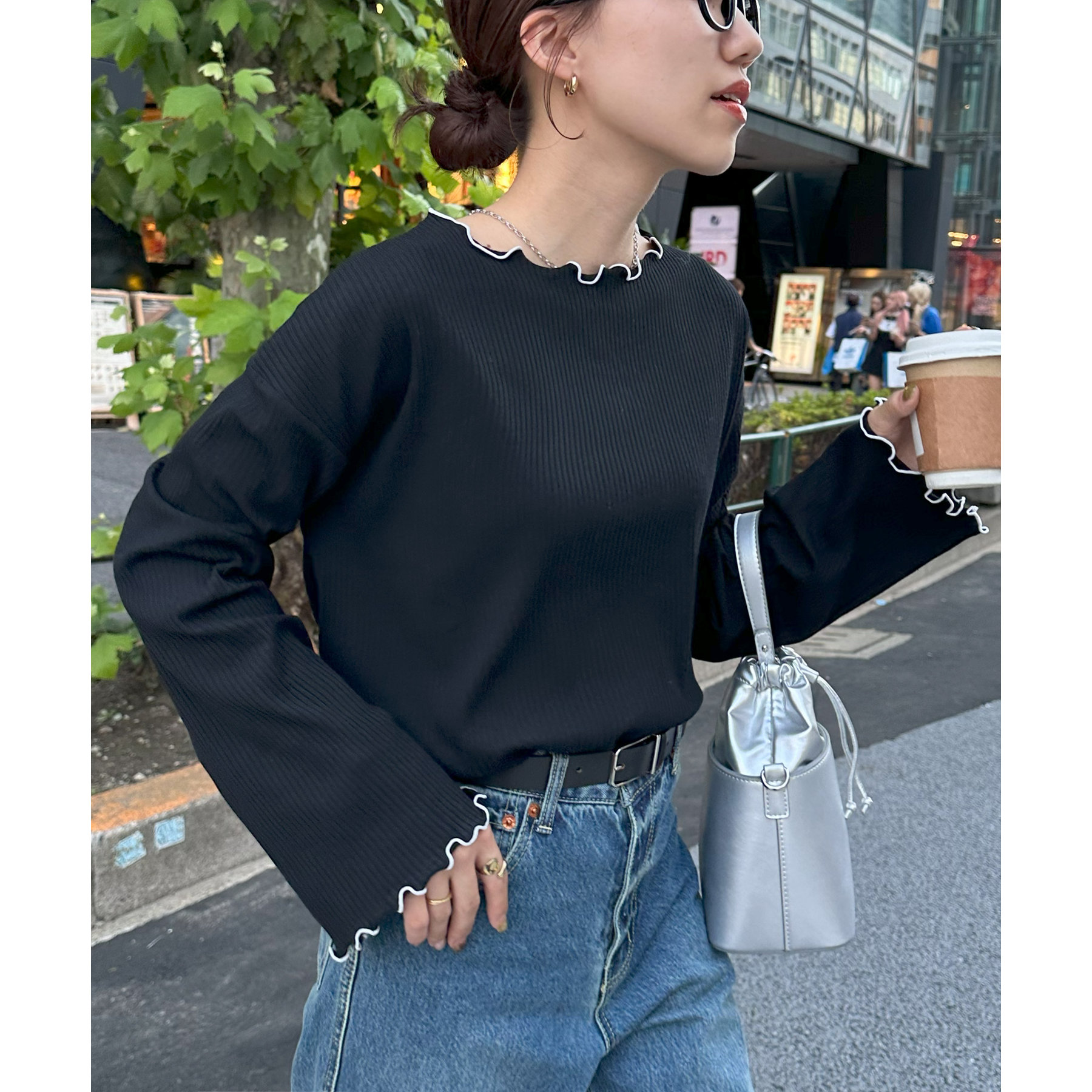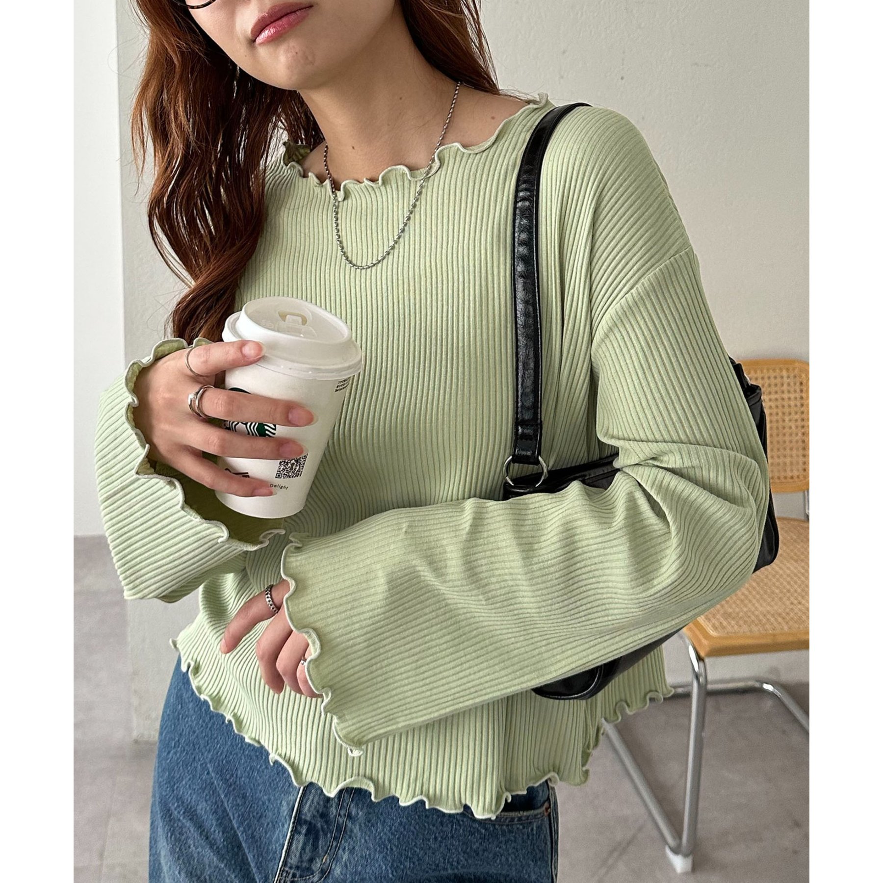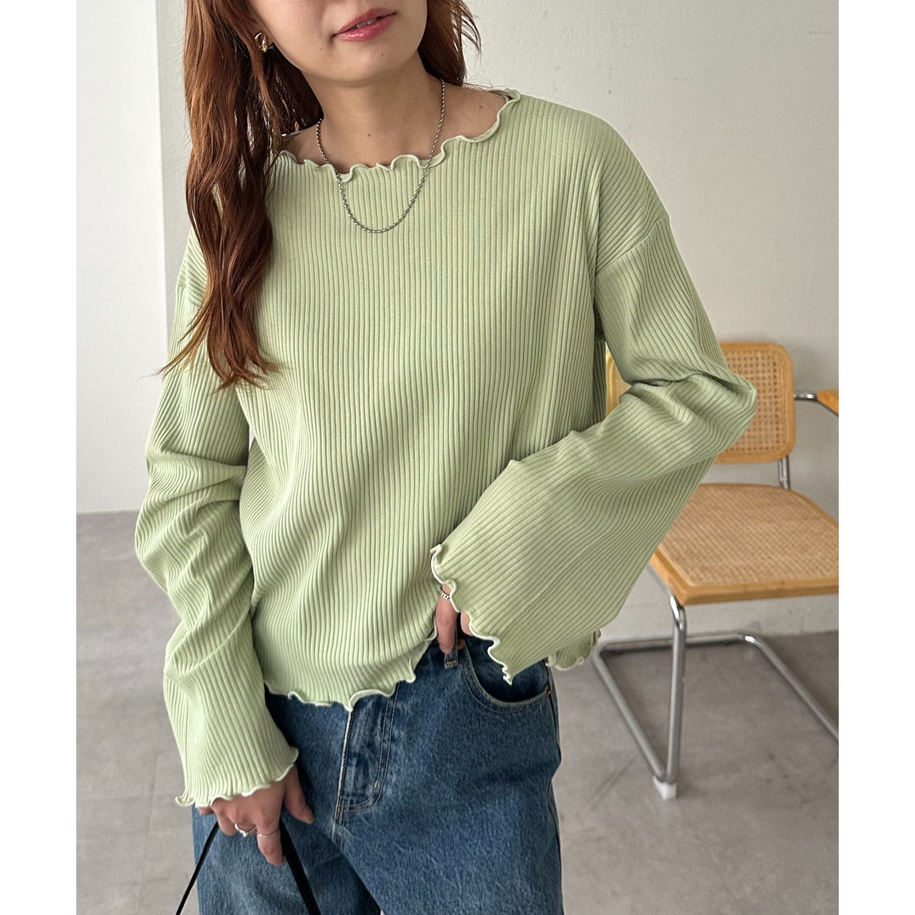 ・袖口・裾口・首元のメローデザインがポイントのリブトップス