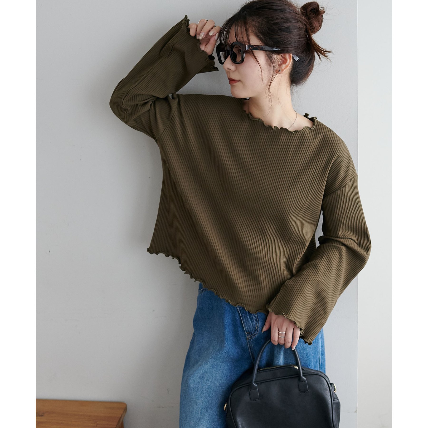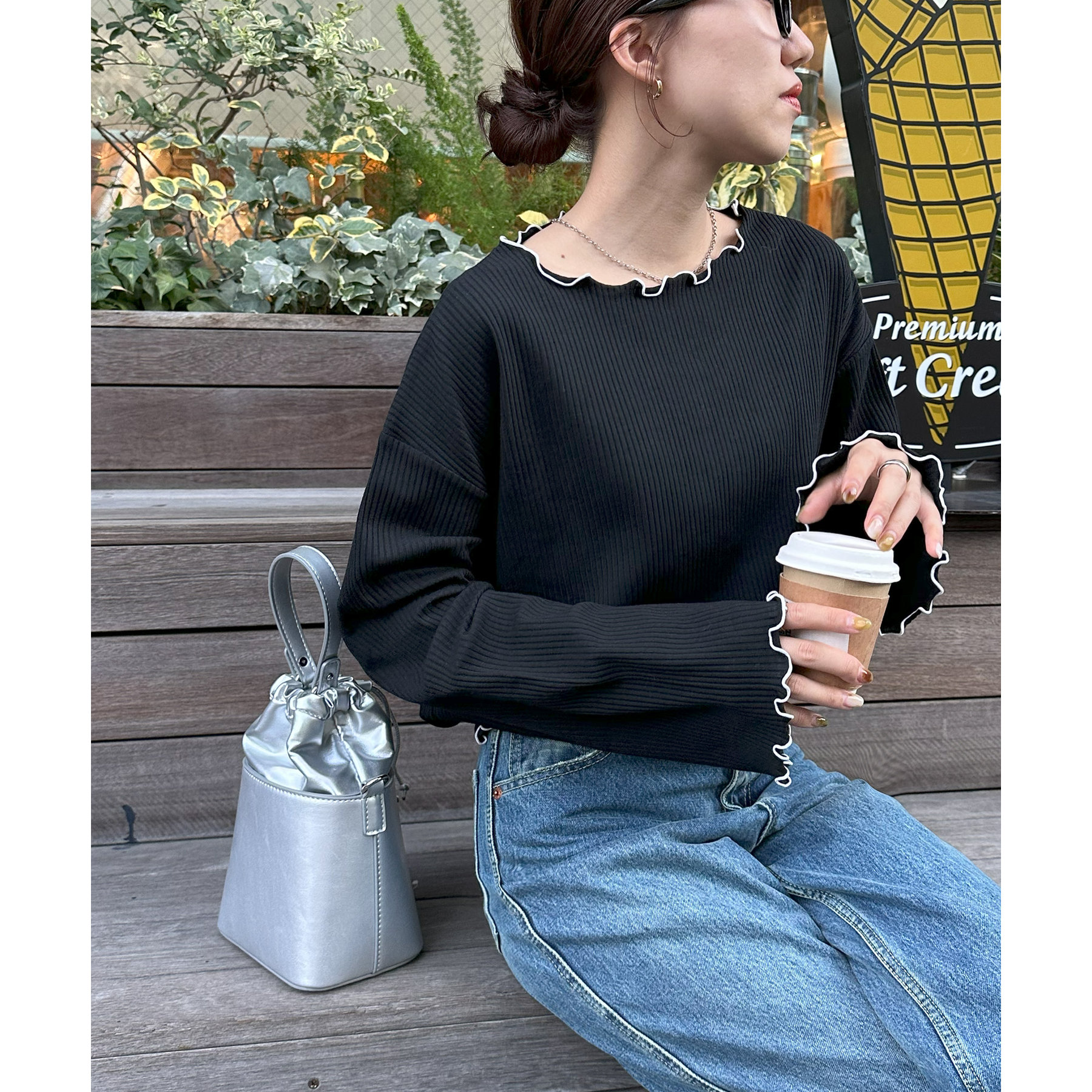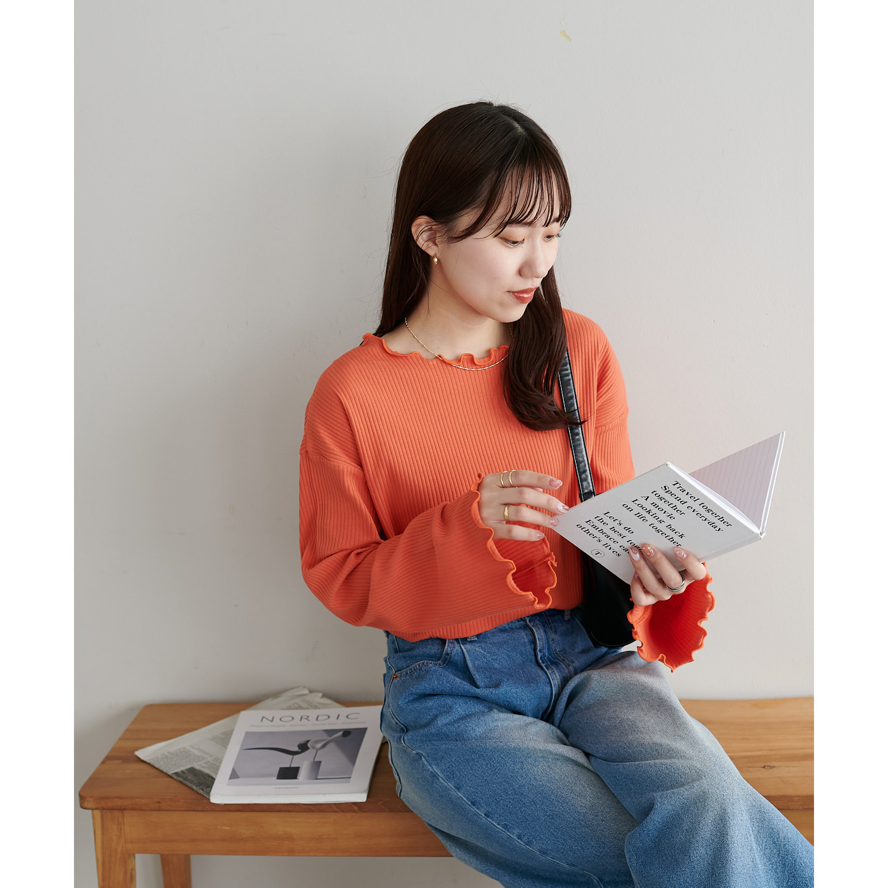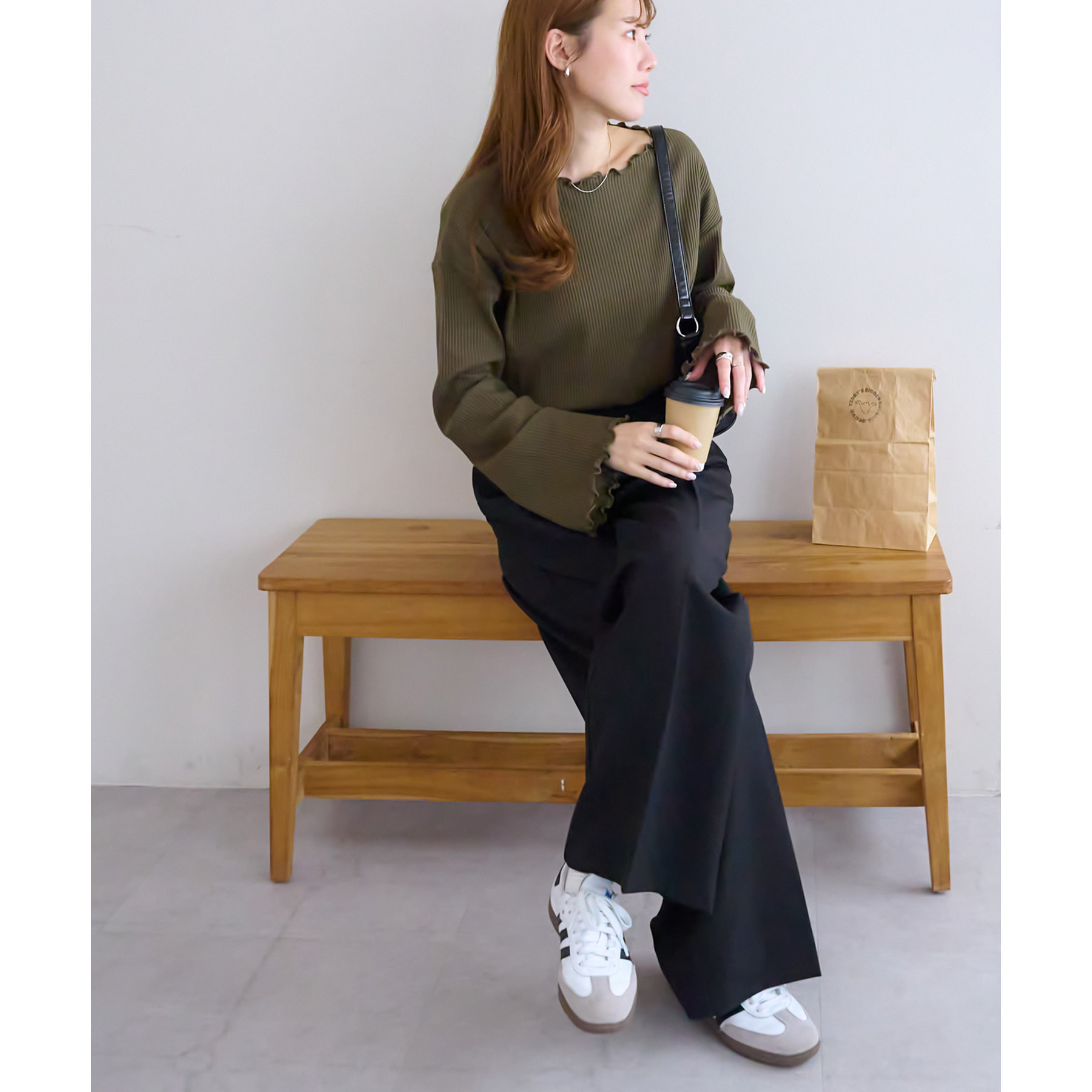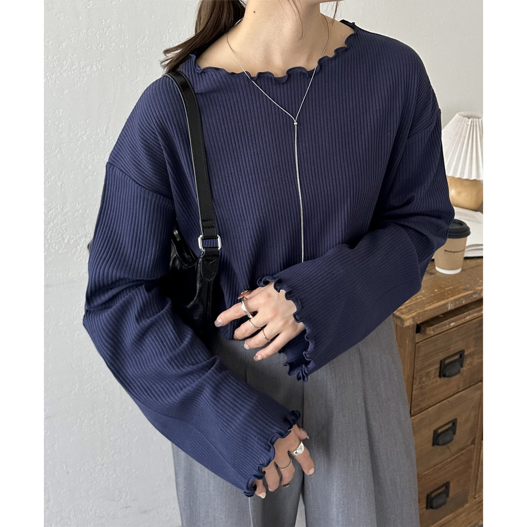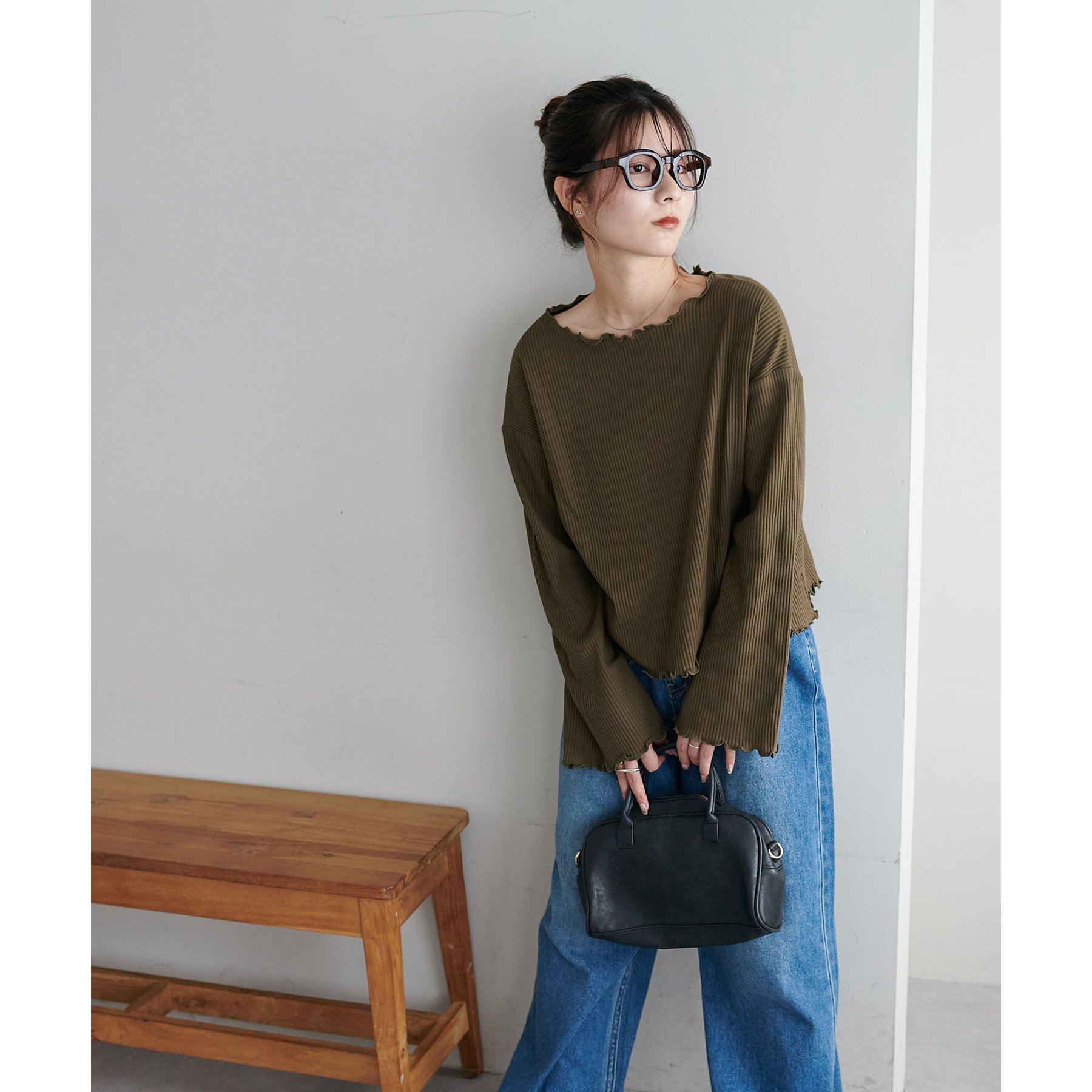 ・袖口・裾口・首元のメローデザインがポイントのリブトップス