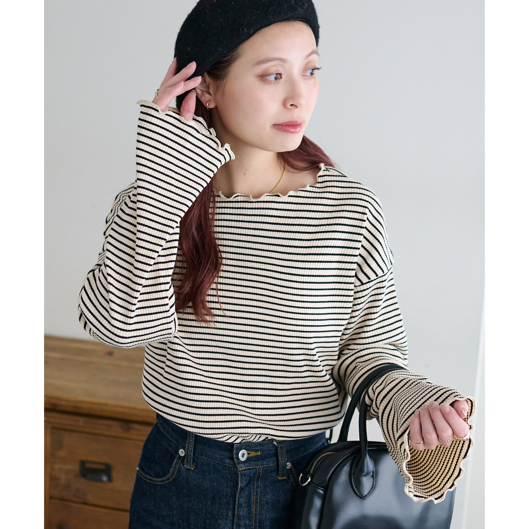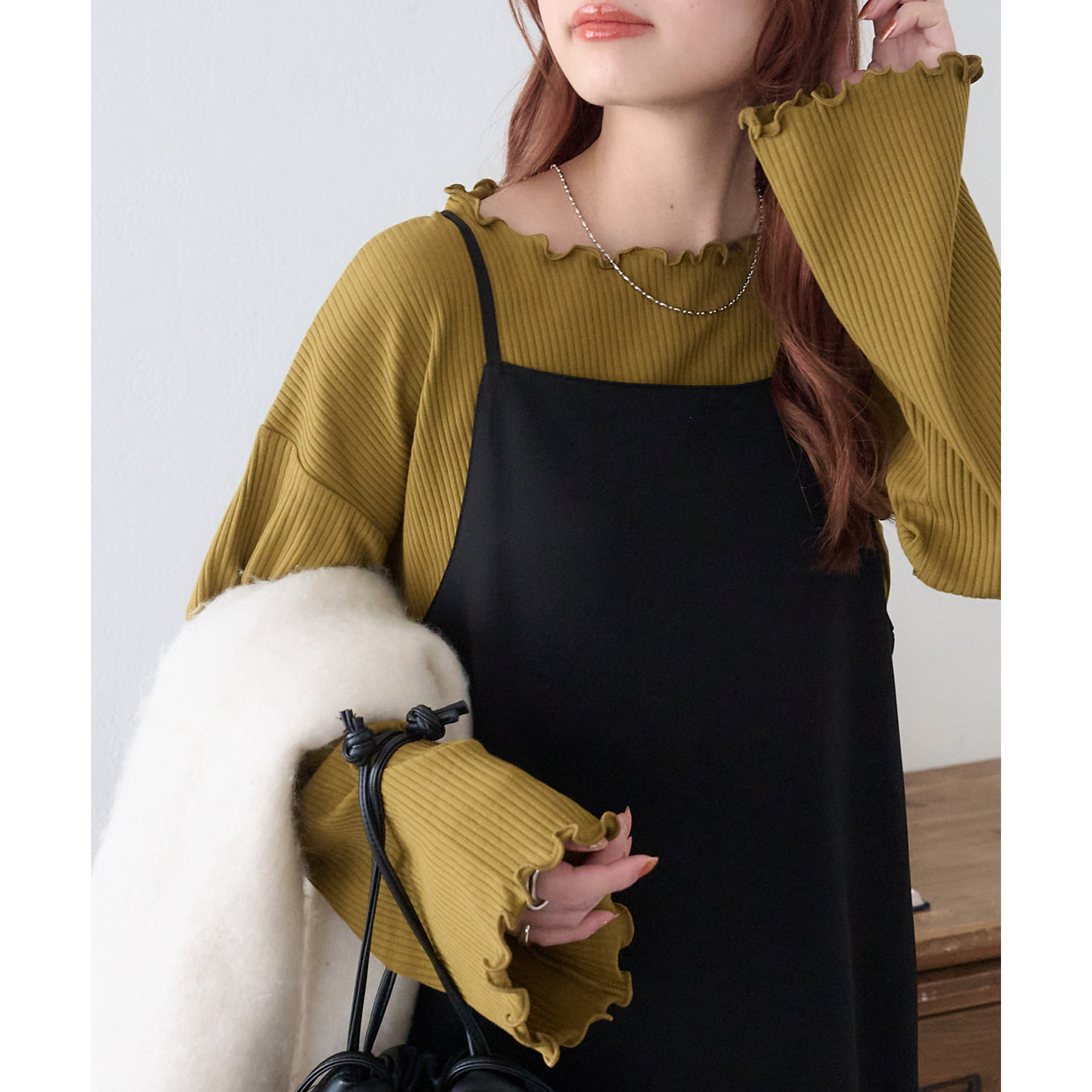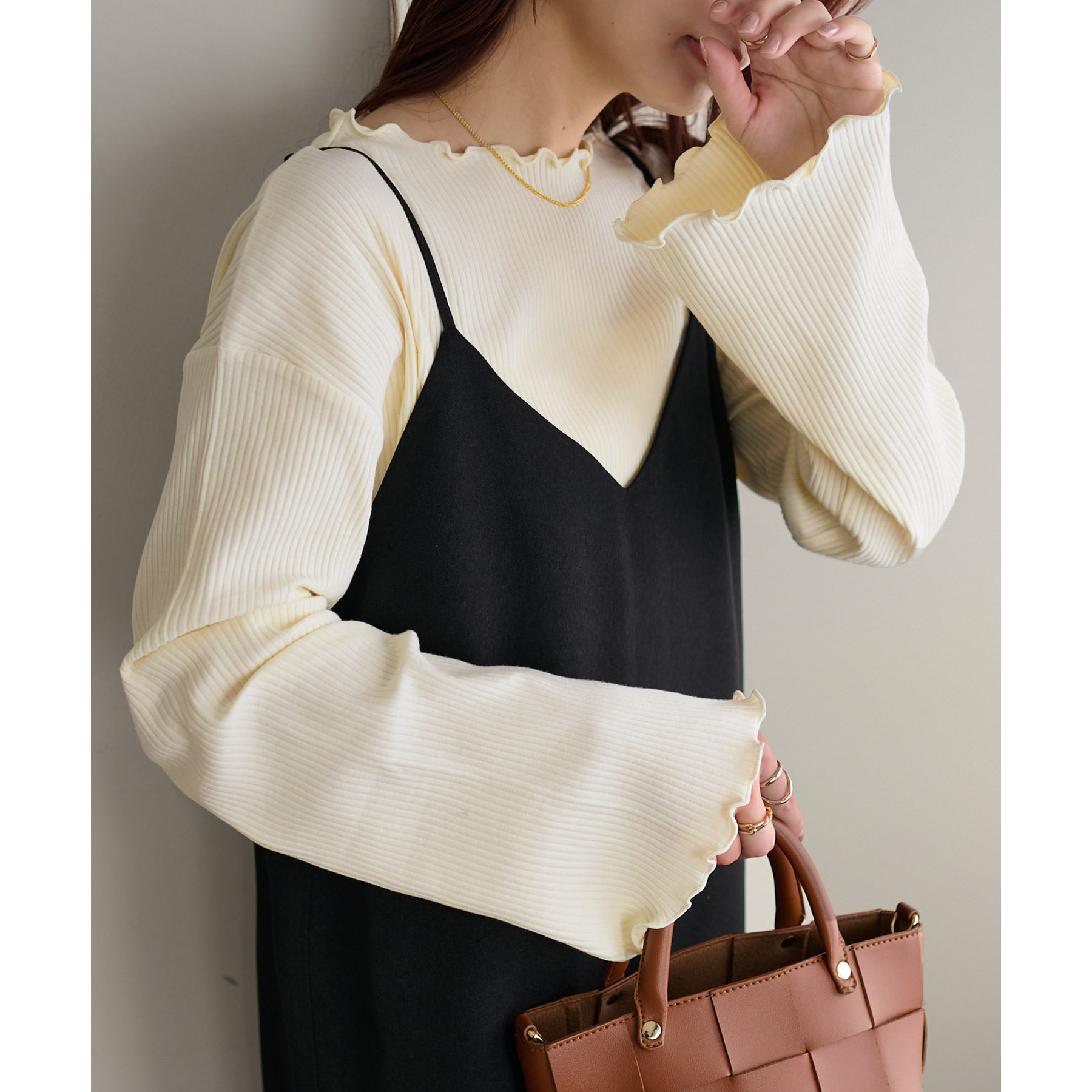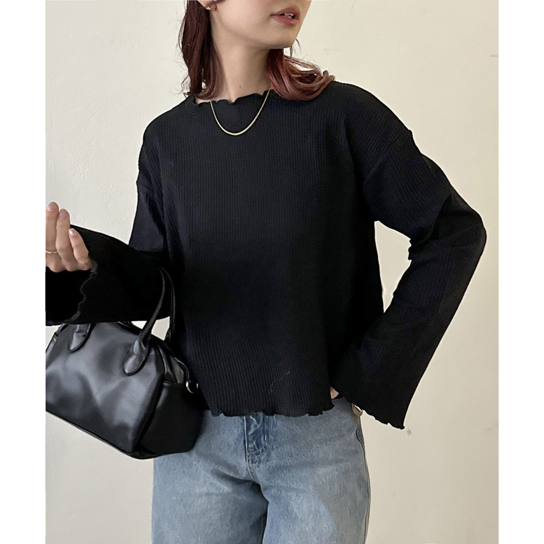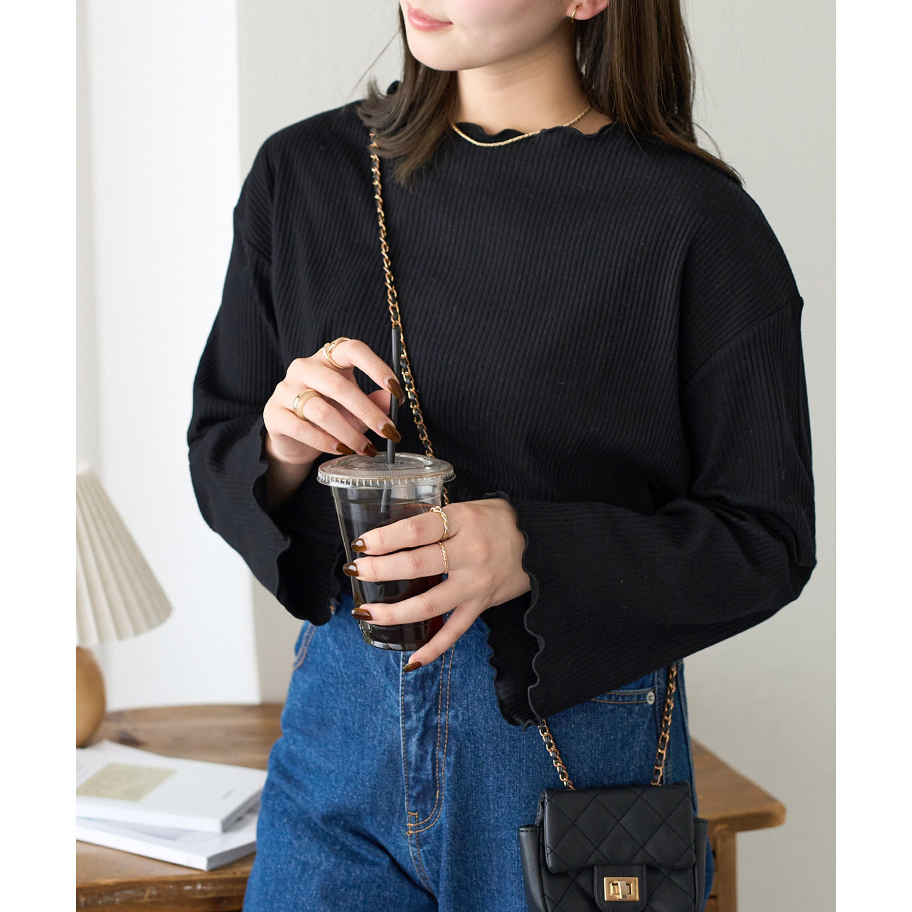 ・袖口・裾口・首元のメローデザインがポイントのリブトップス