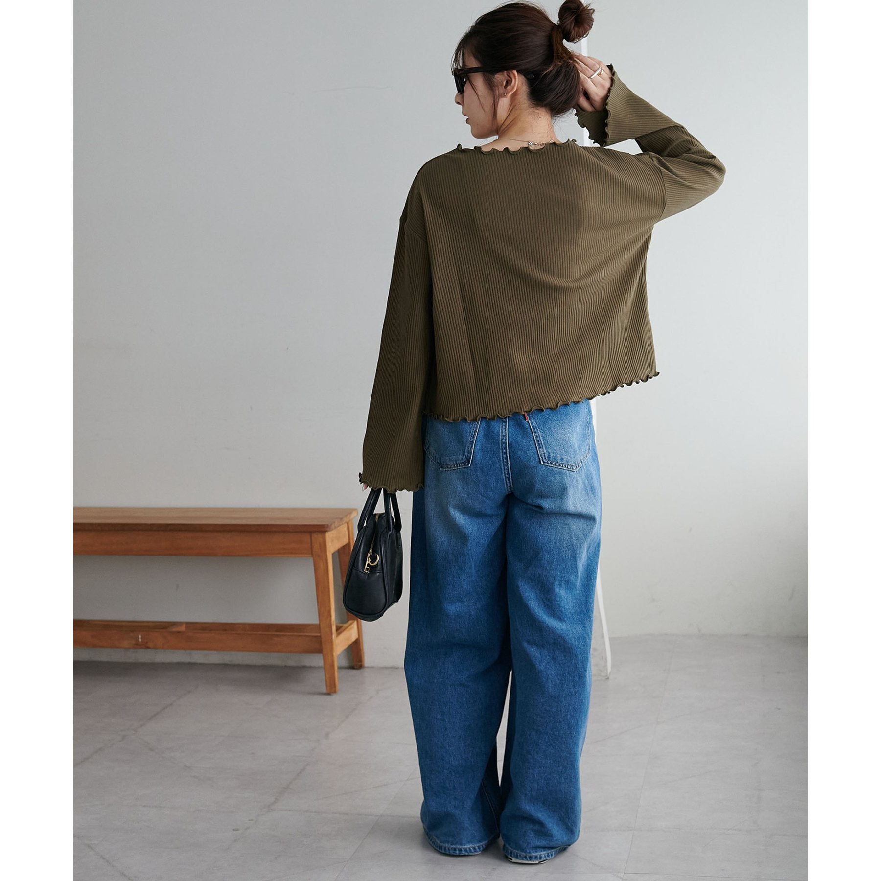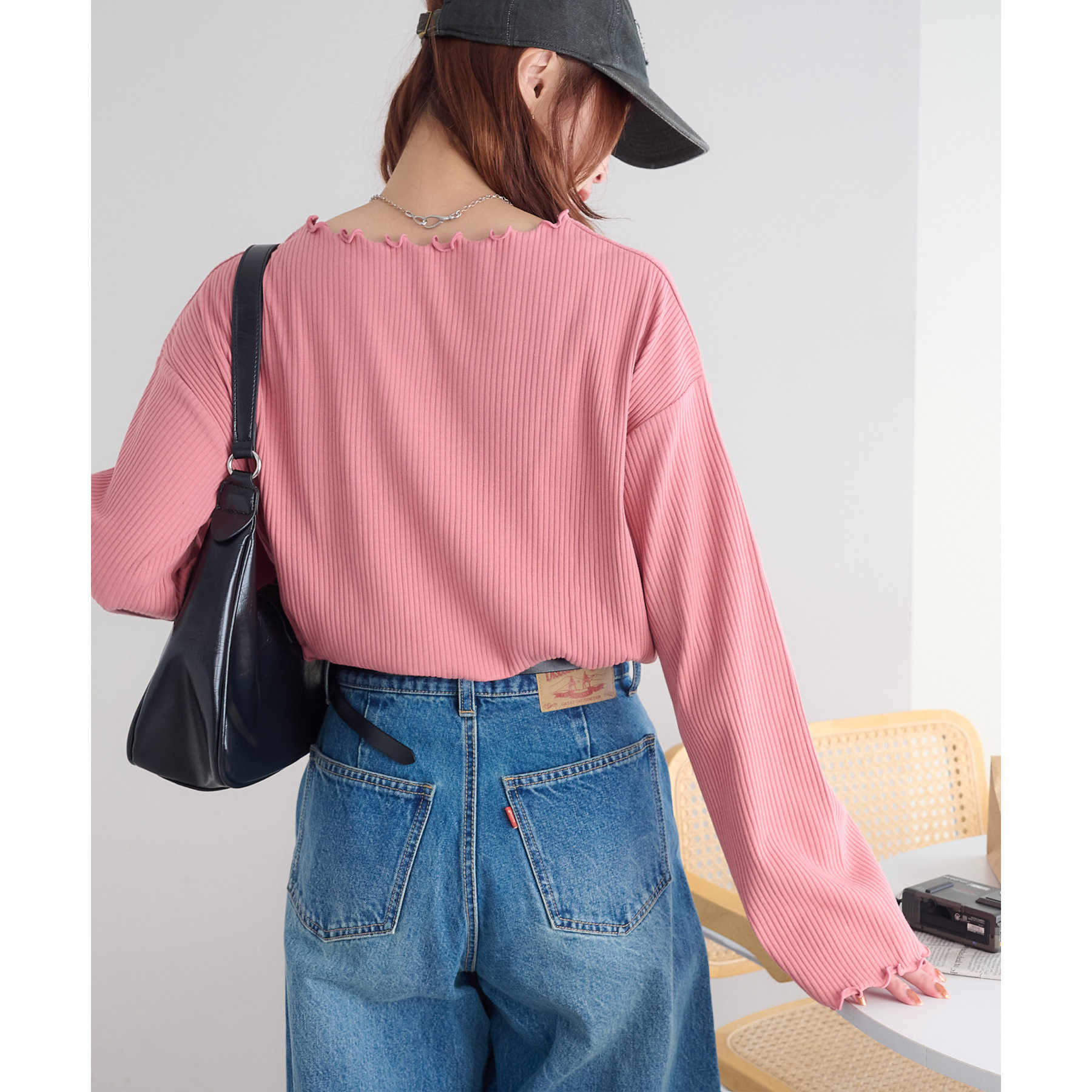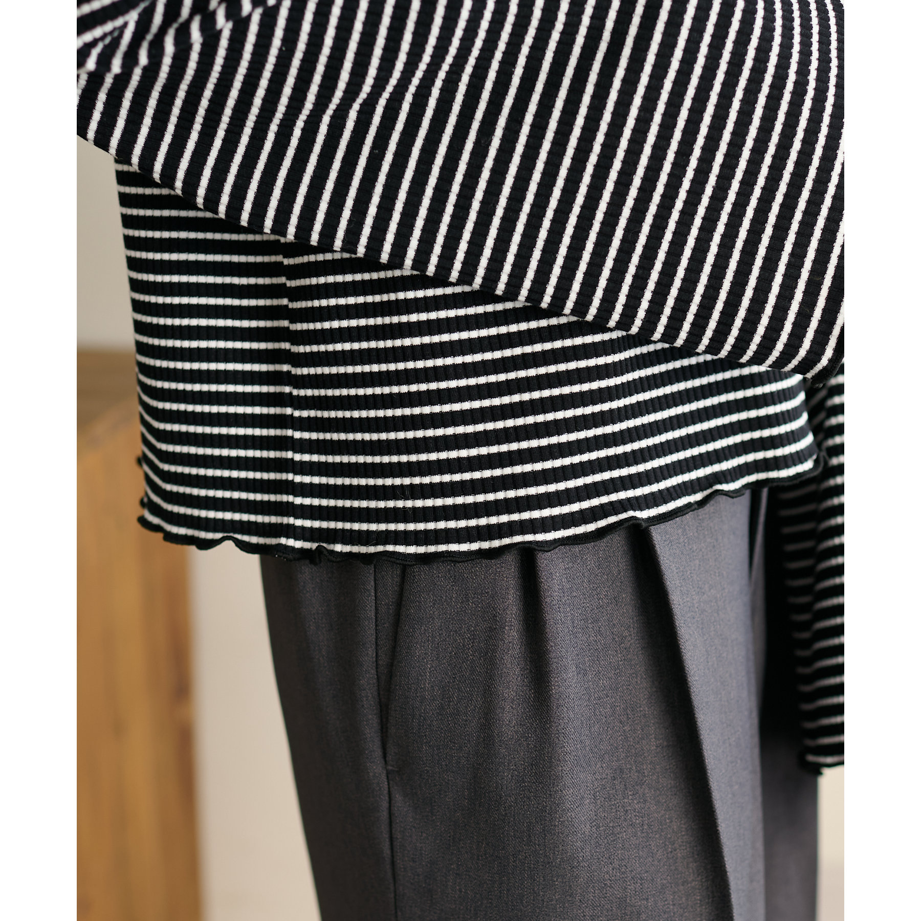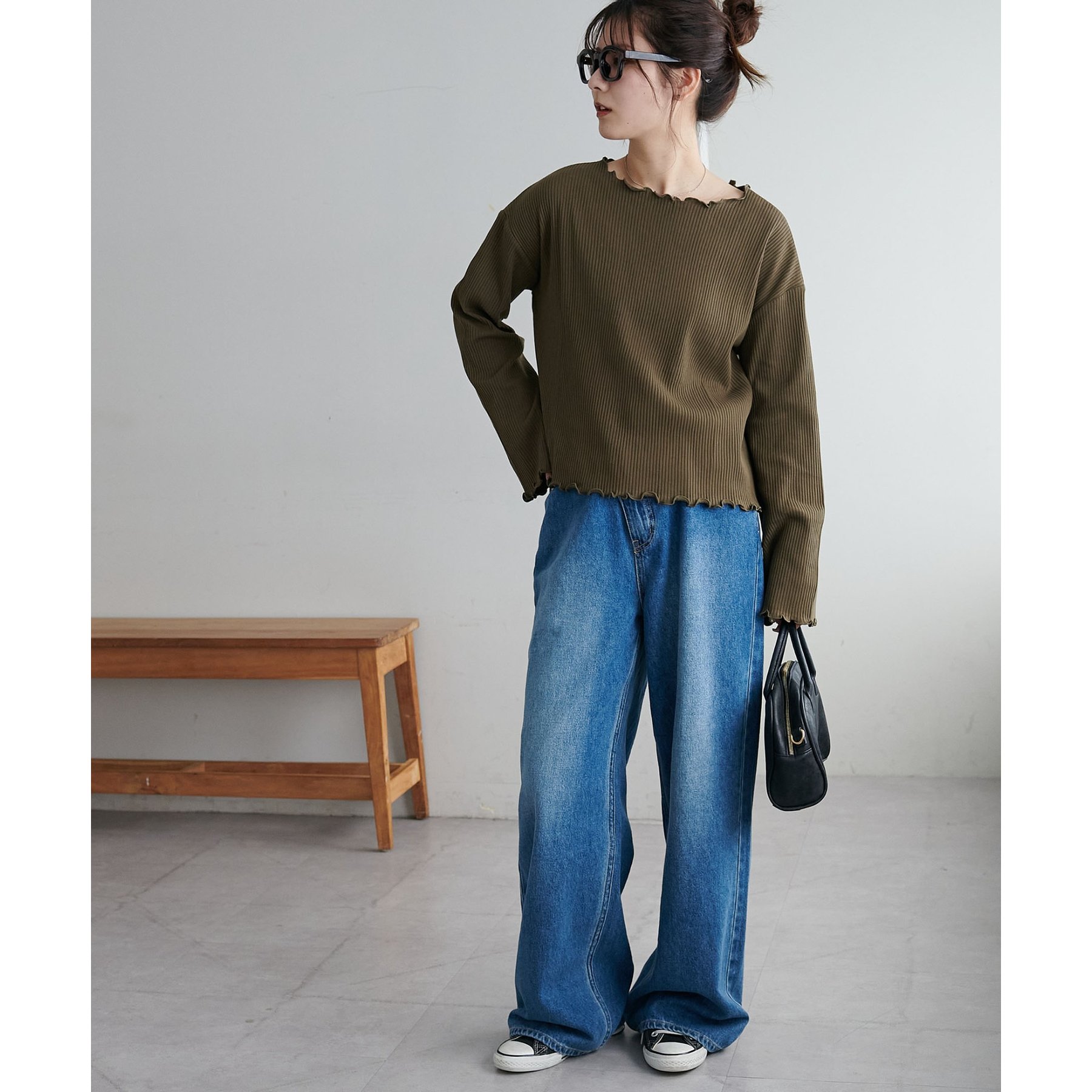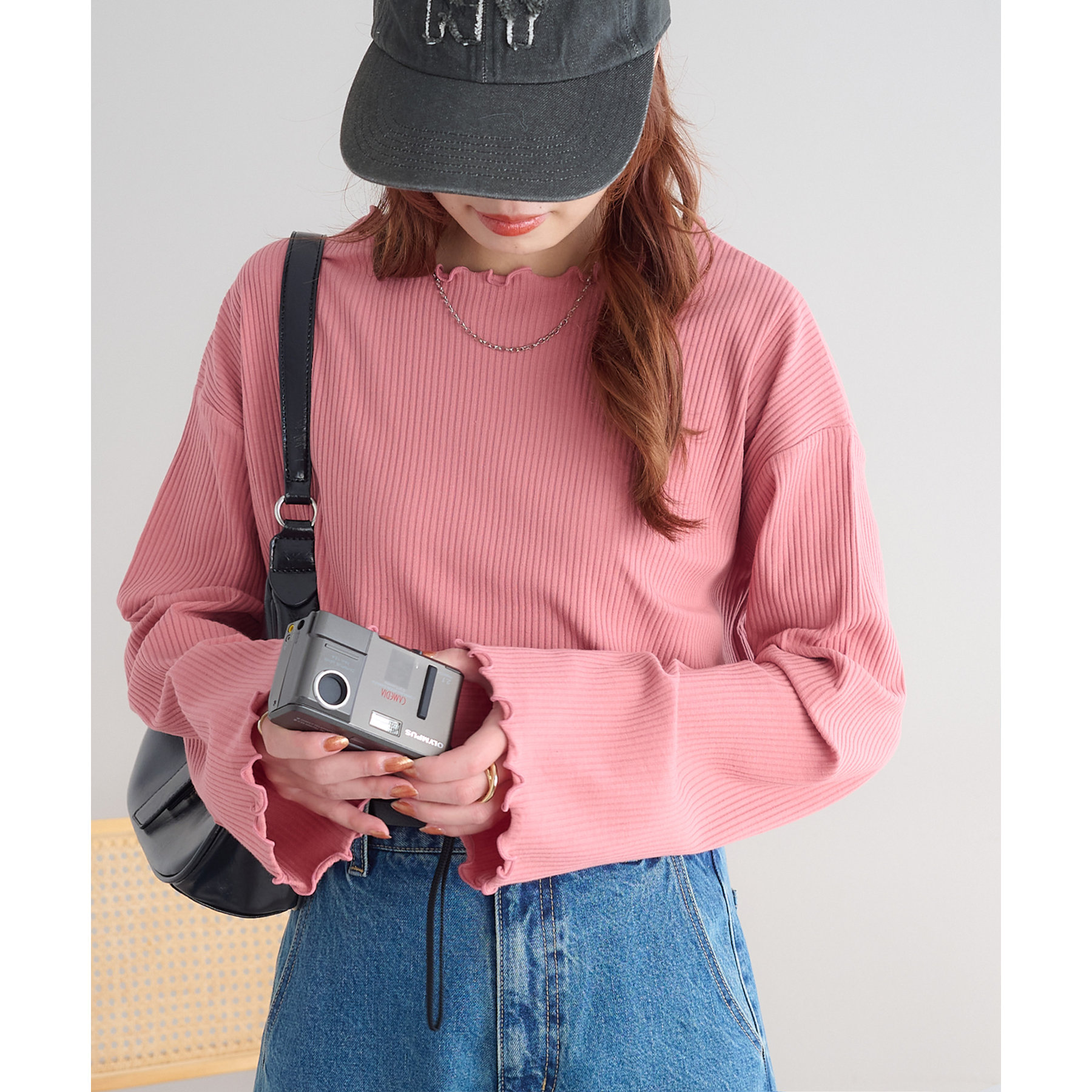 ・袖口・裾口・首元のメローデザインがポイントのリブトップス