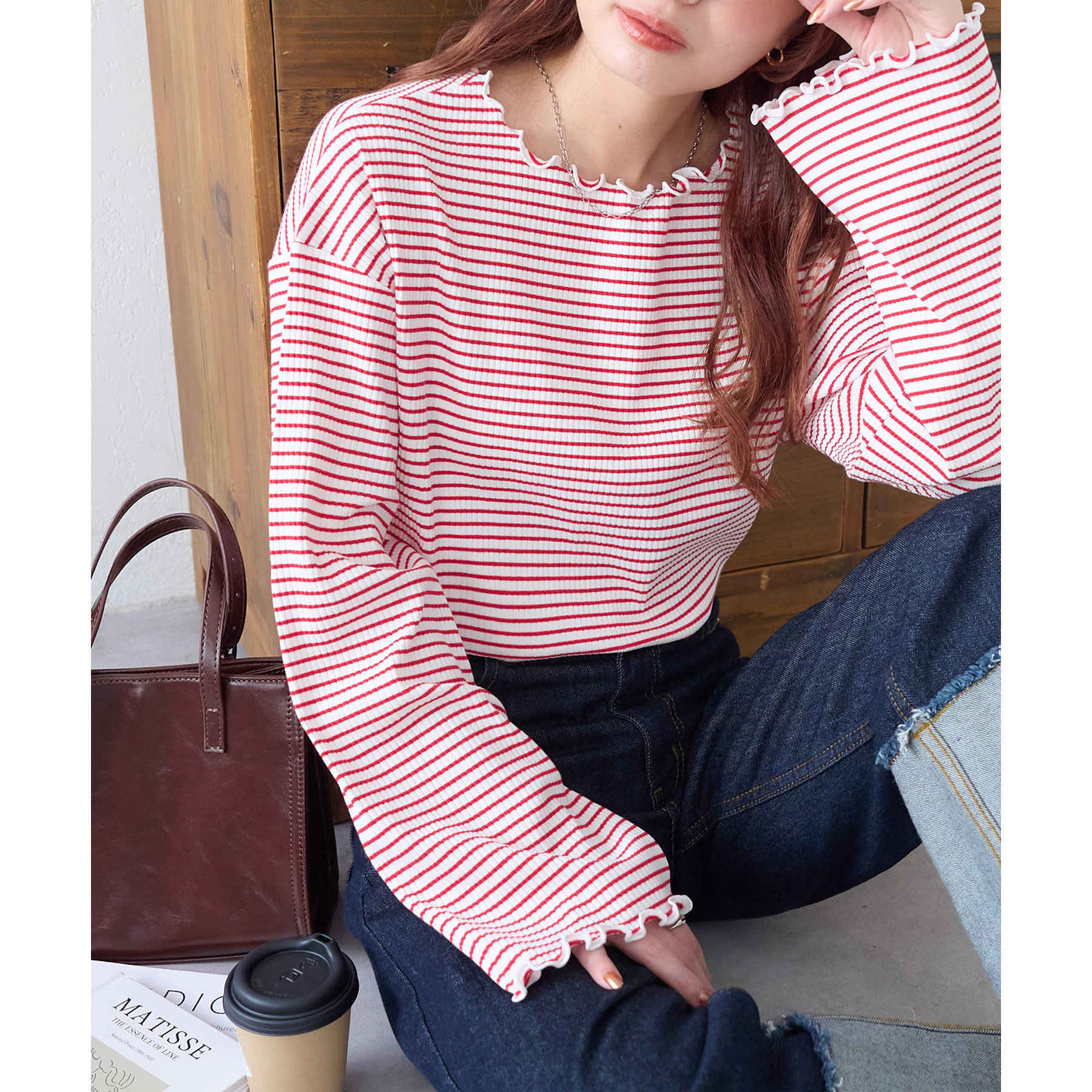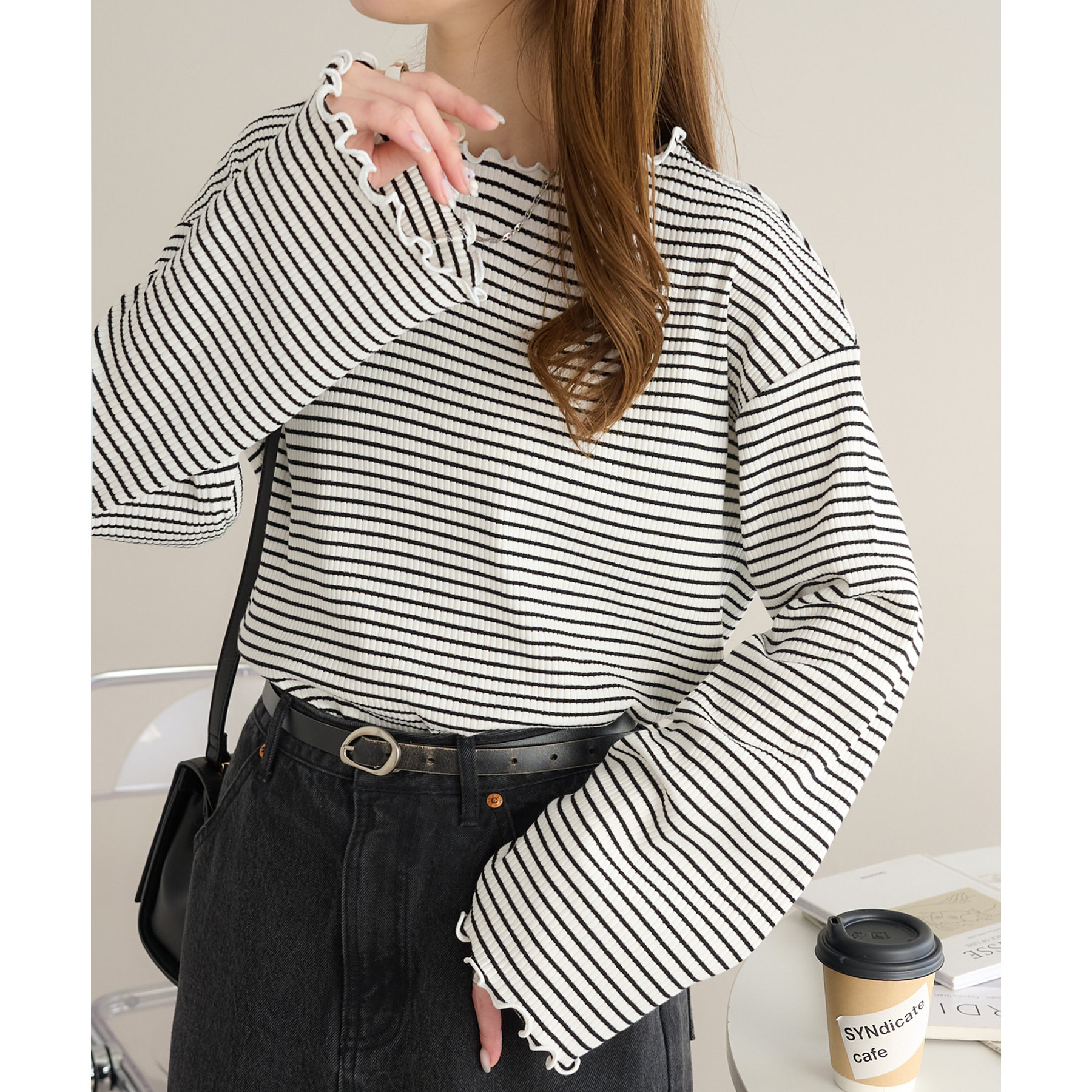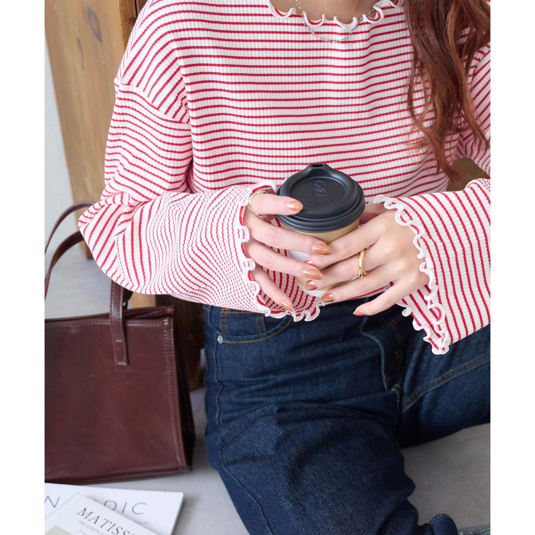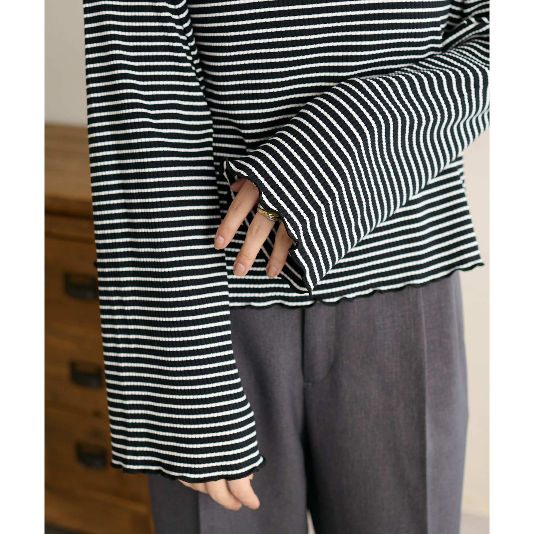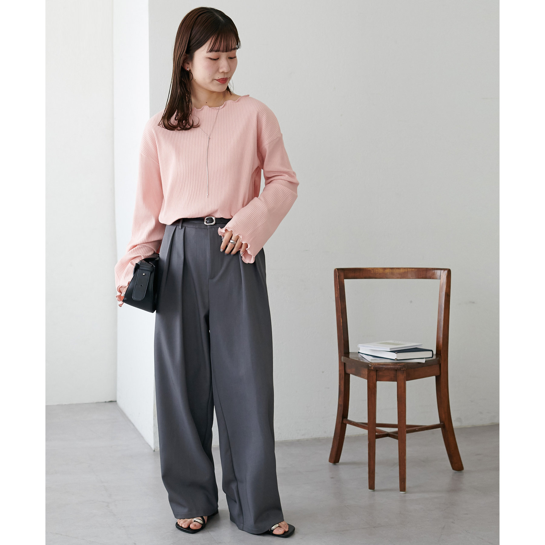 ・袖口・裾口・首元のメローデザインがポイントのリブトップス