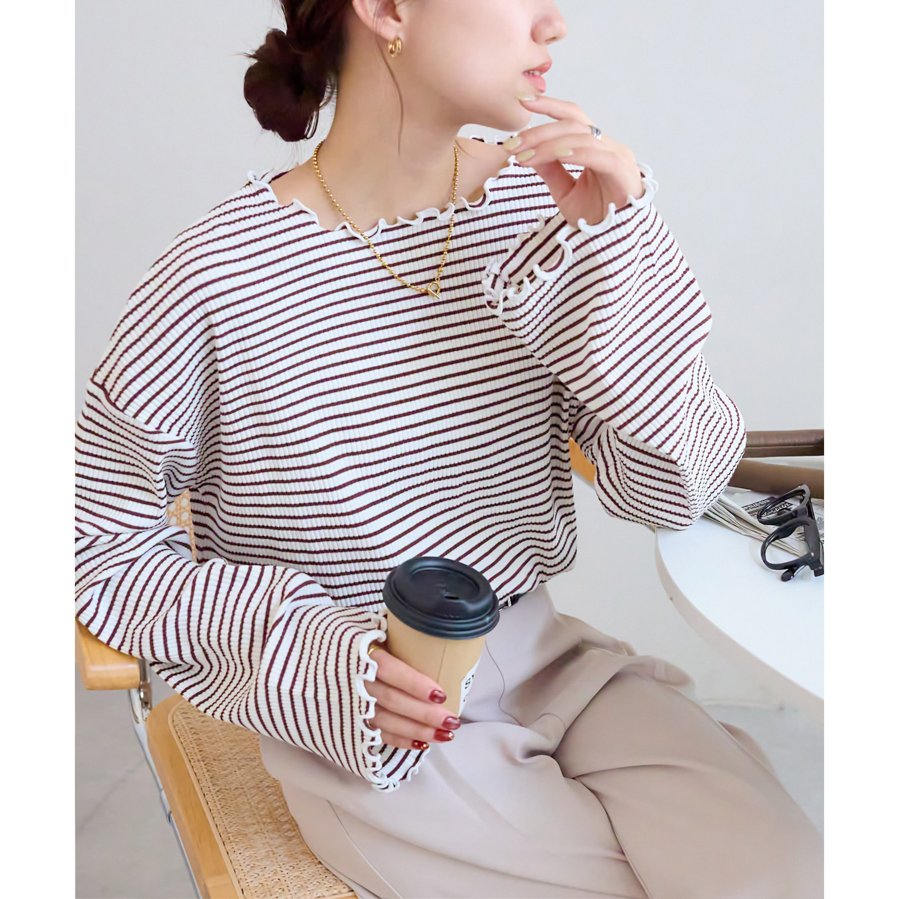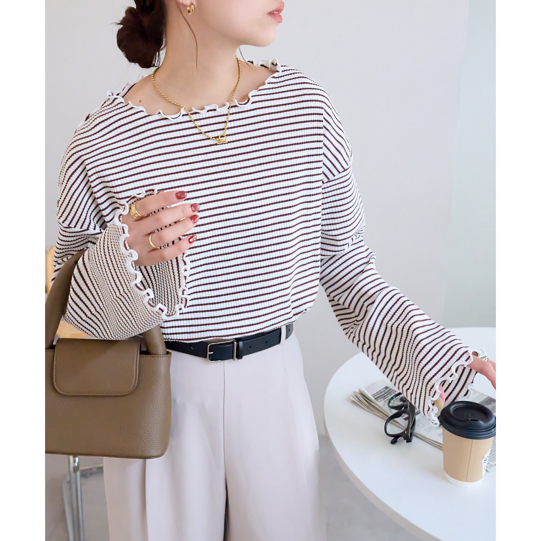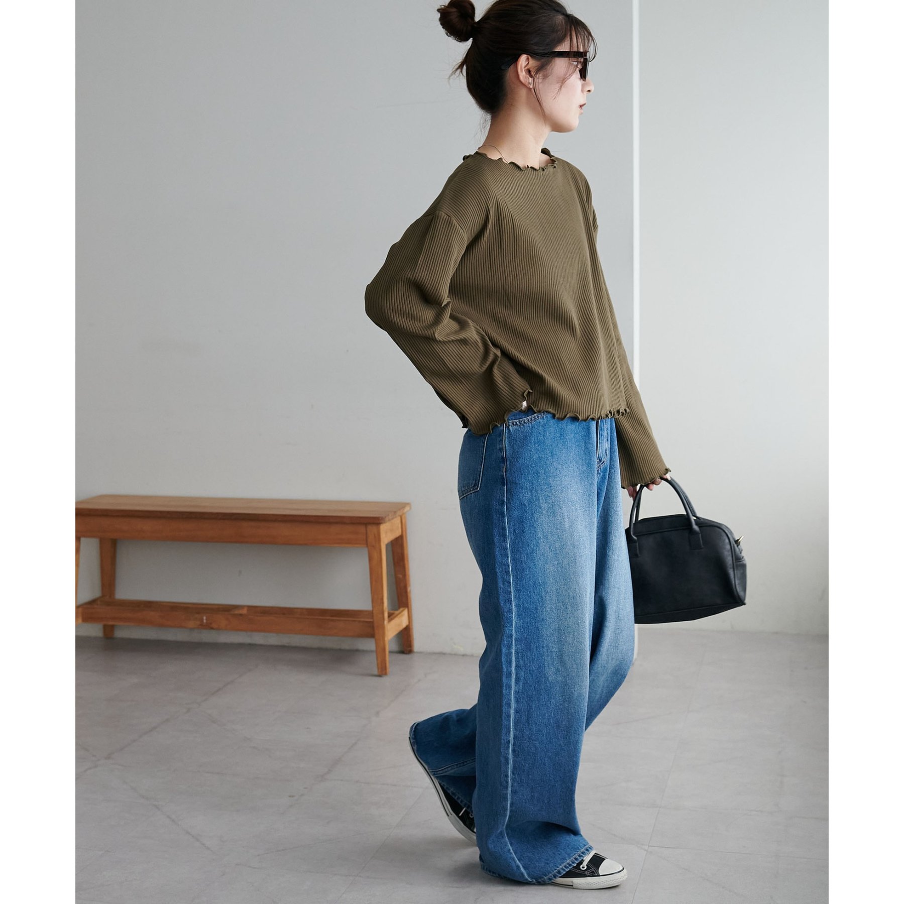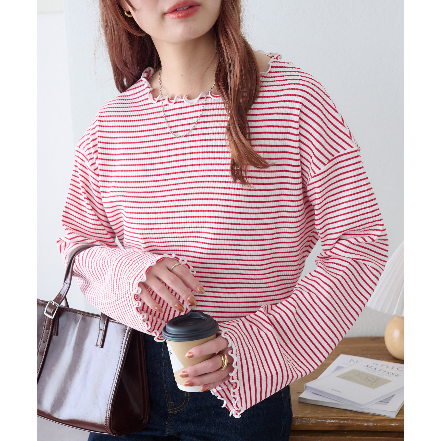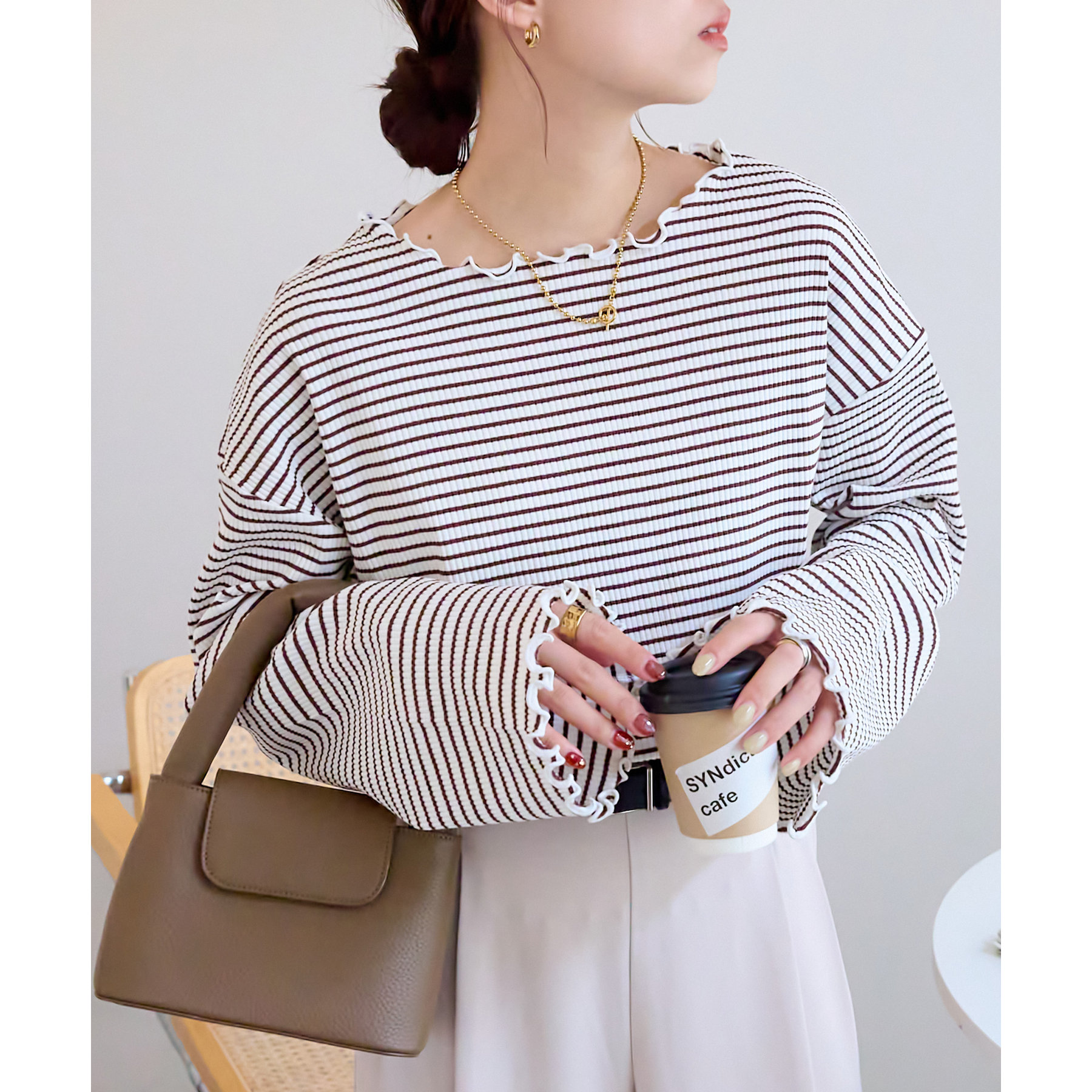 ・袖口・裾口・首元のメローデザインがポイントのリブトップス