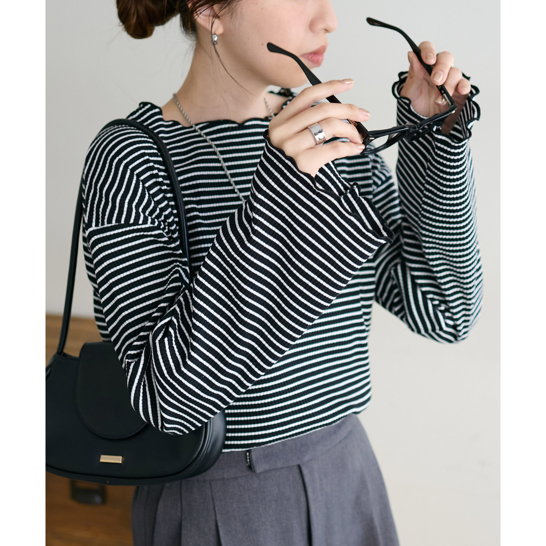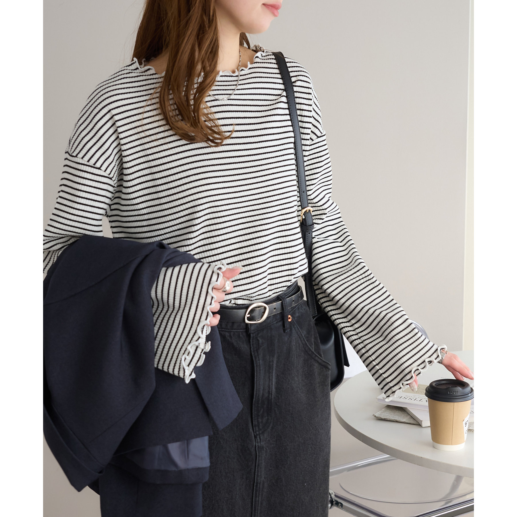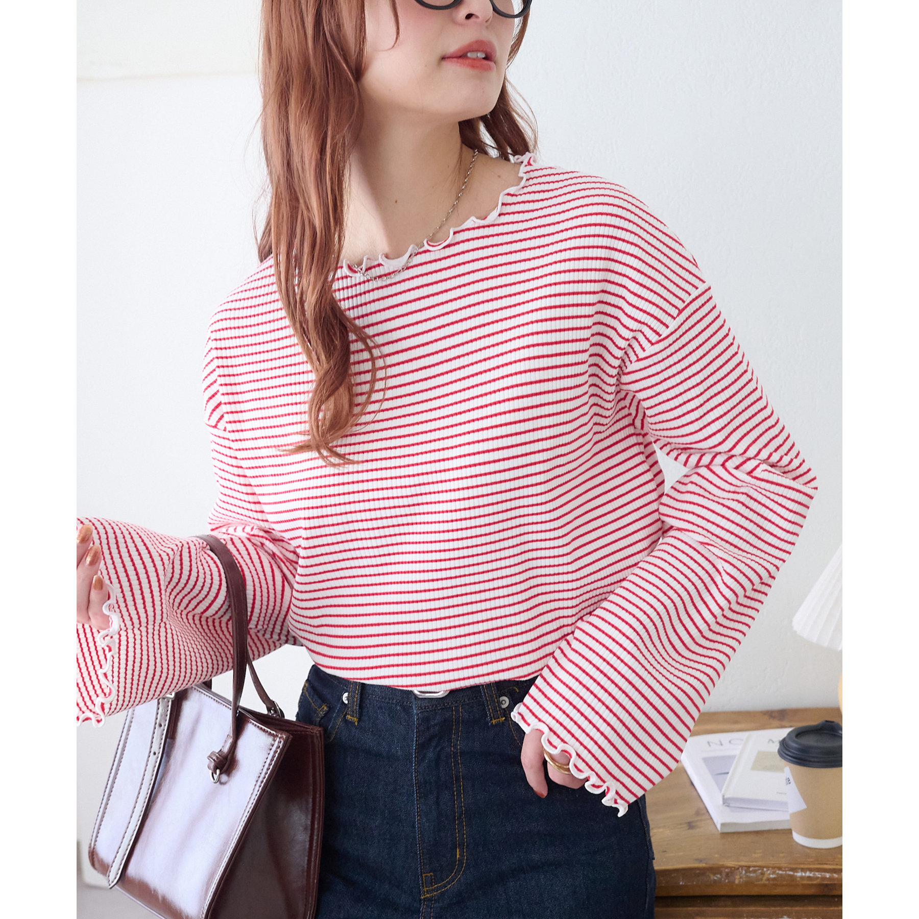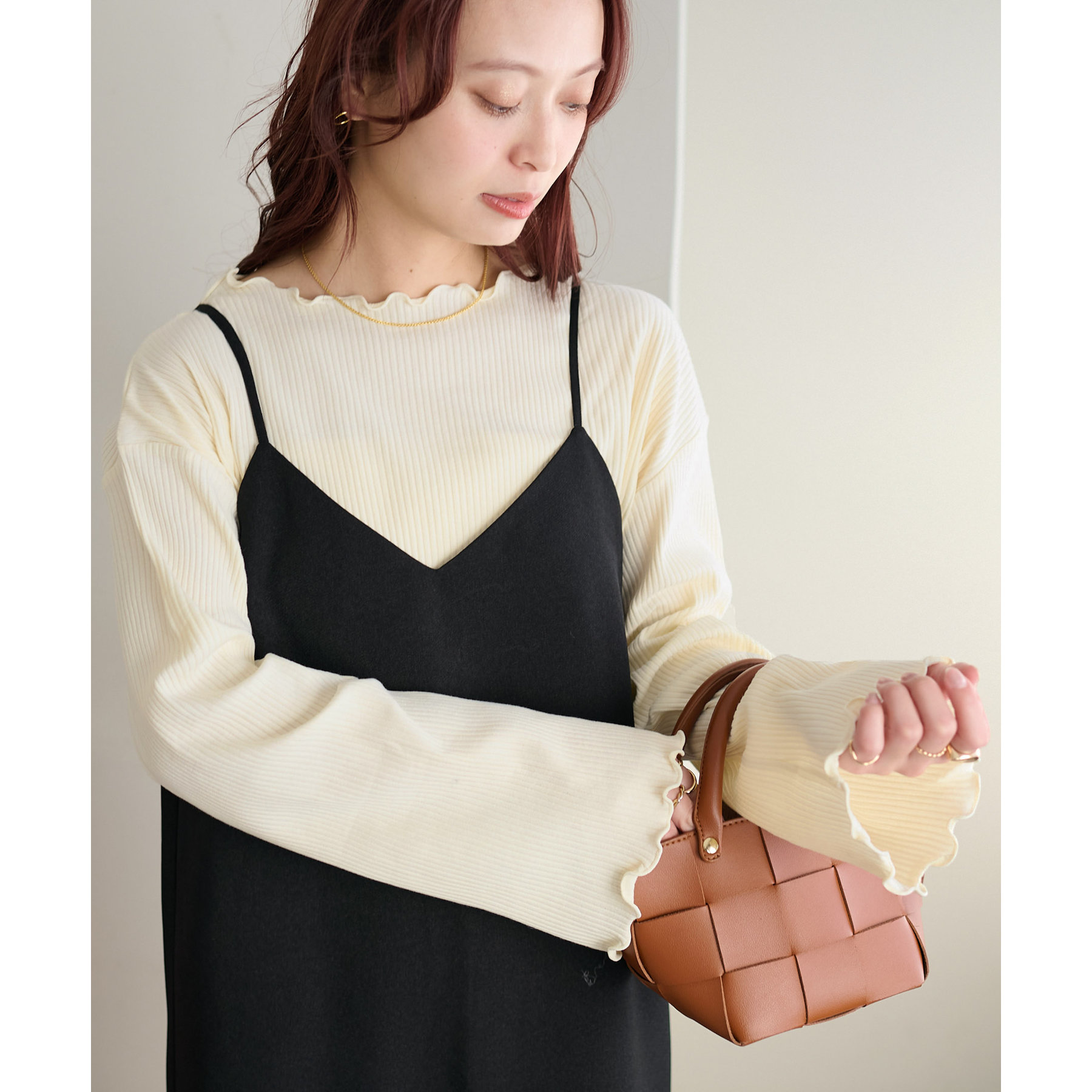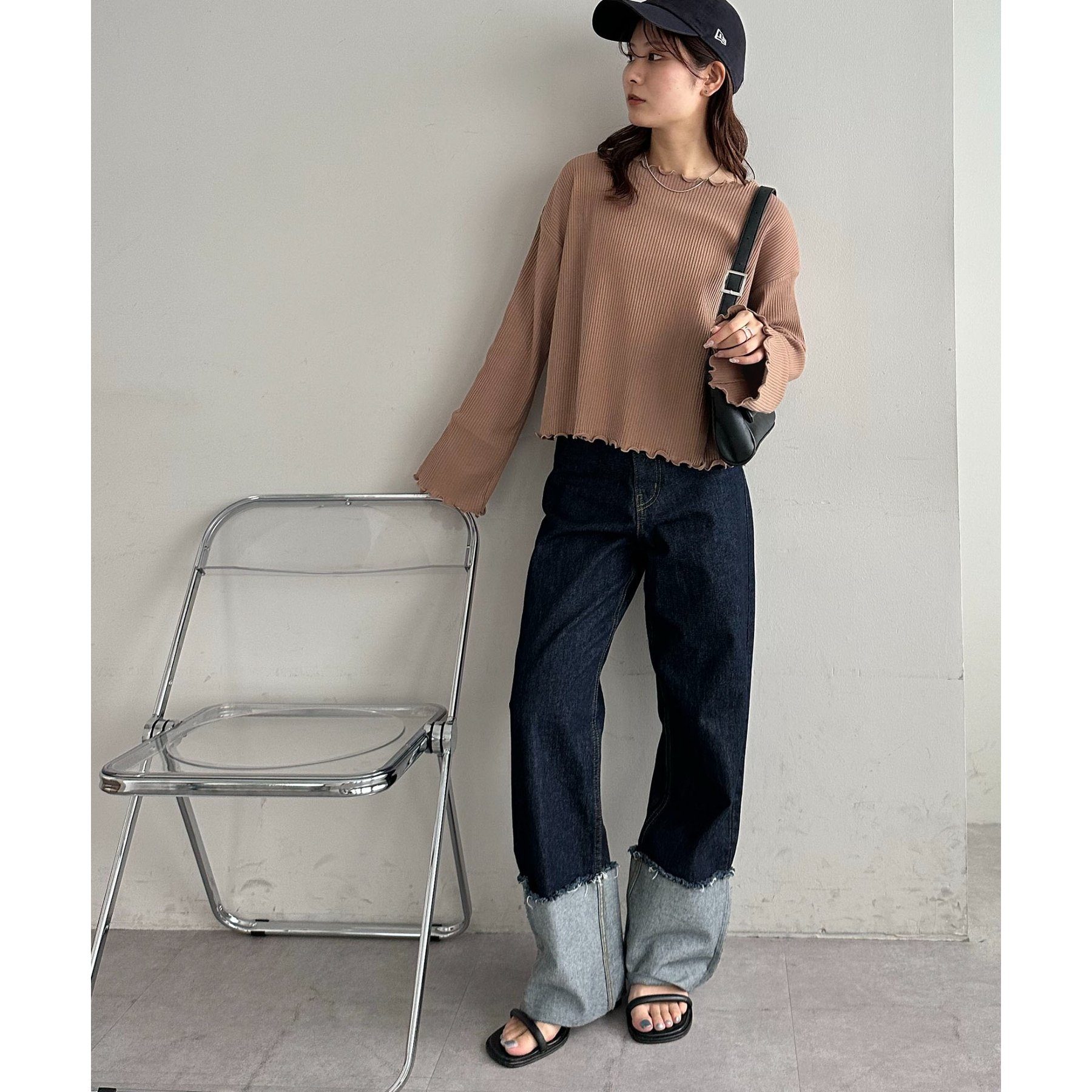 ・袖口・裾口・首元のメローデザインがポイントのリブトップス