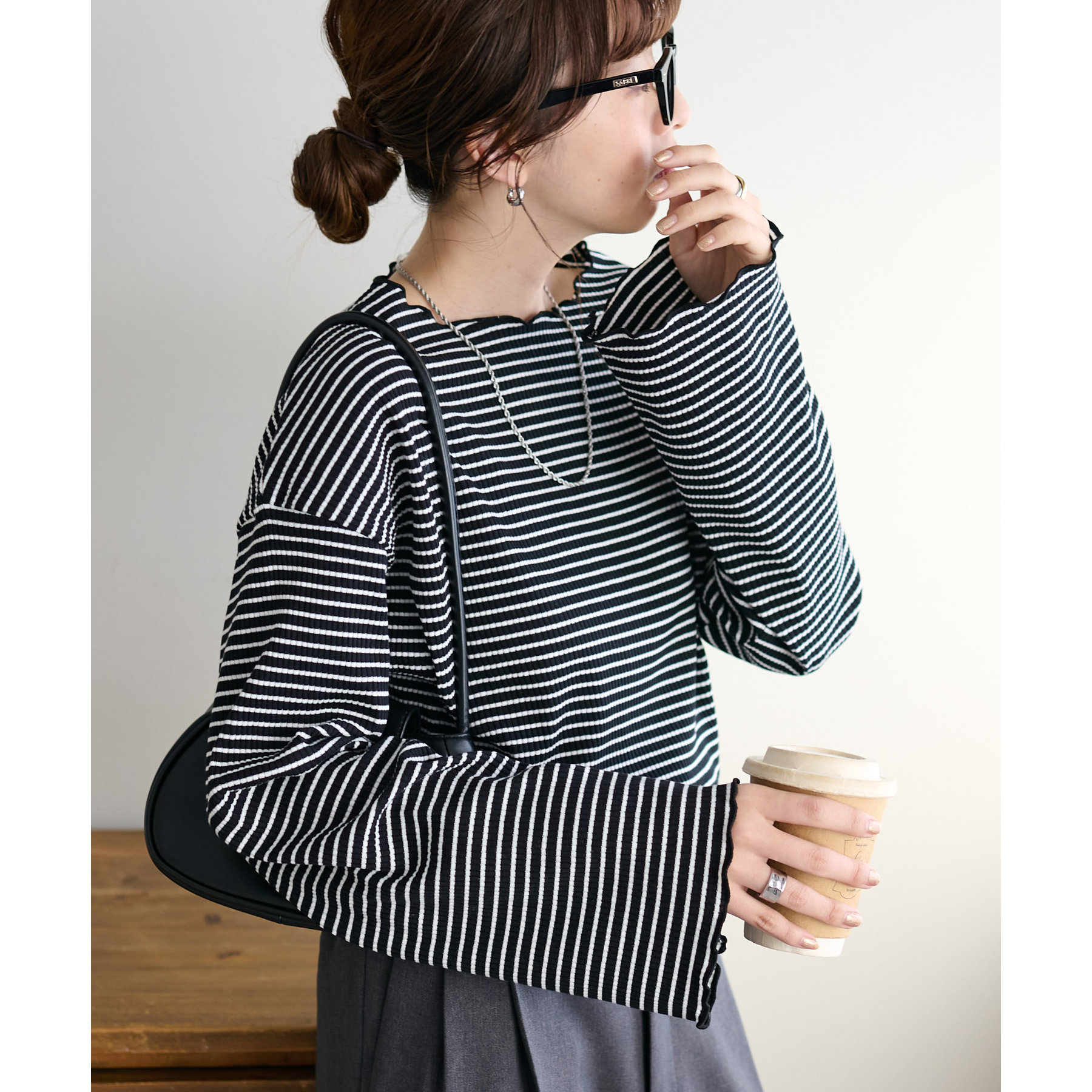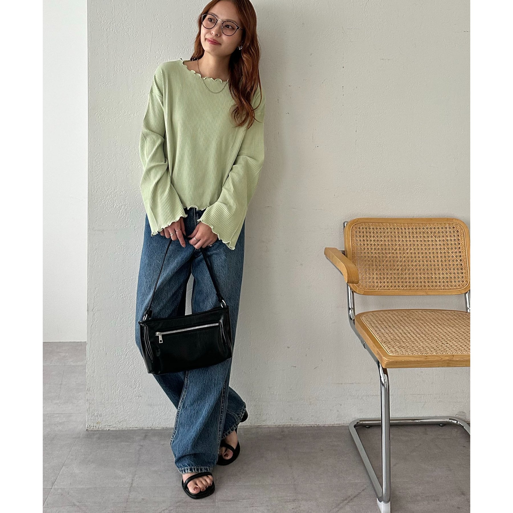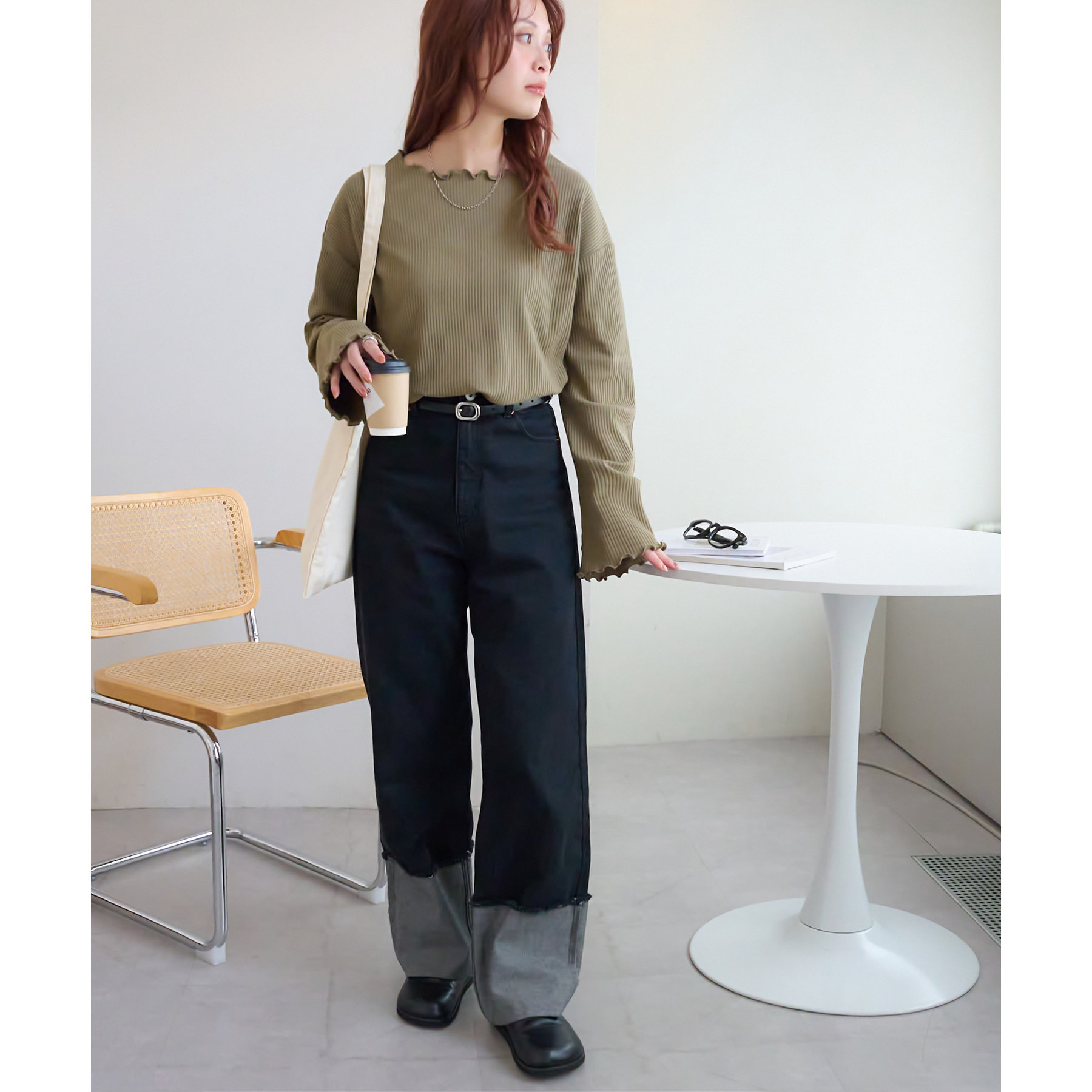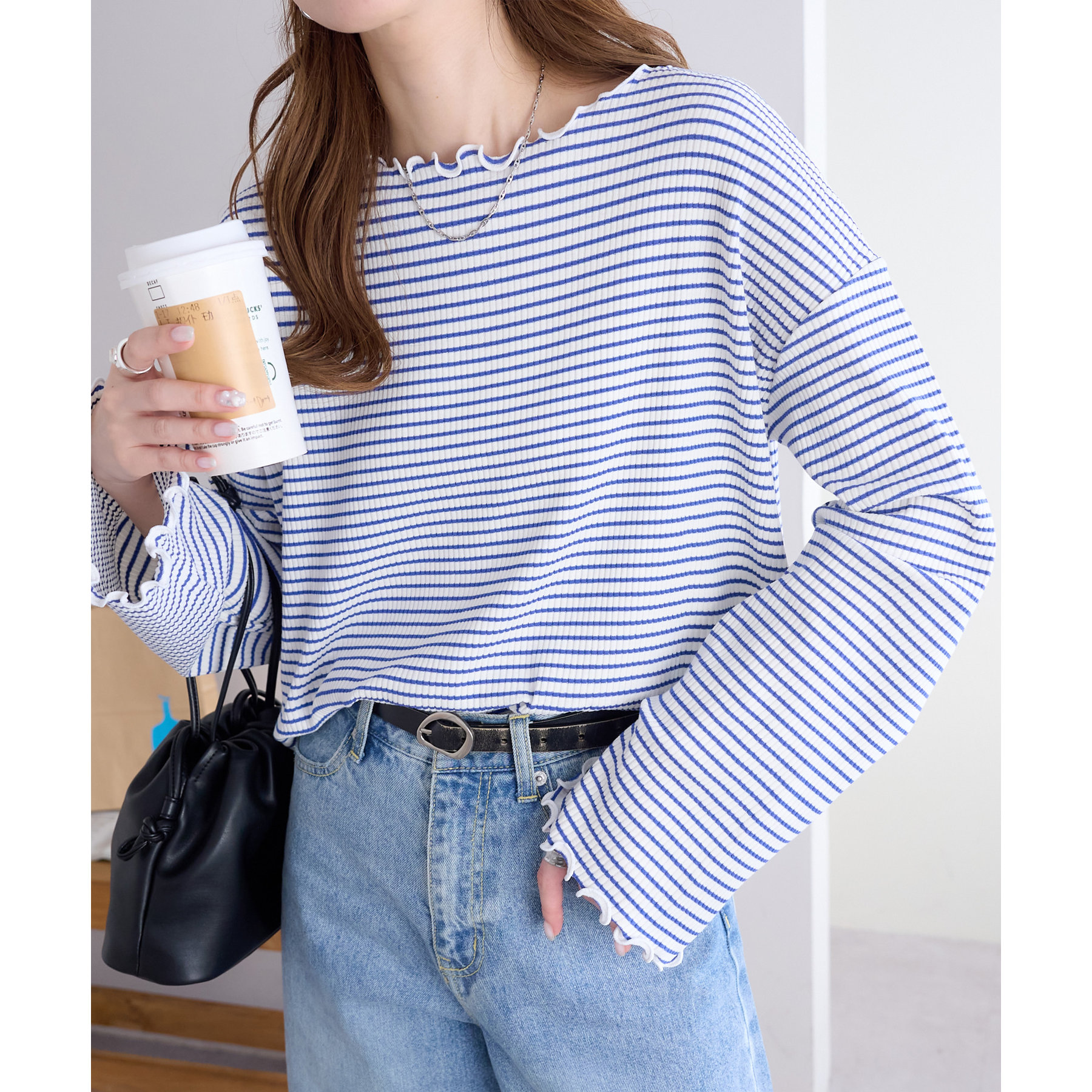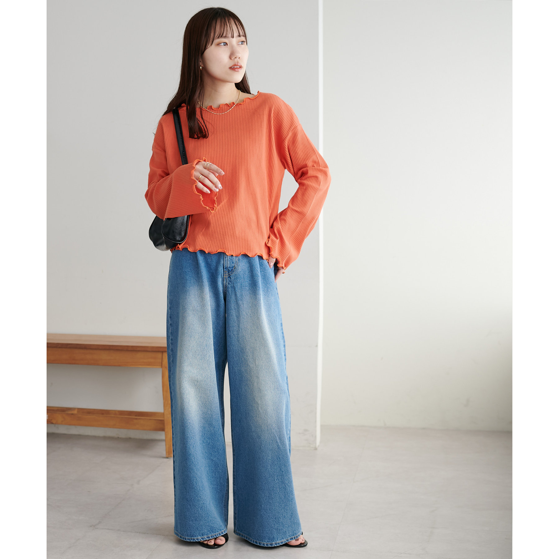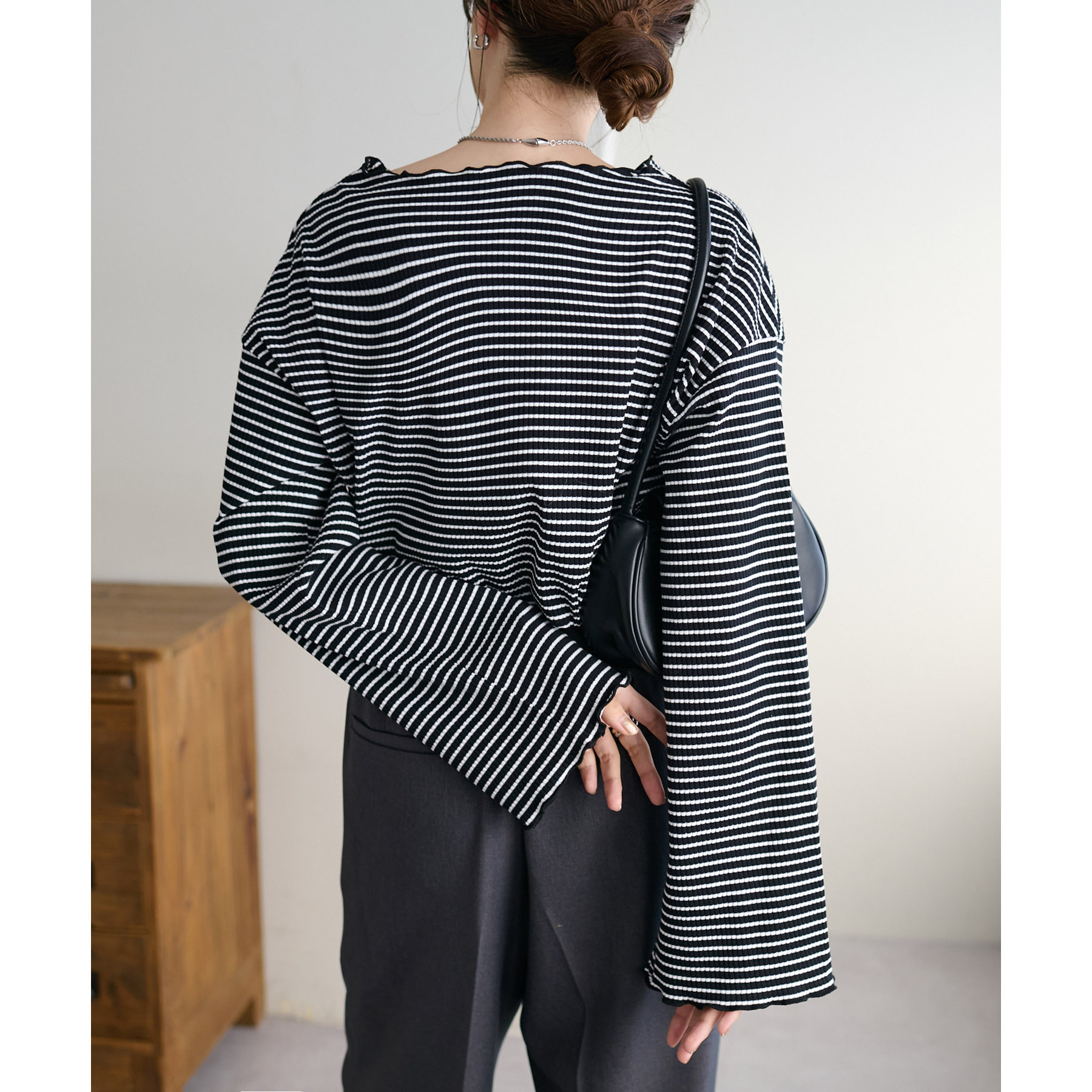・袖口・裾口・首元のメローデザインがポイントのリブトップス