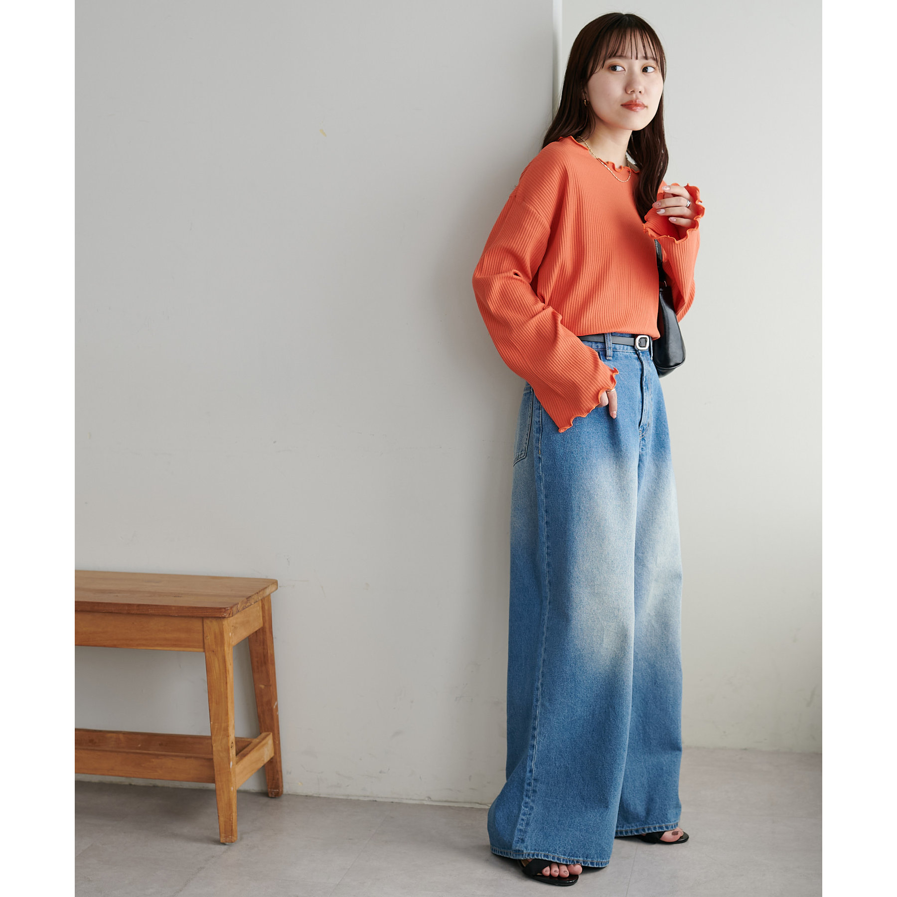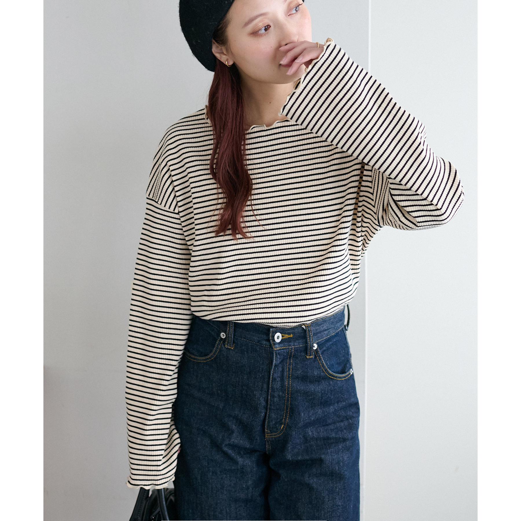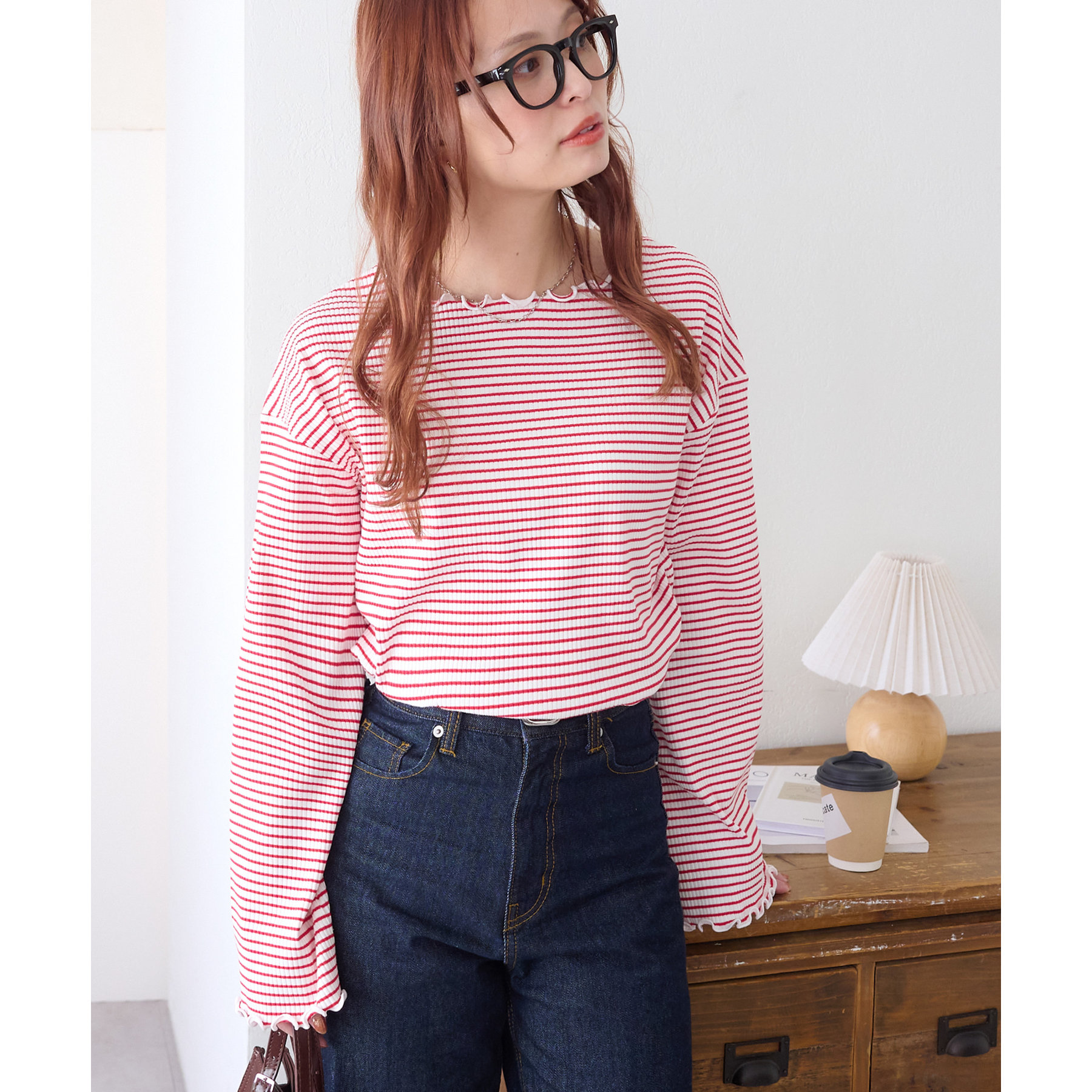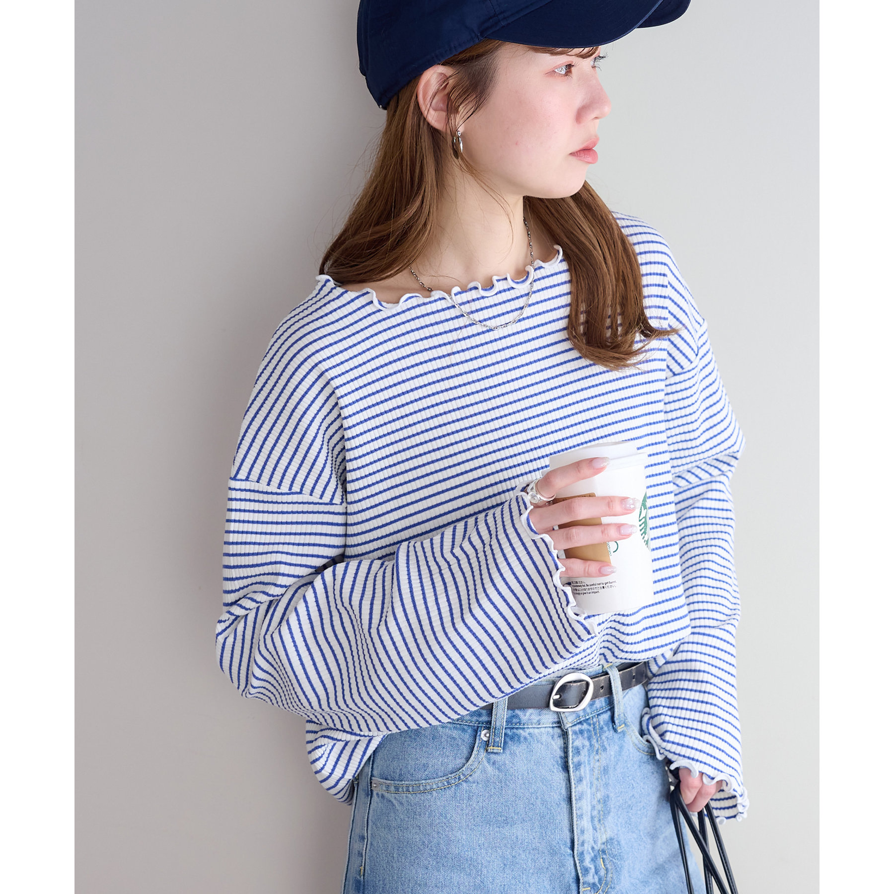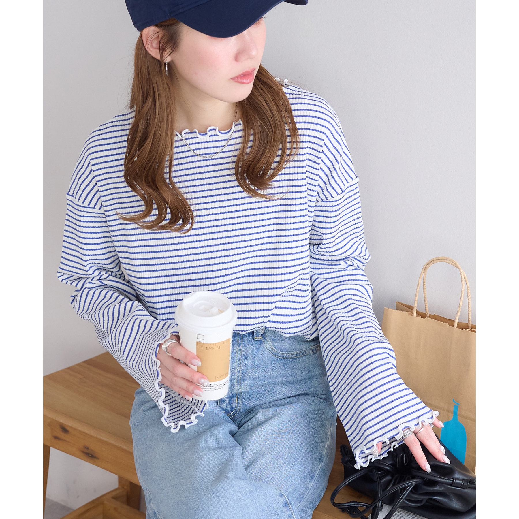 ・袖口・裾口・首元のメローデザインがポイントのリブトップス