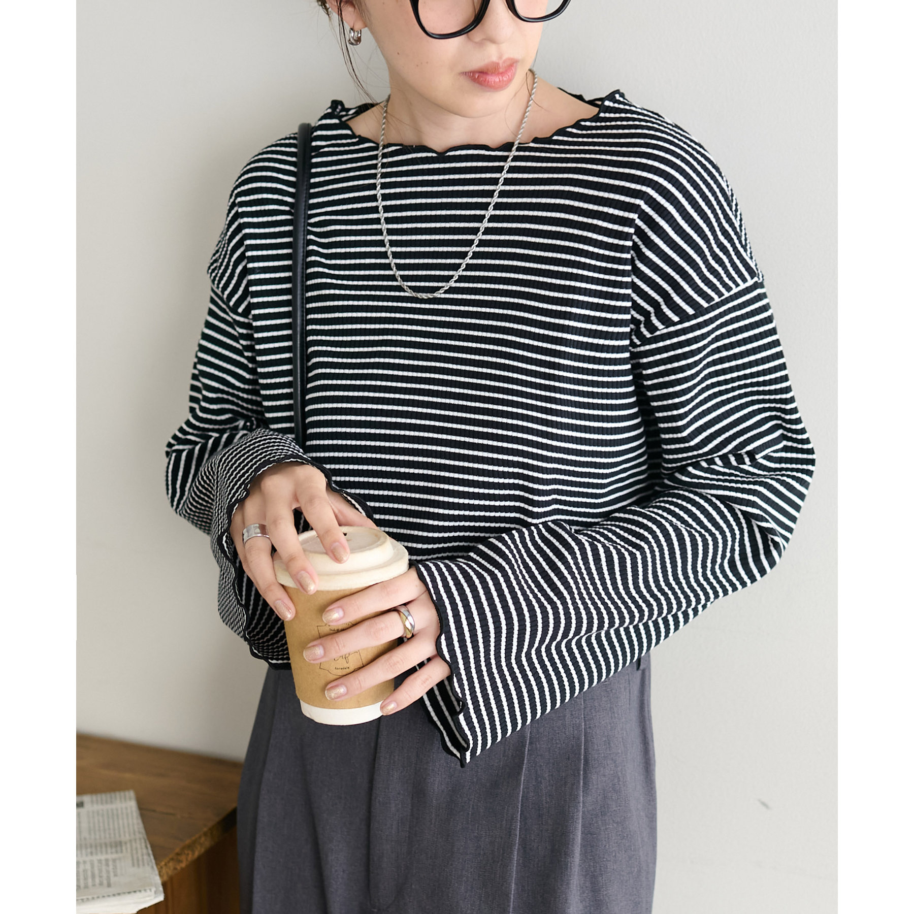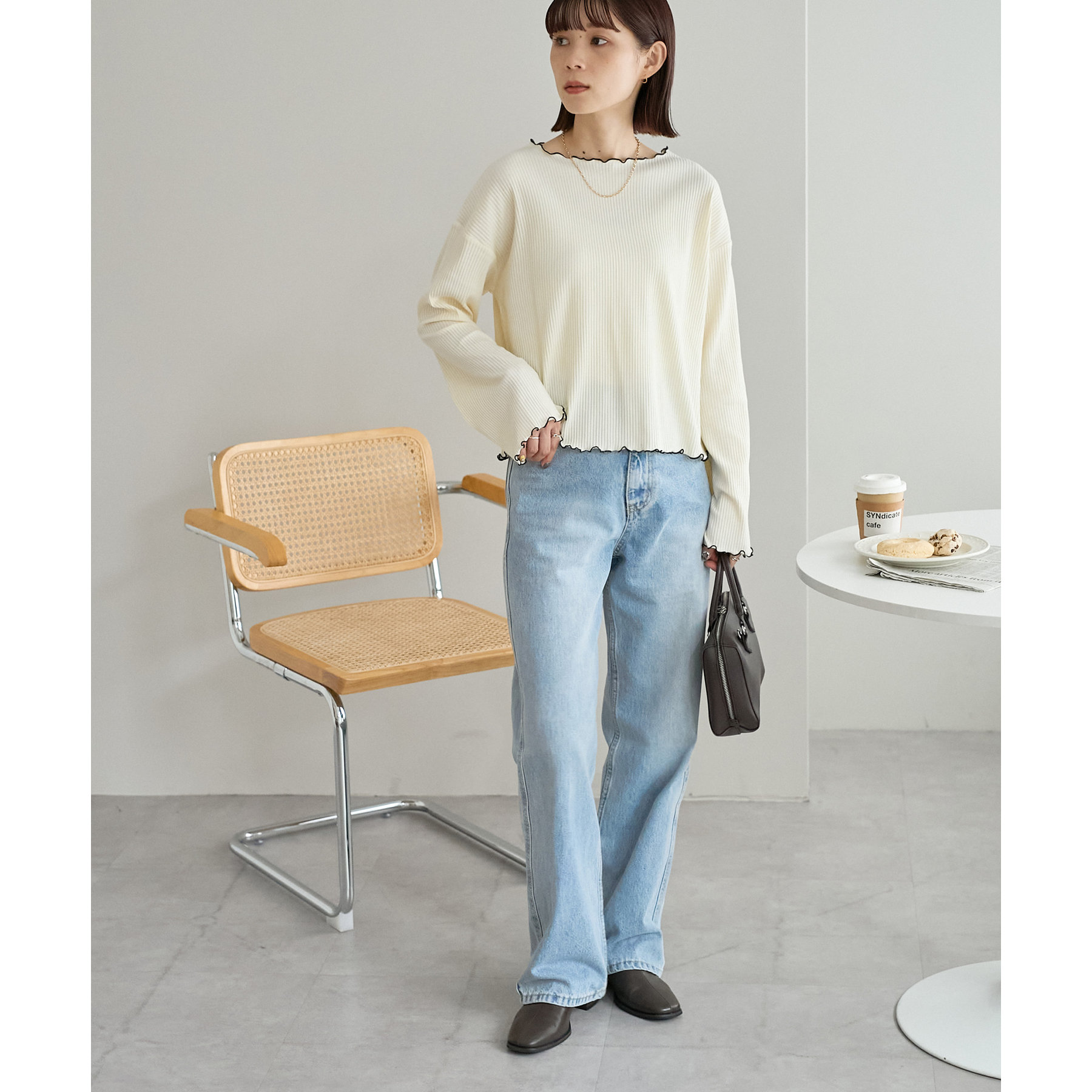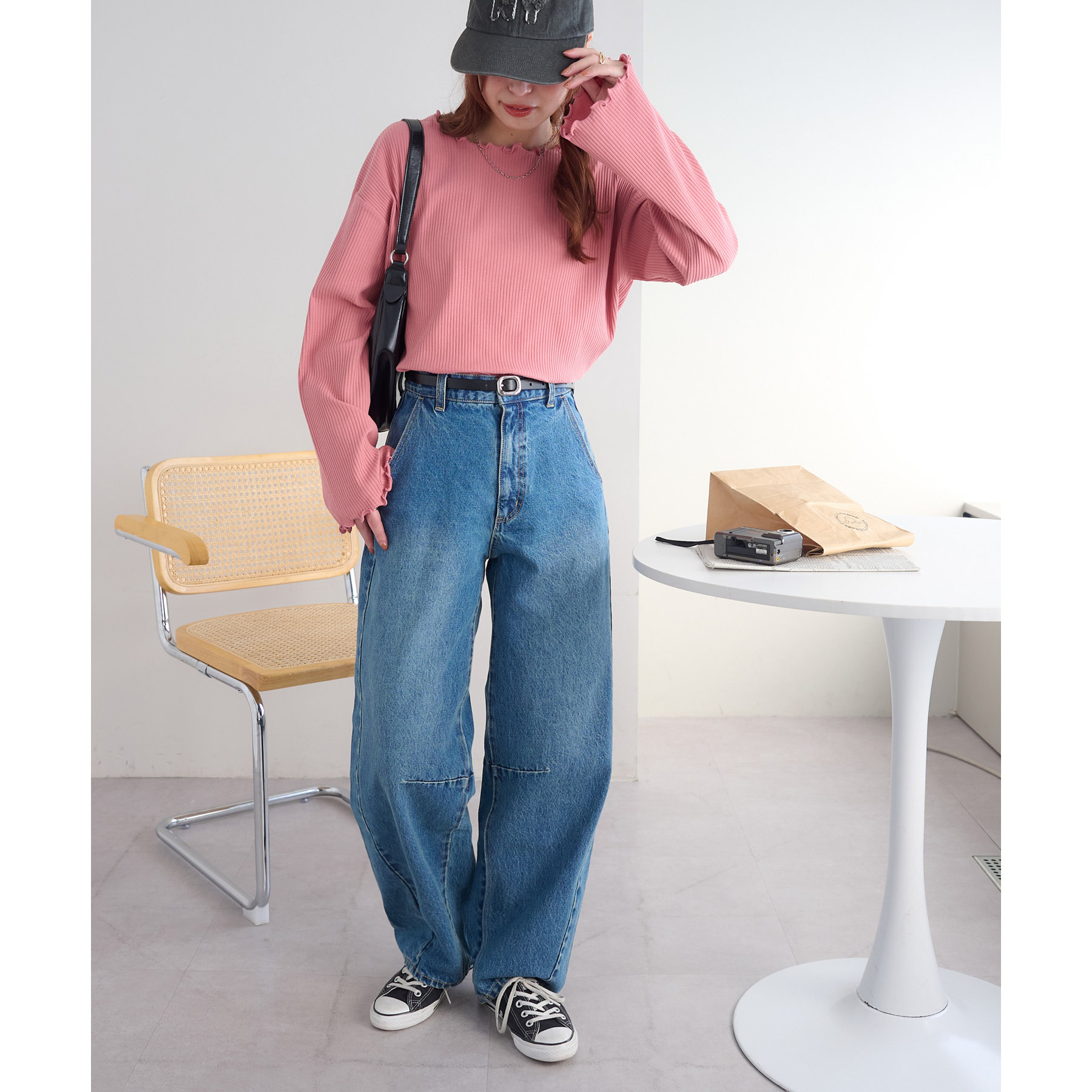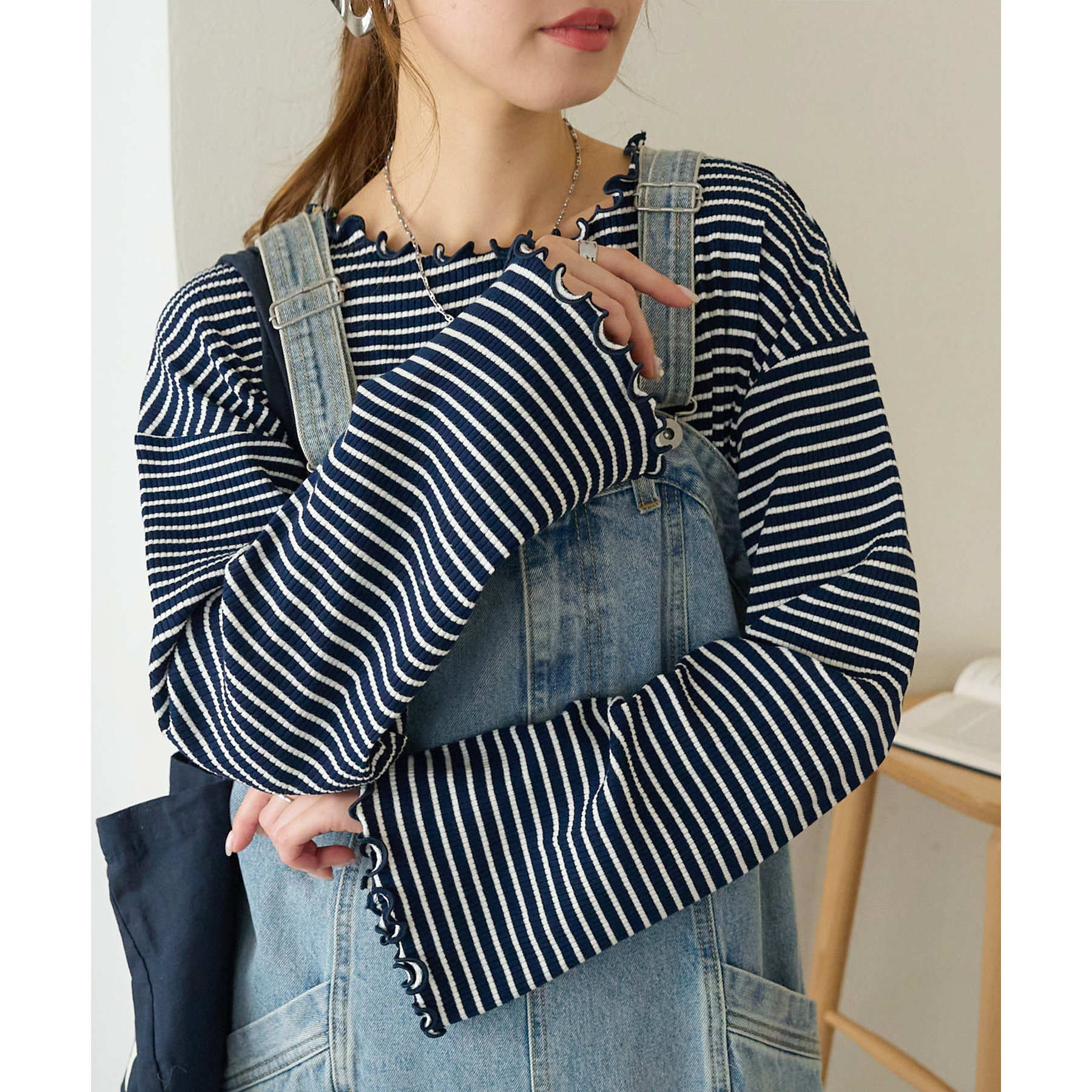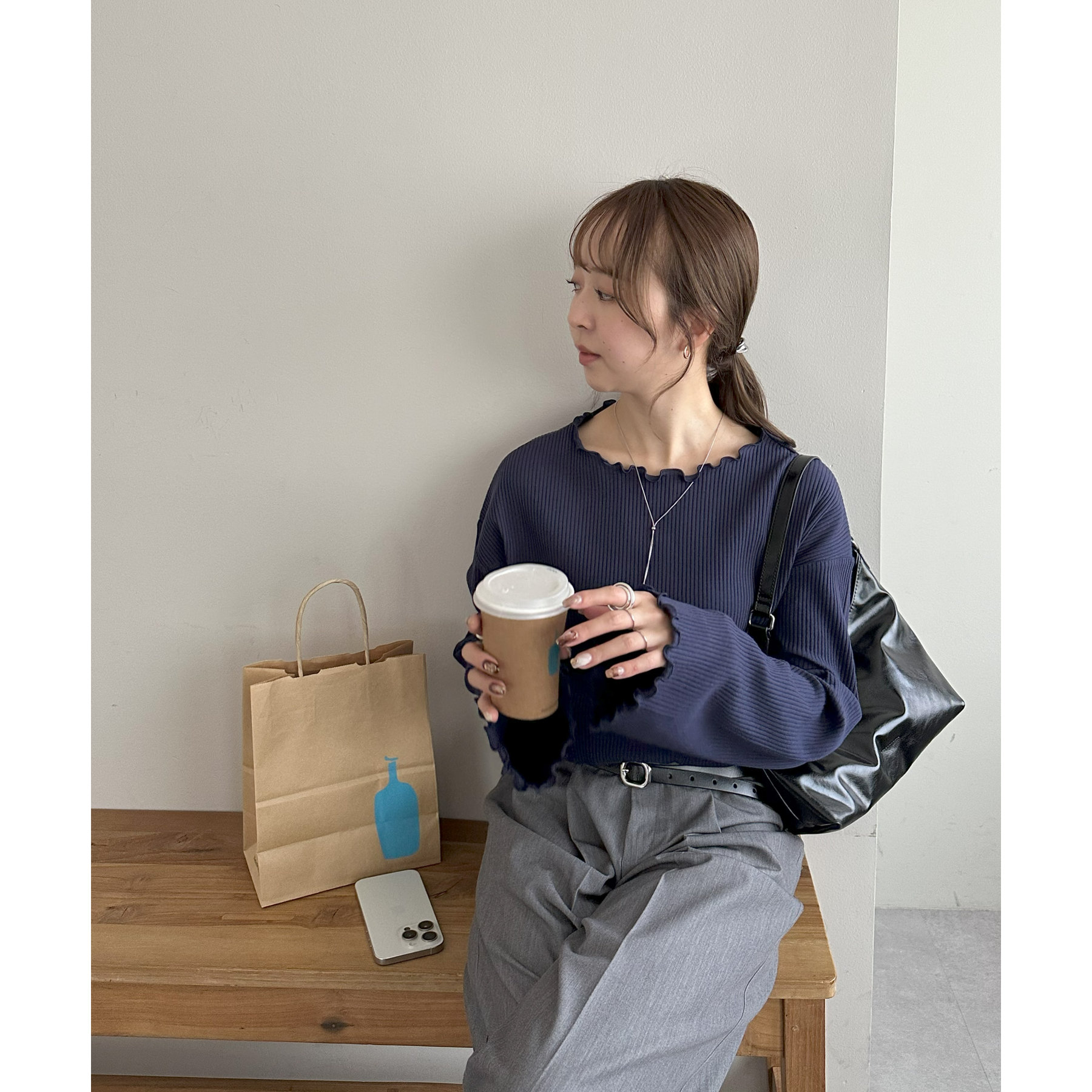 ・袖口・裾口・首元のメローデザインがポイントのリブトップス