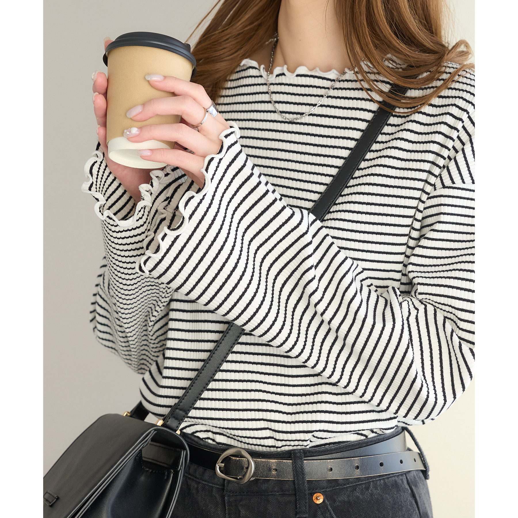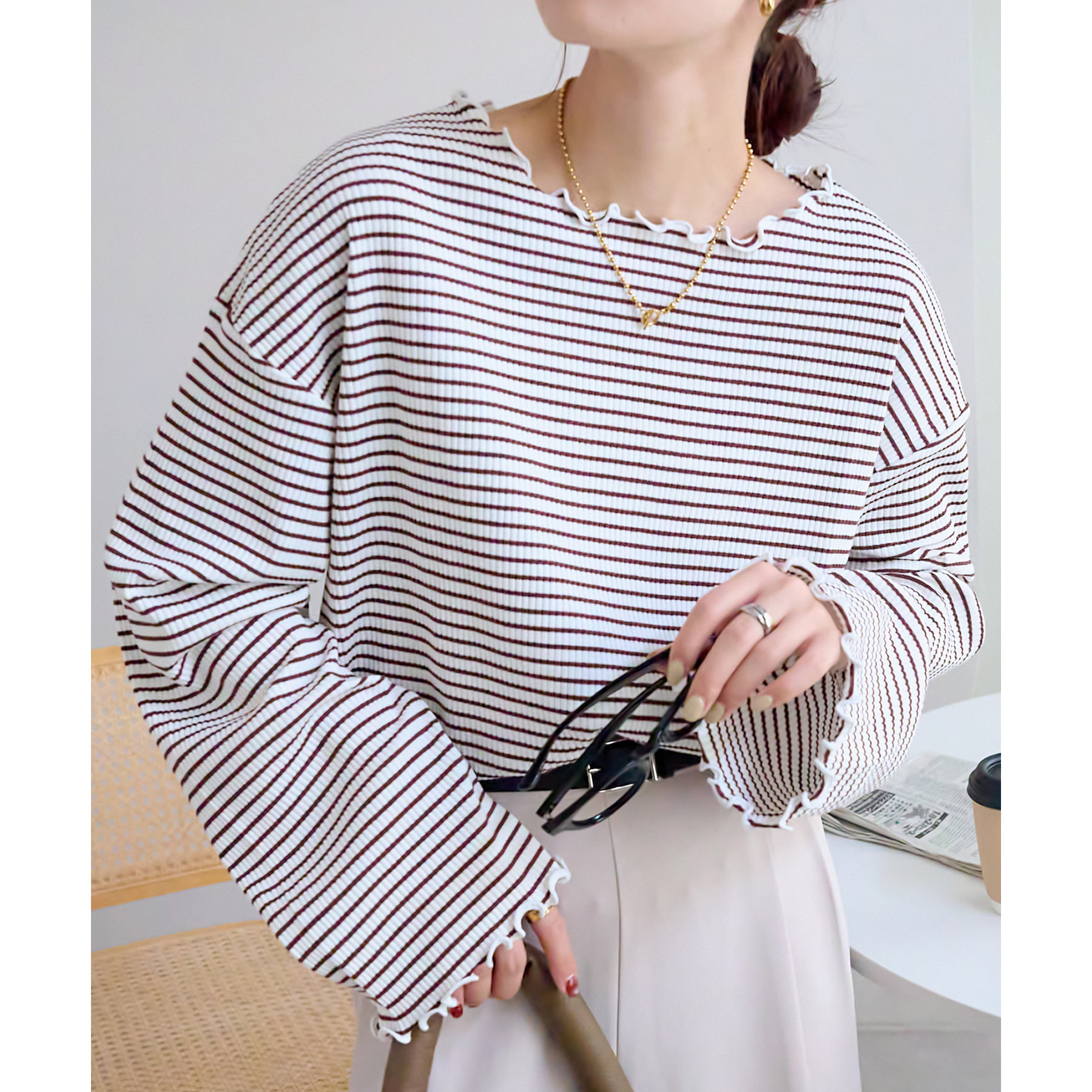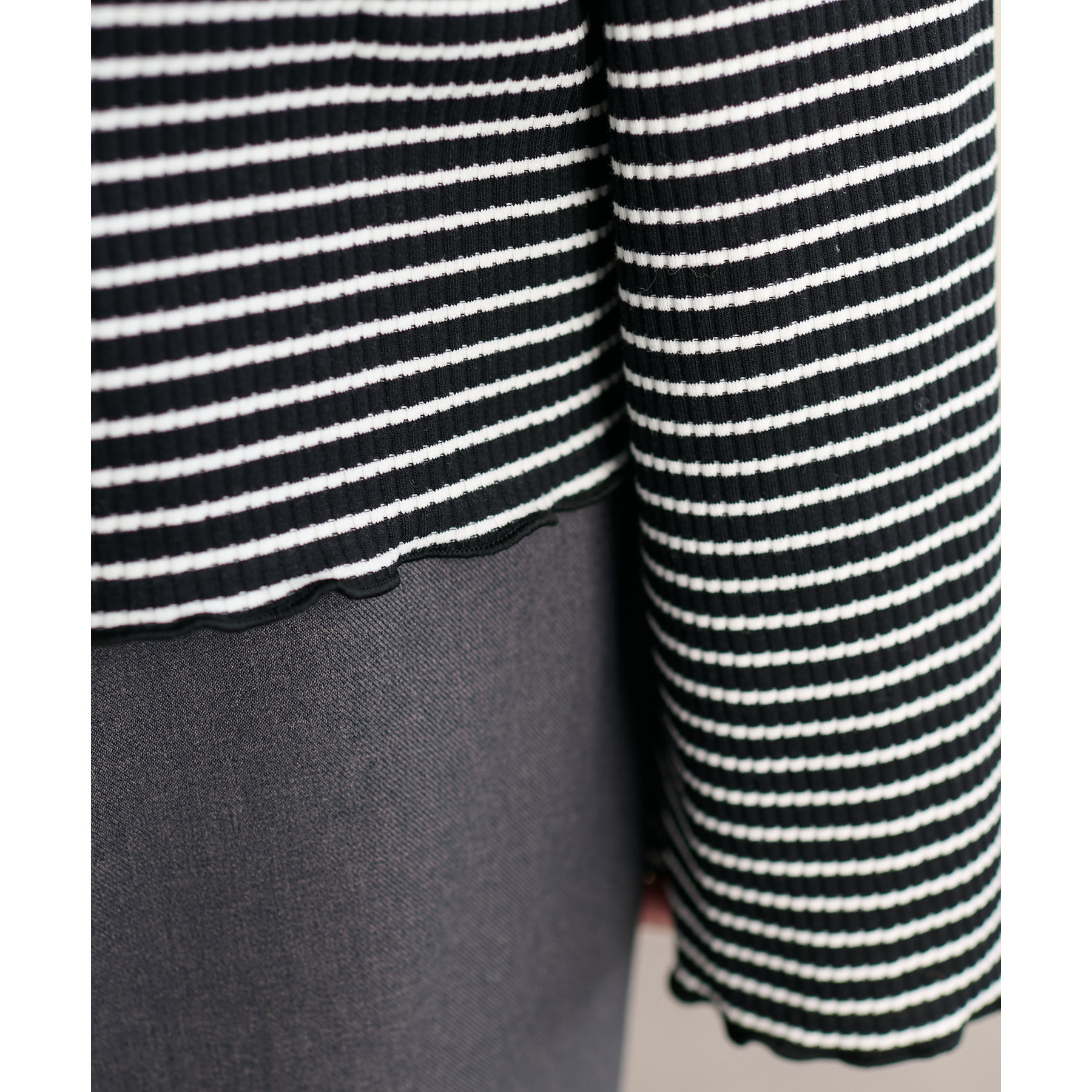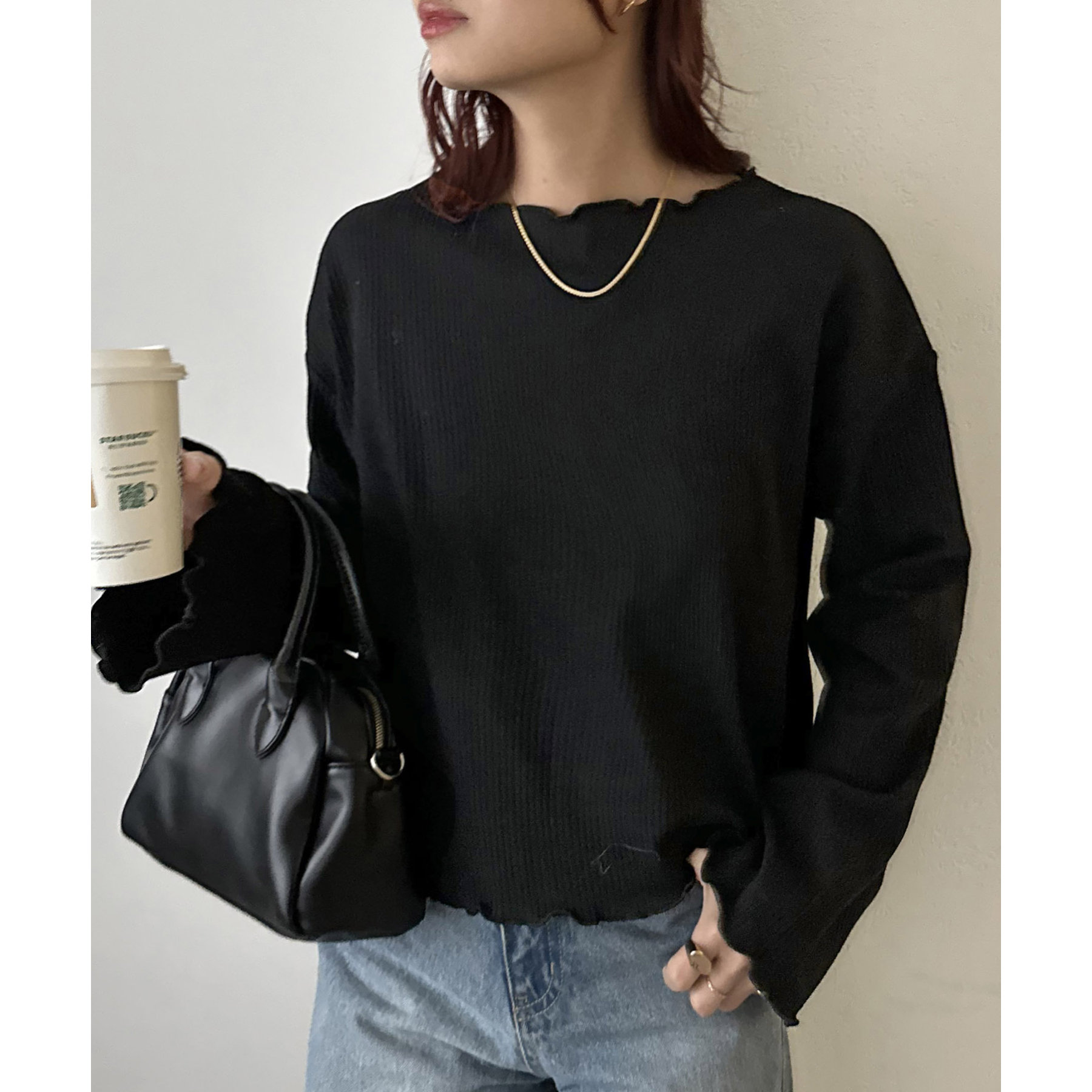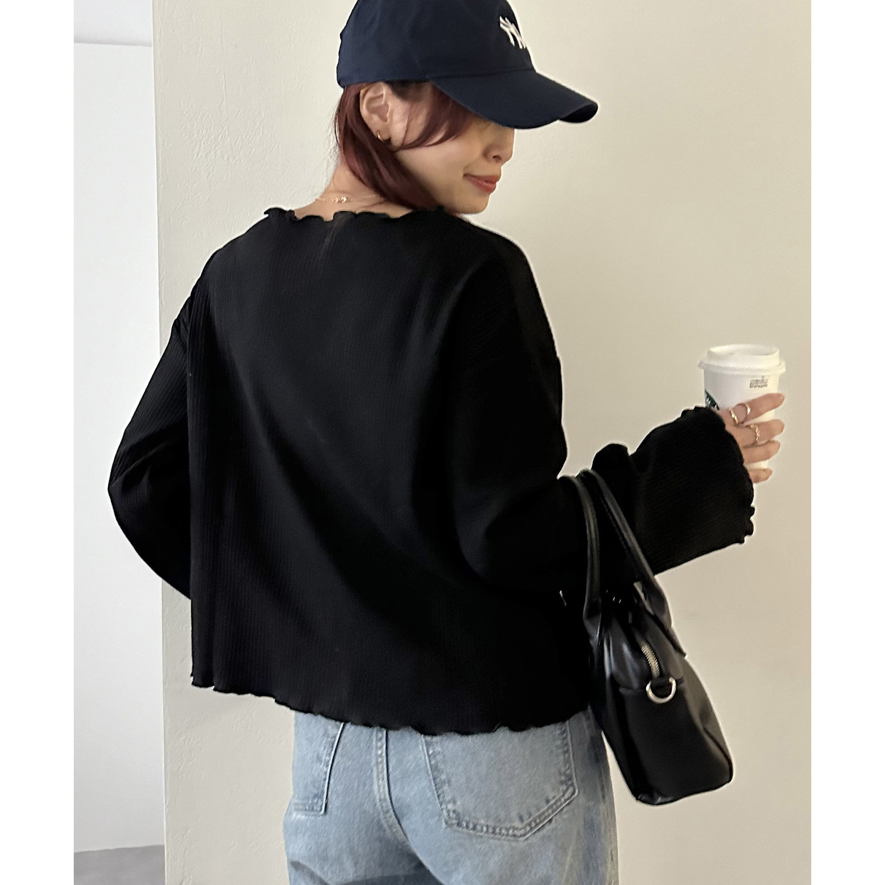 ・袖口・裾口・首元のメローデザインがポイントのリブトップス