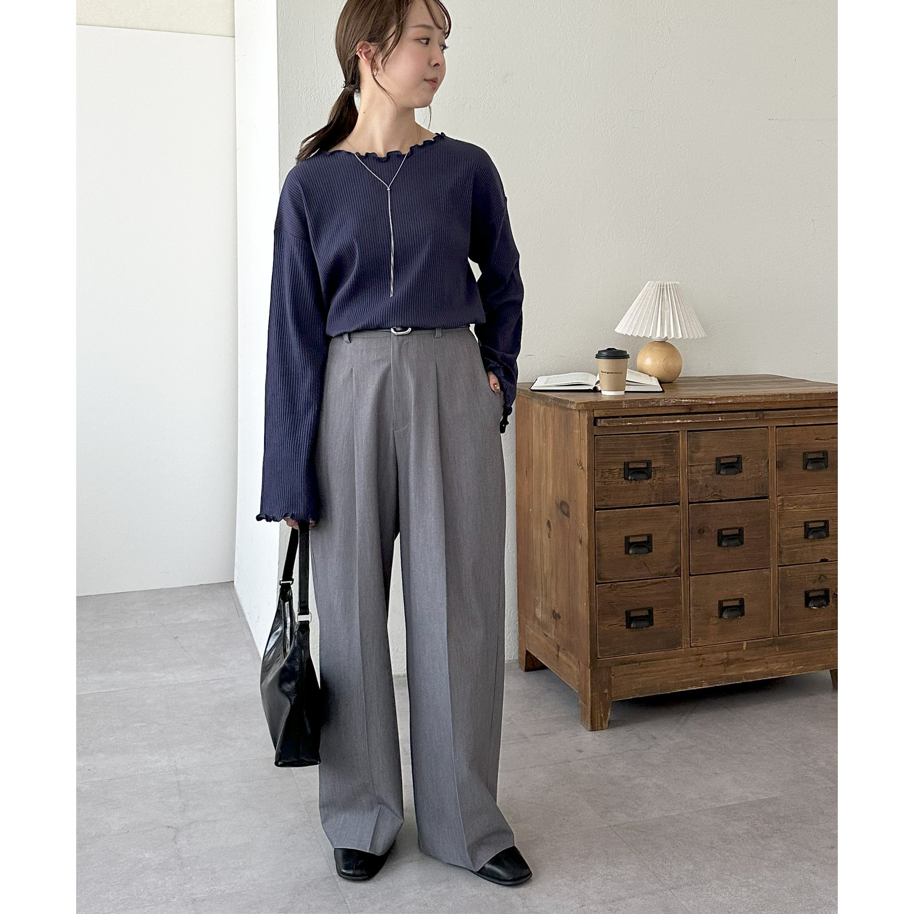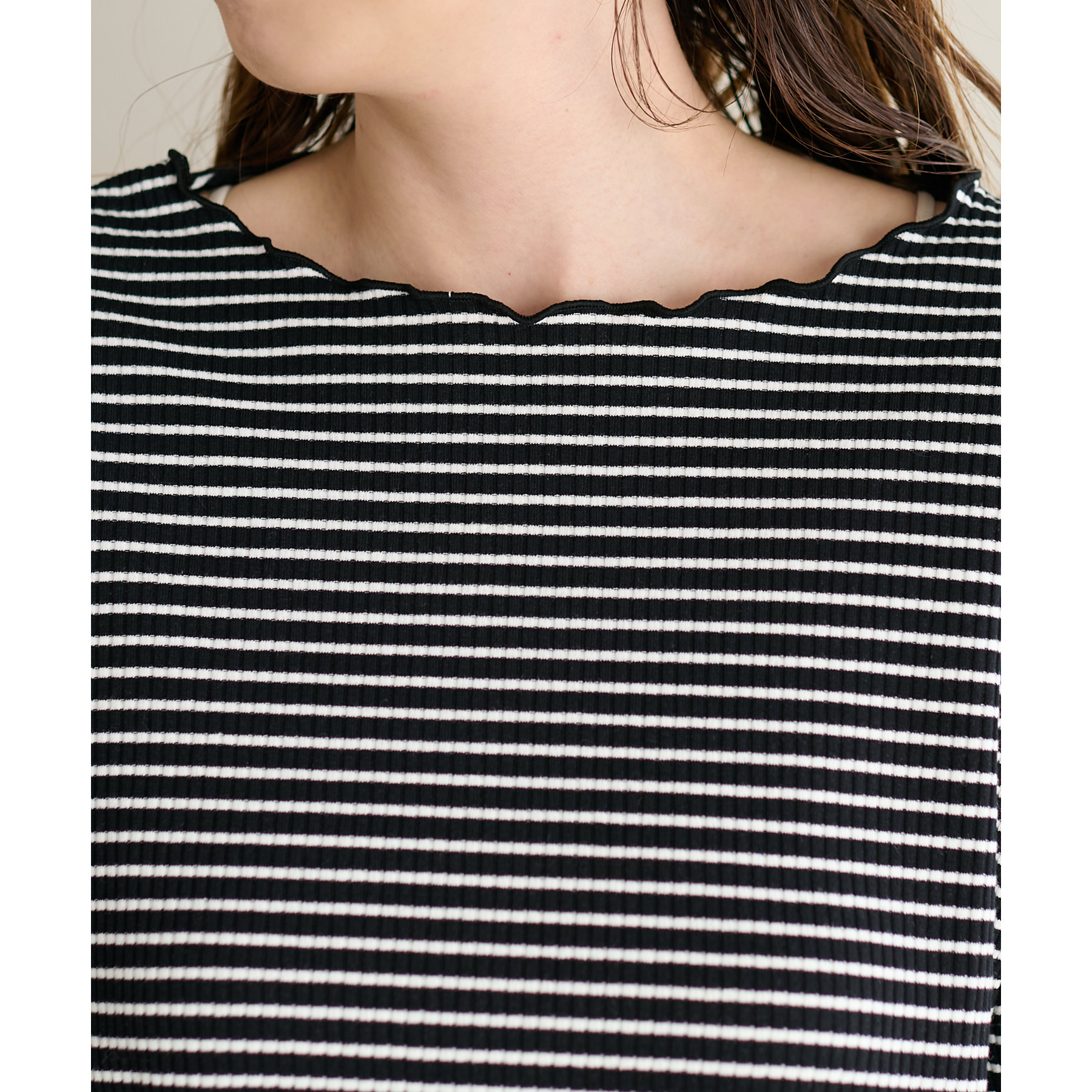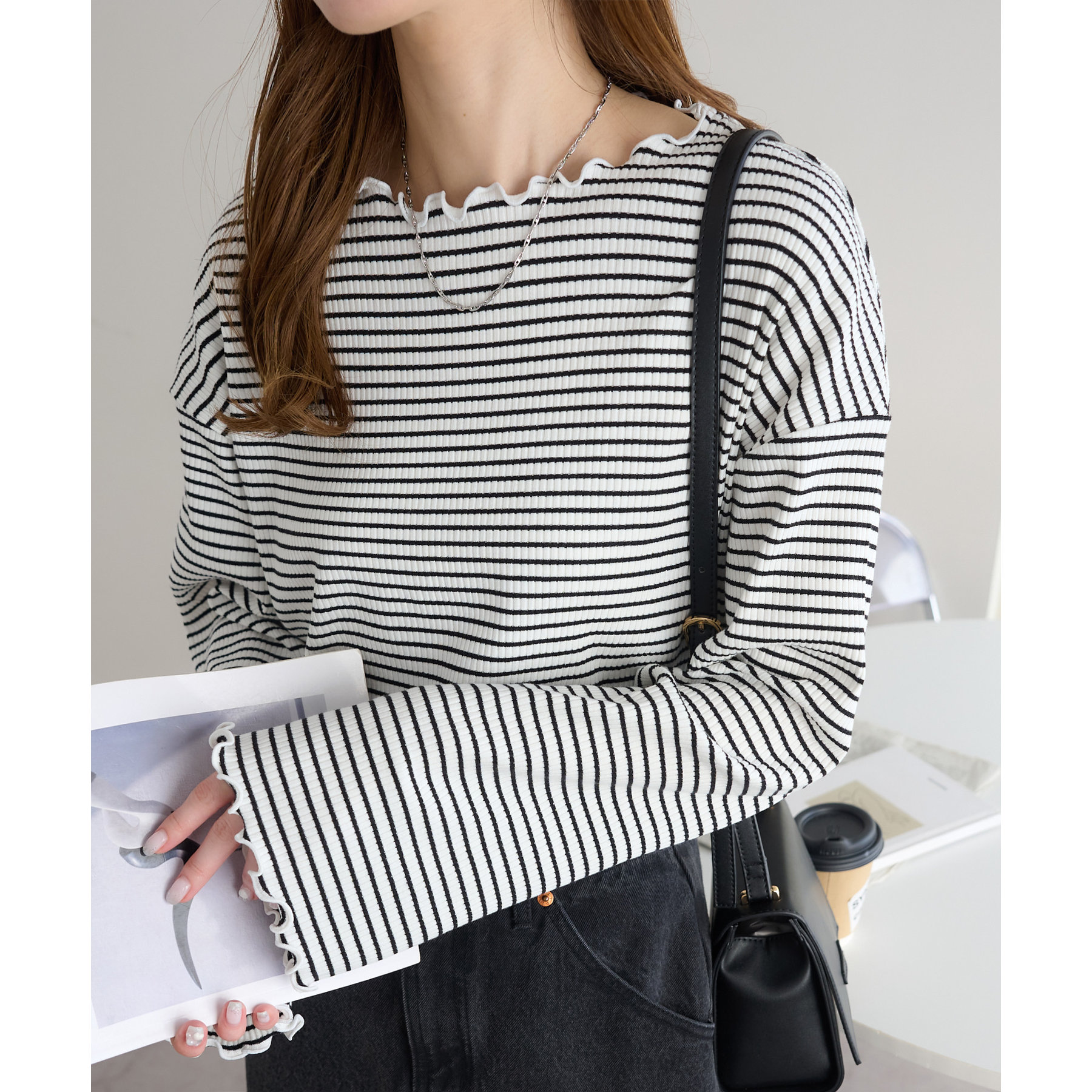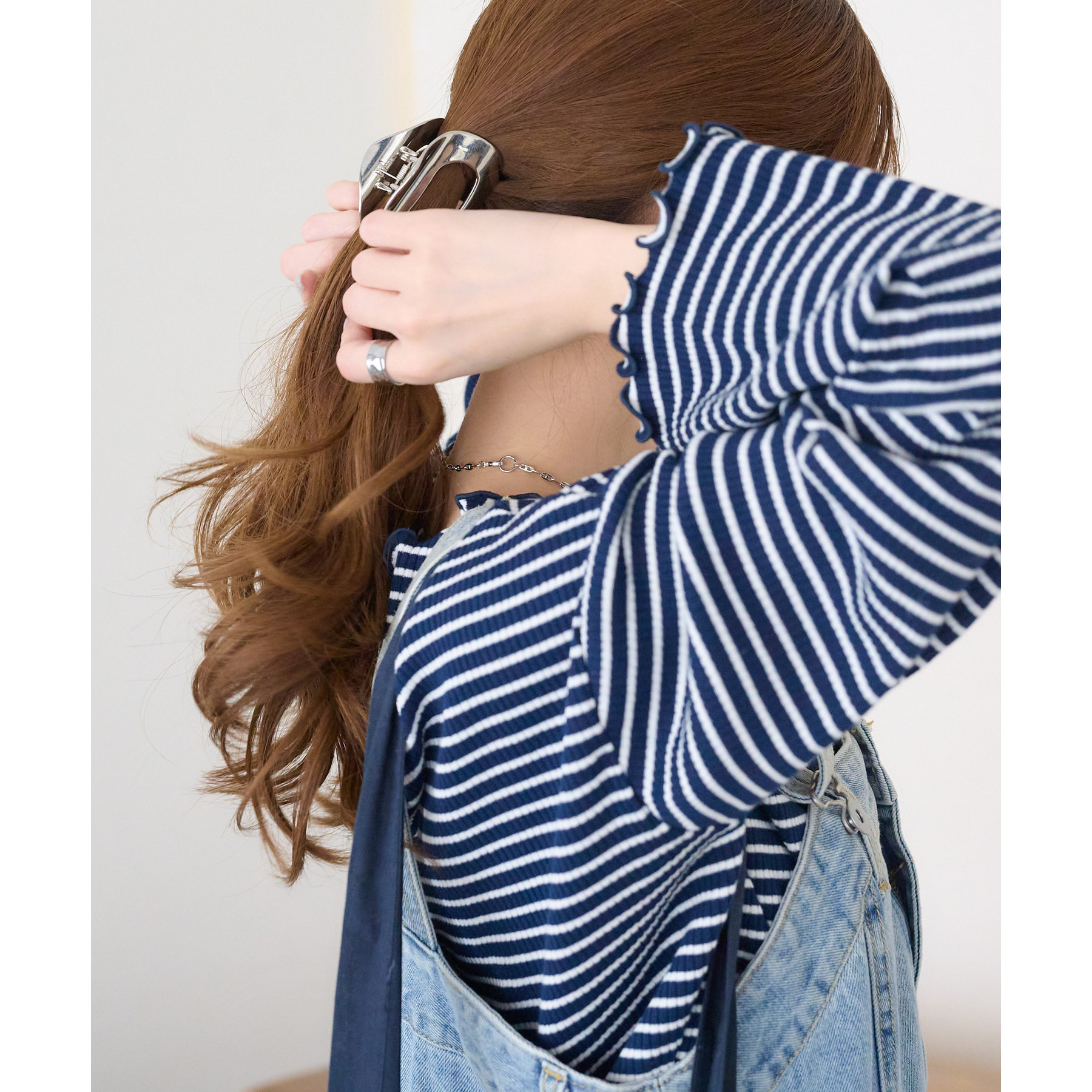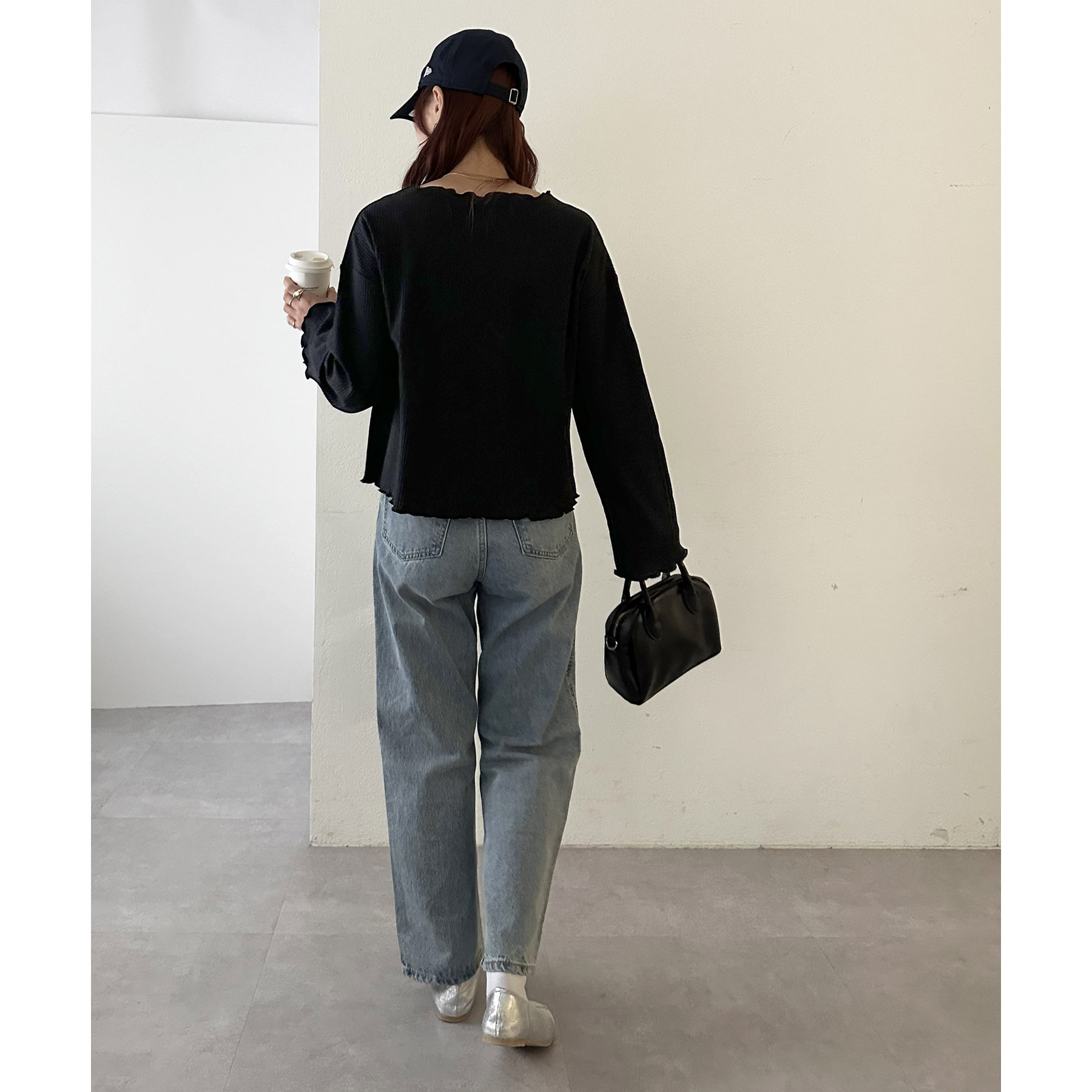 ・袖口・裾口・首元のメローデザインがポイントのリブトップス