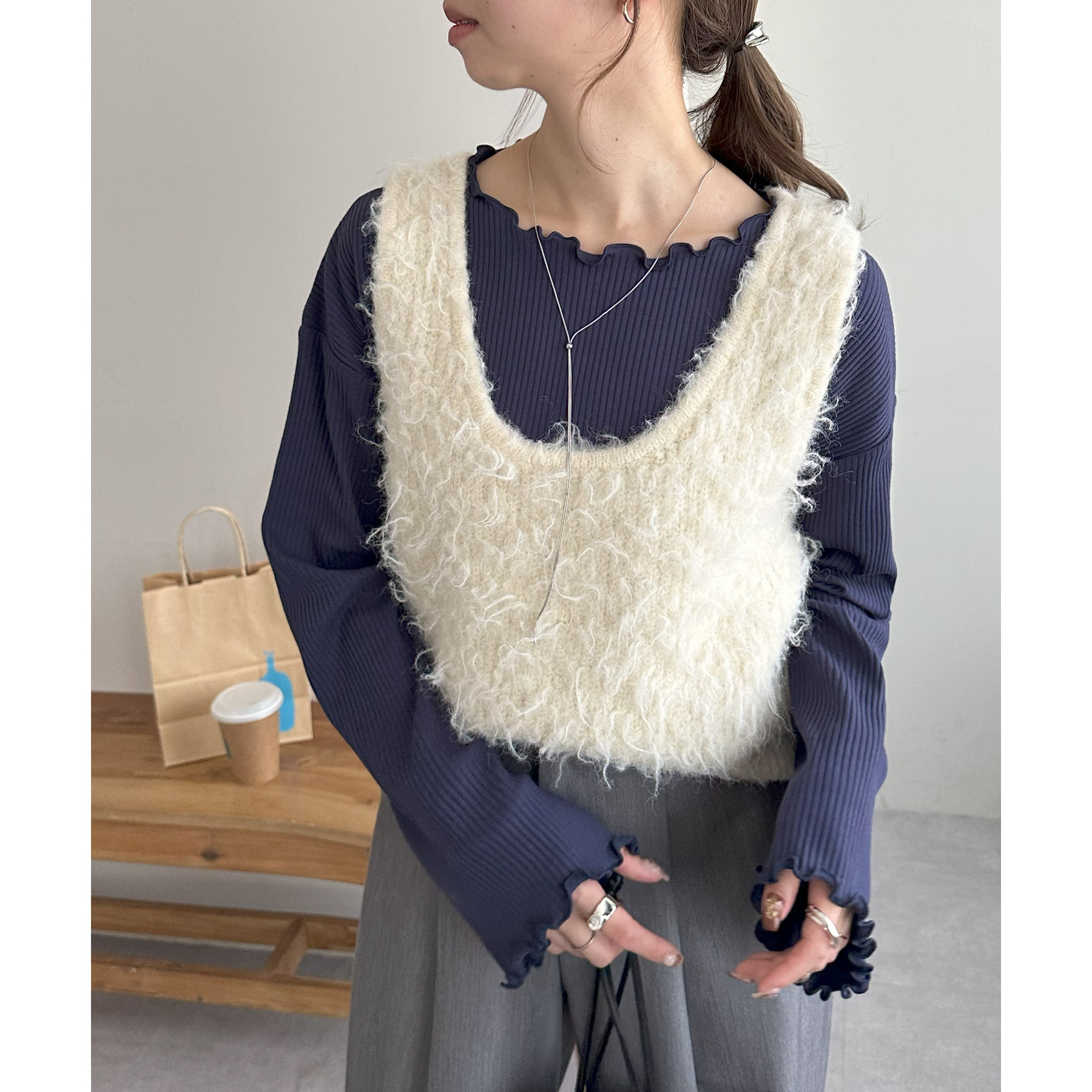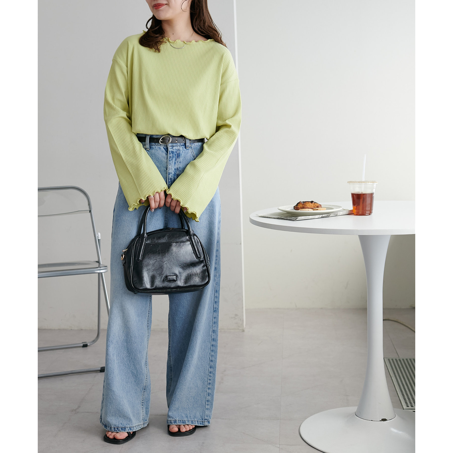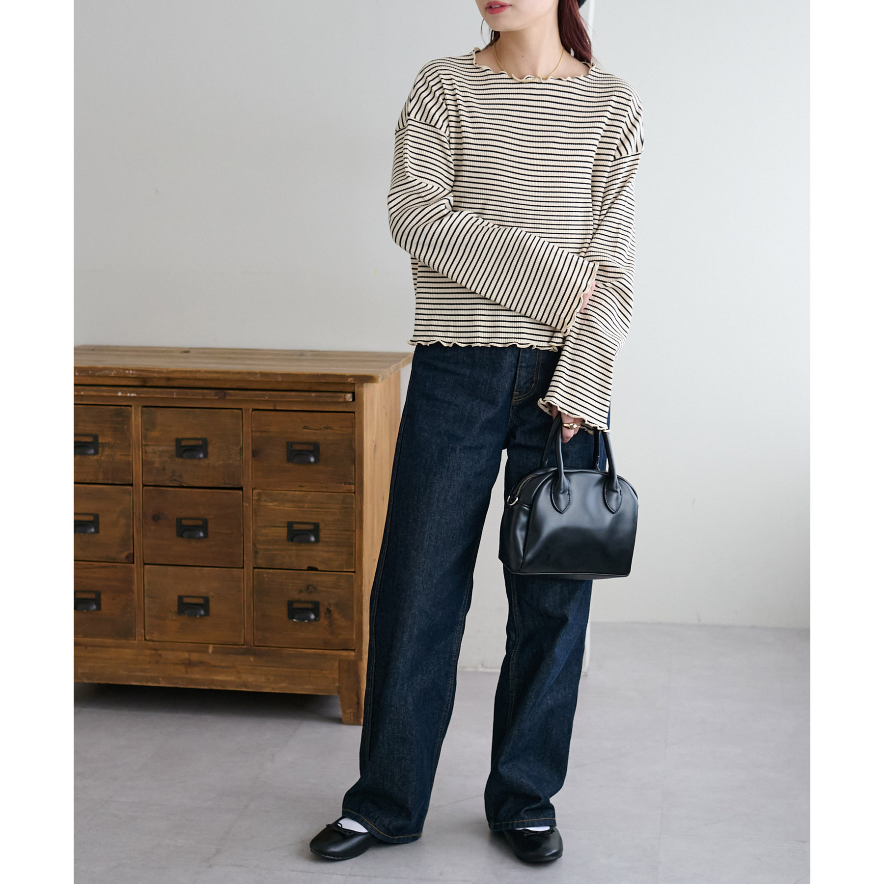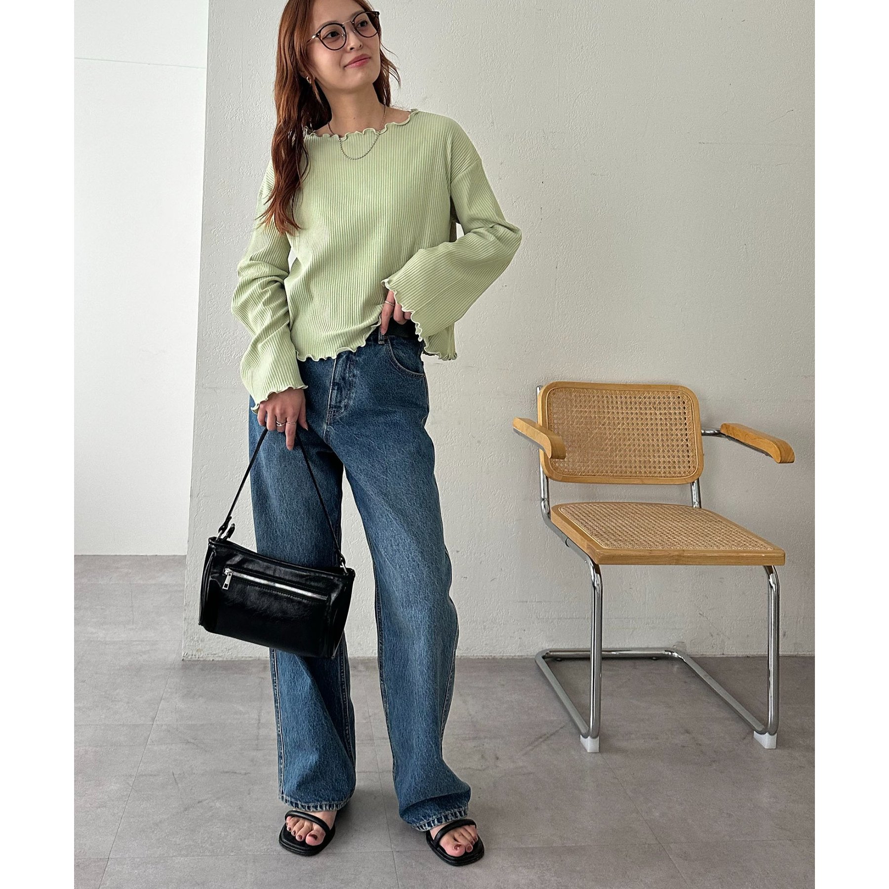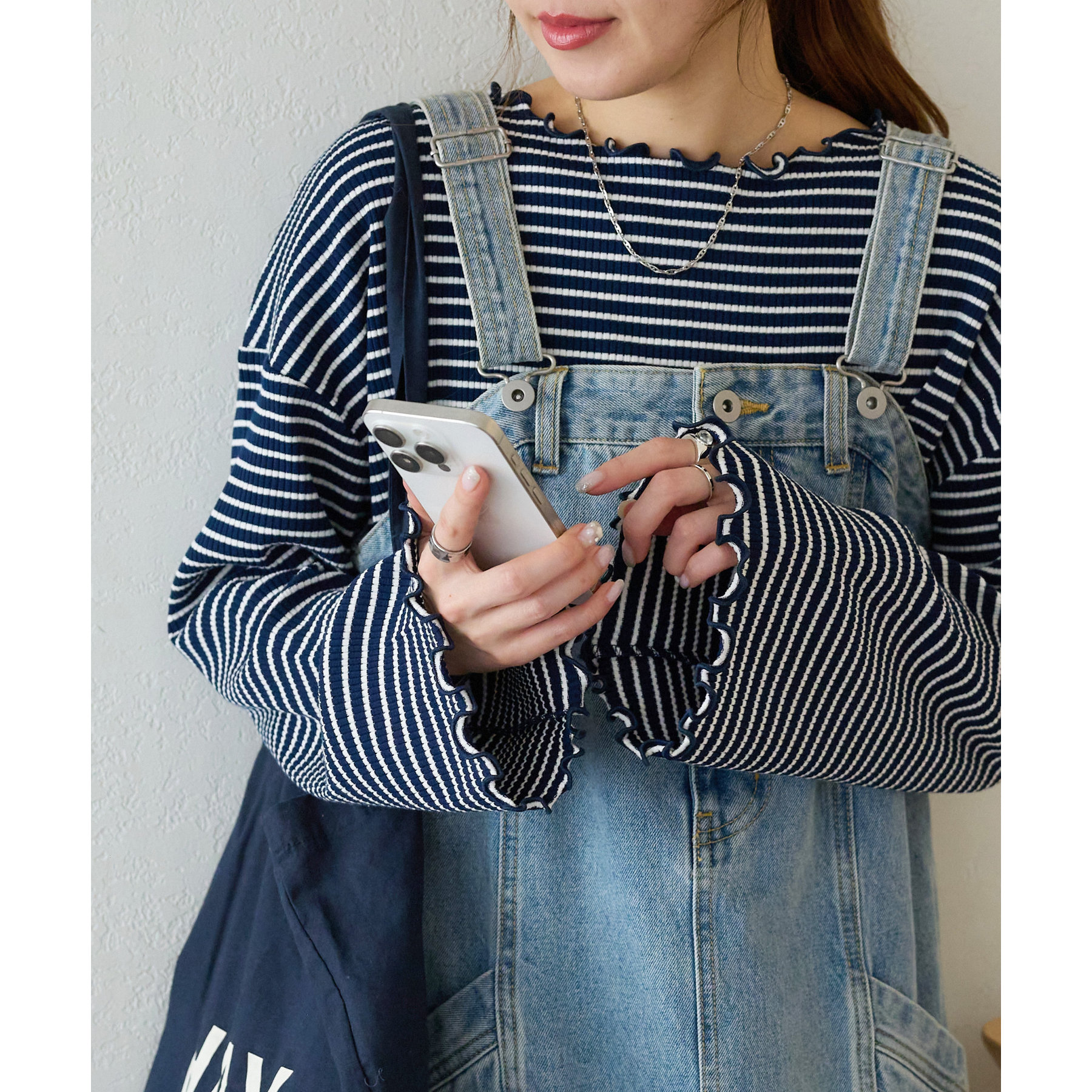 ・袖口・裾口・首元のメローデザインがポイントのリブトップス