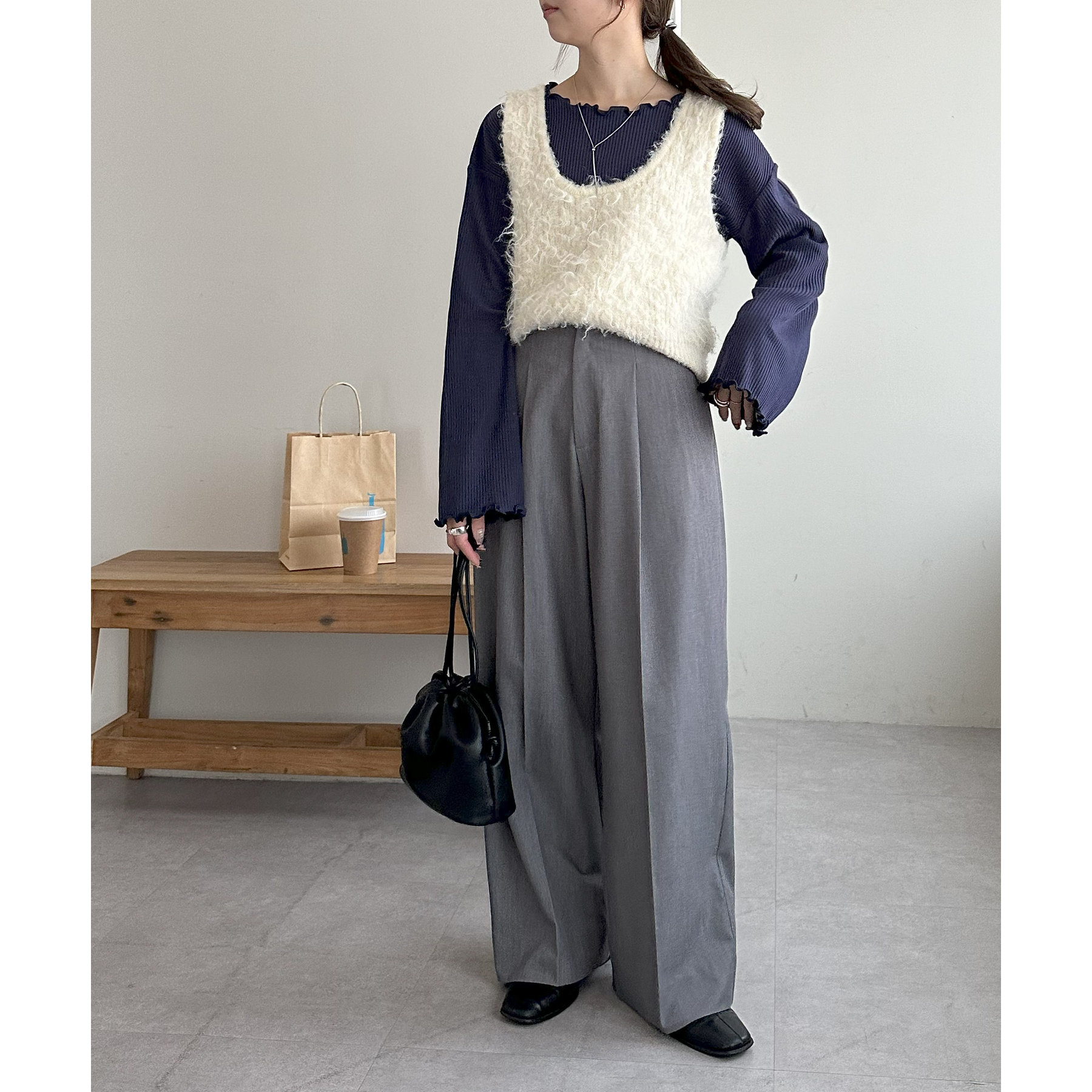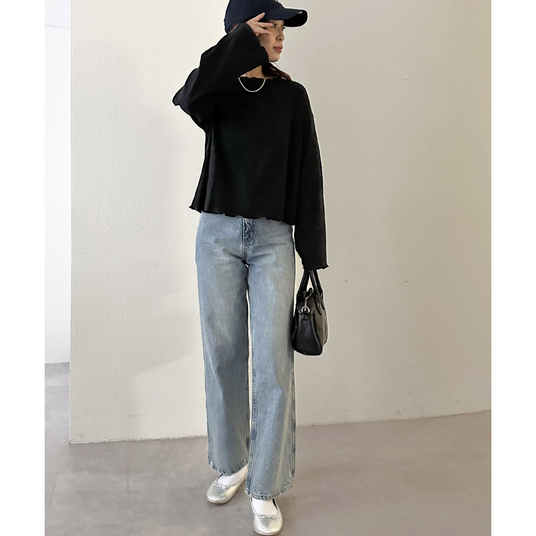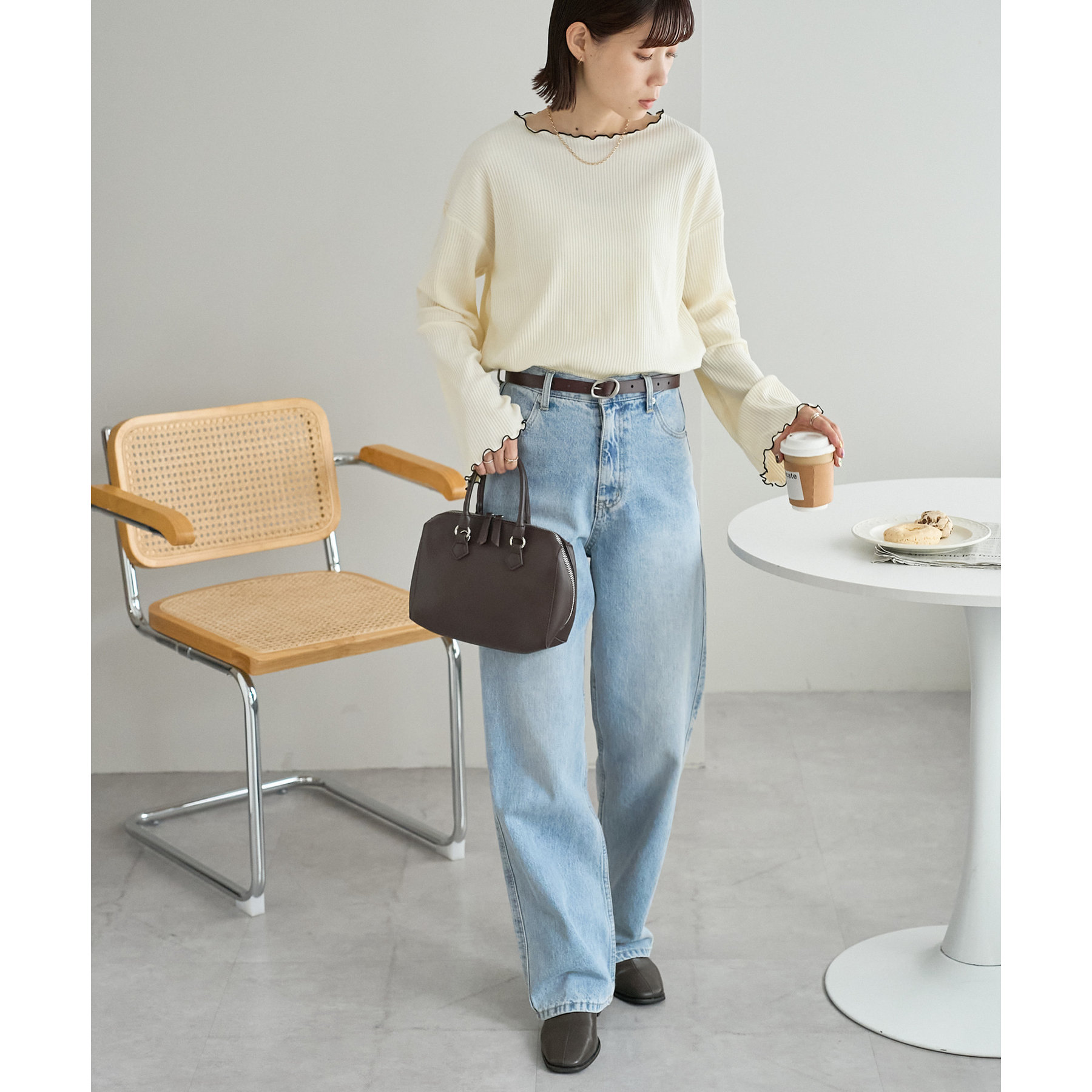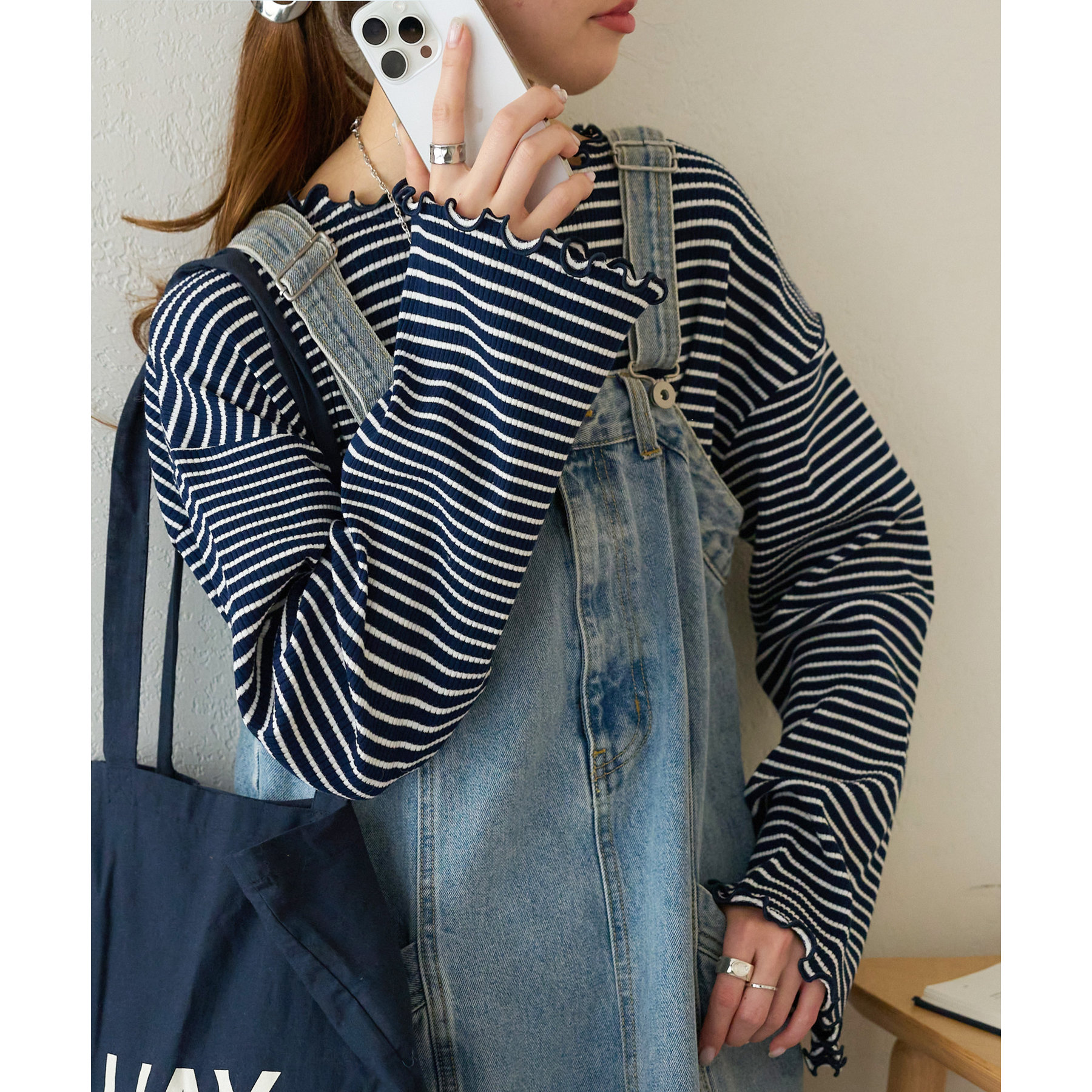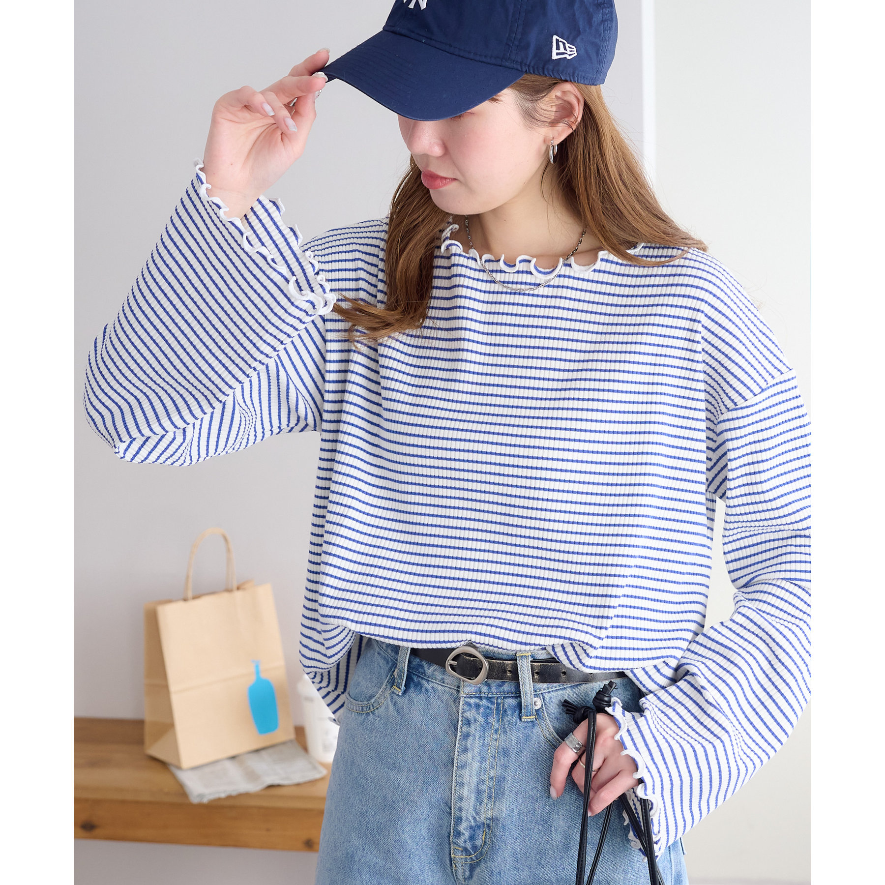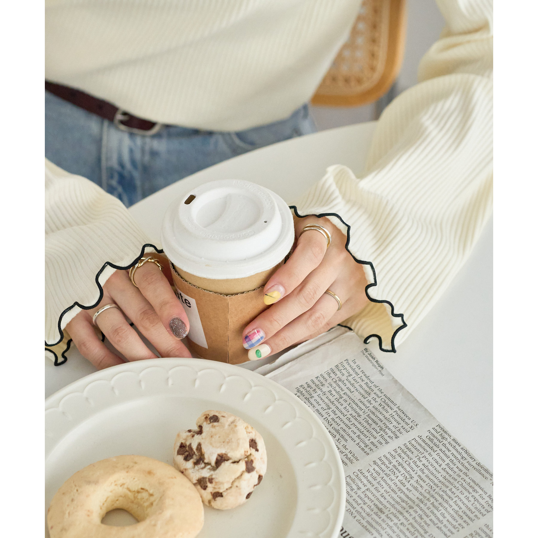 ・袖口・裾口・首元のメローデザインがポイントのリブトップス