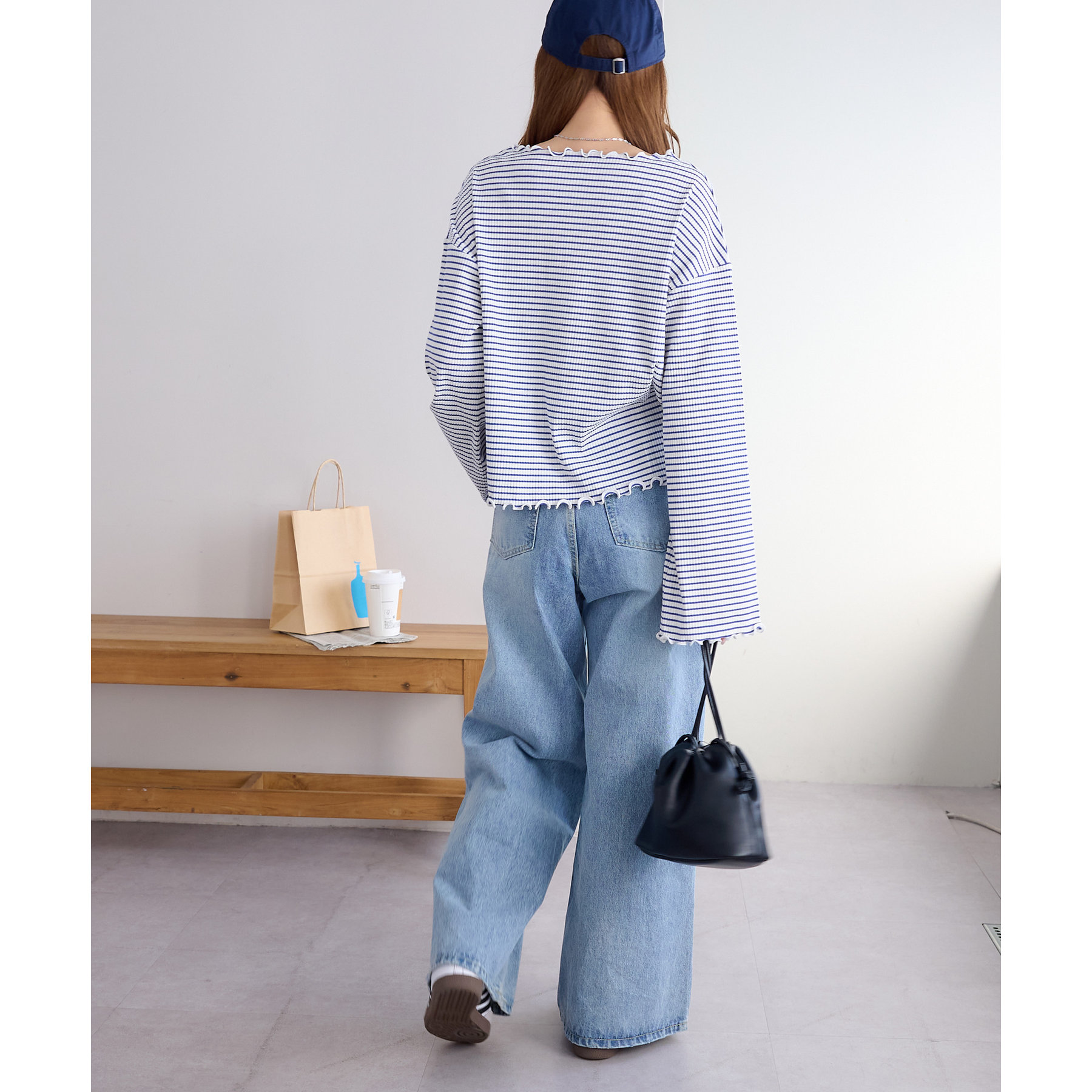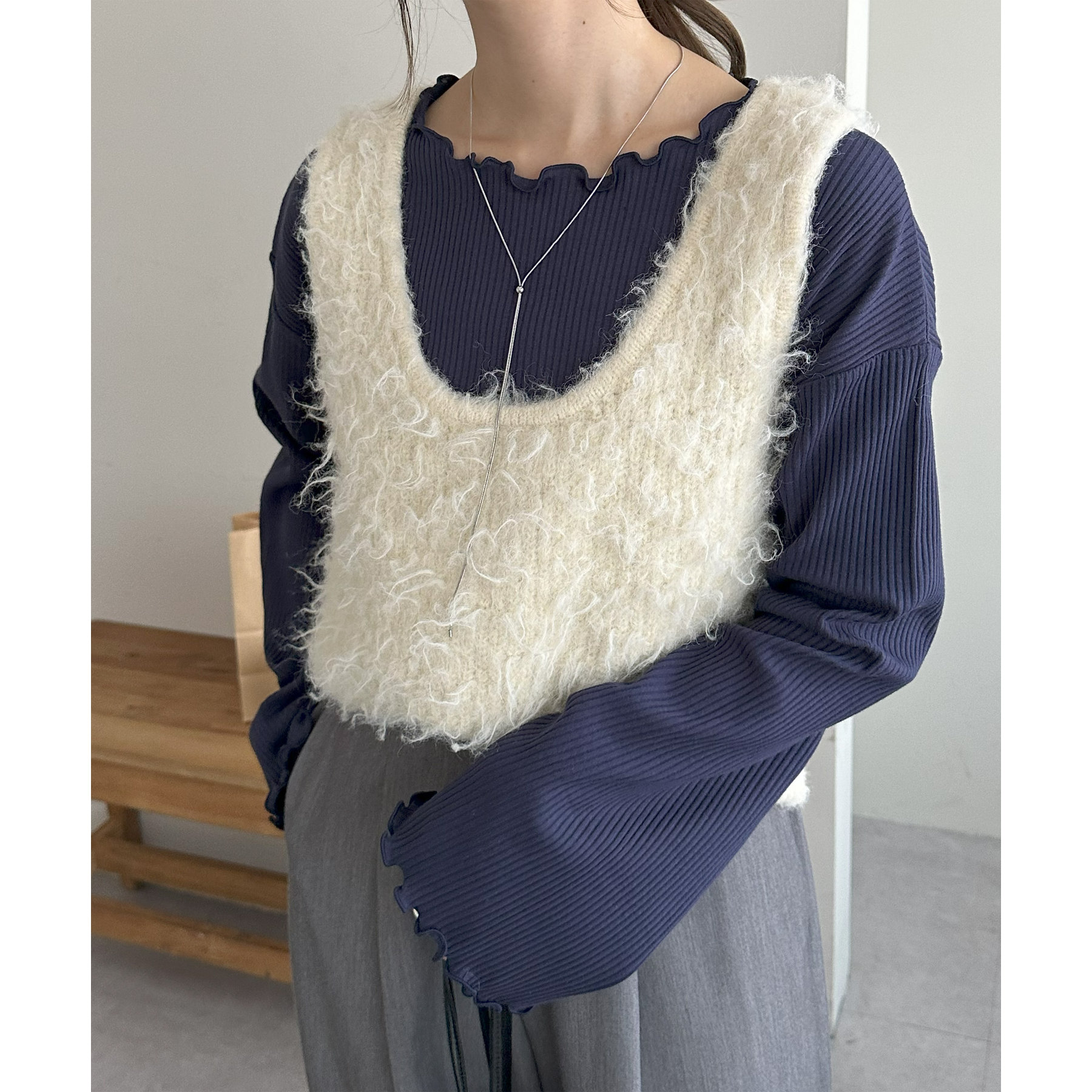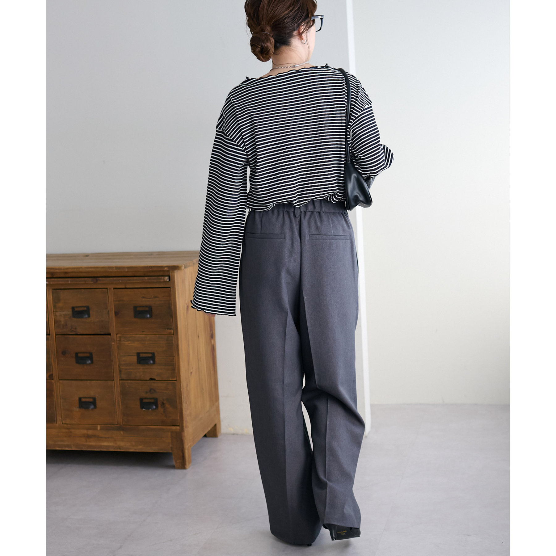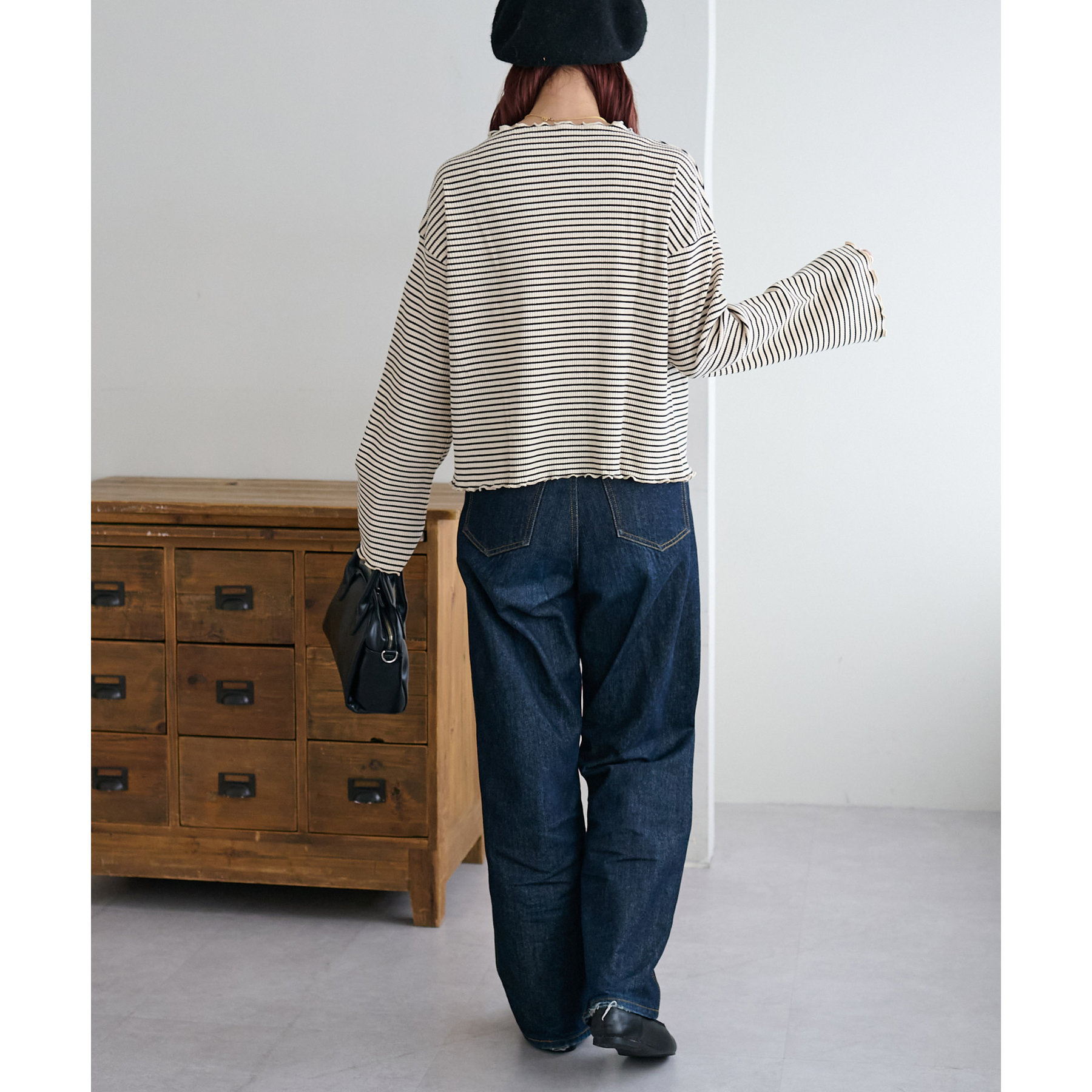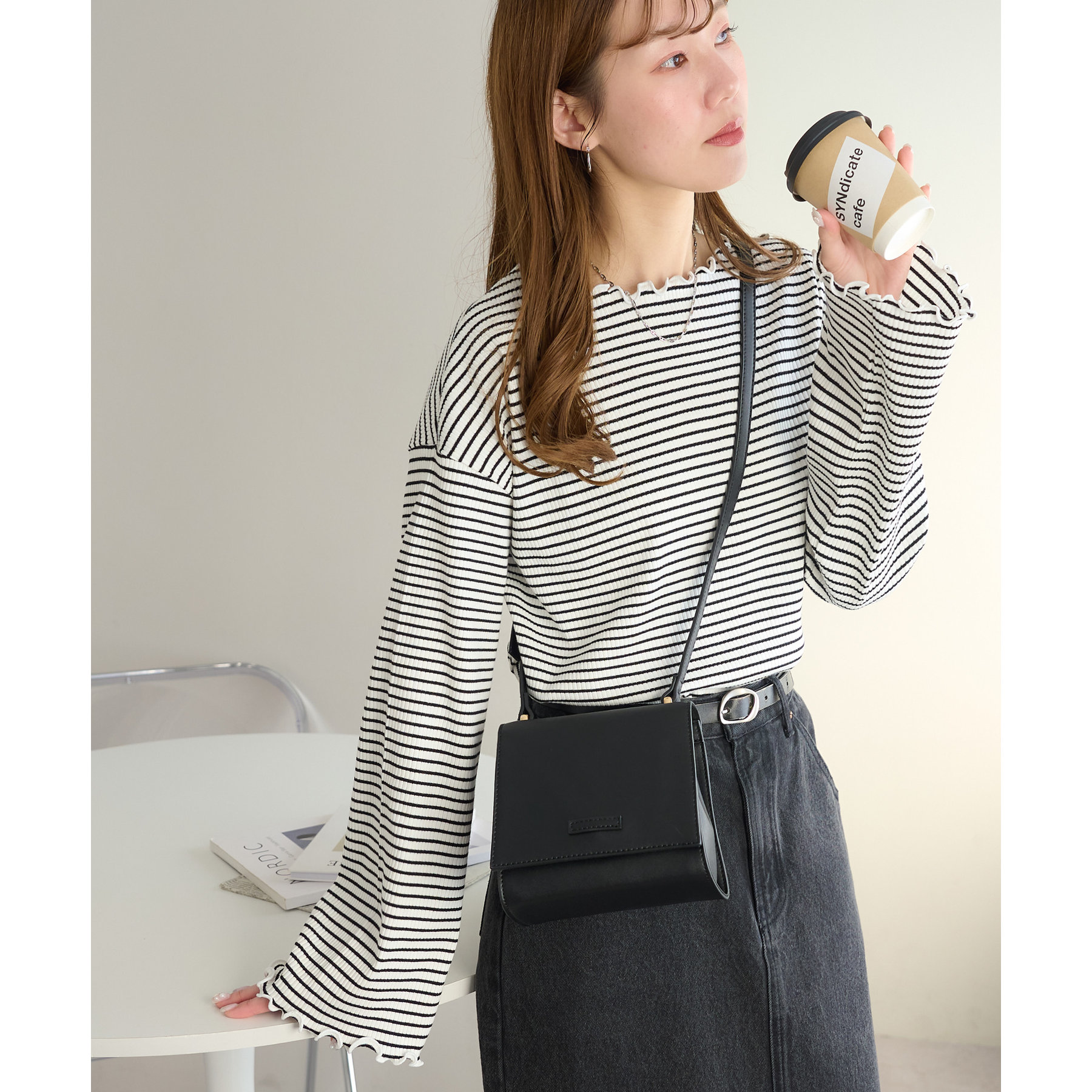 ・袖口・裾口・首元のメローデザインがポイントのリブトップス