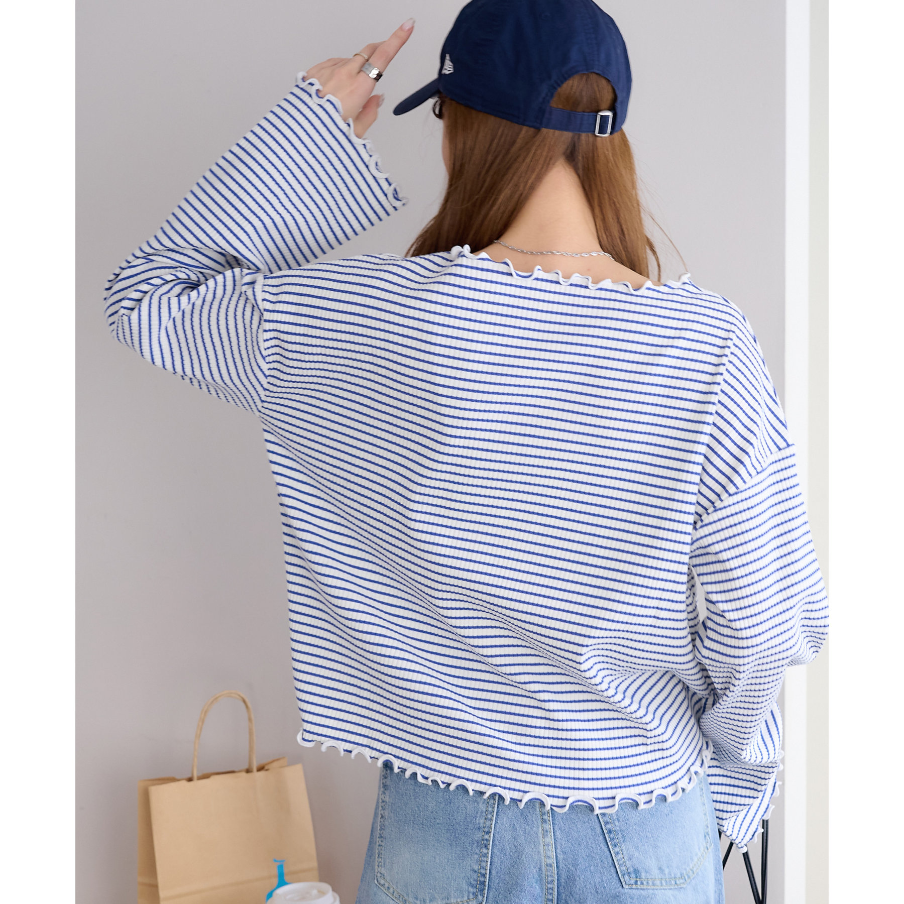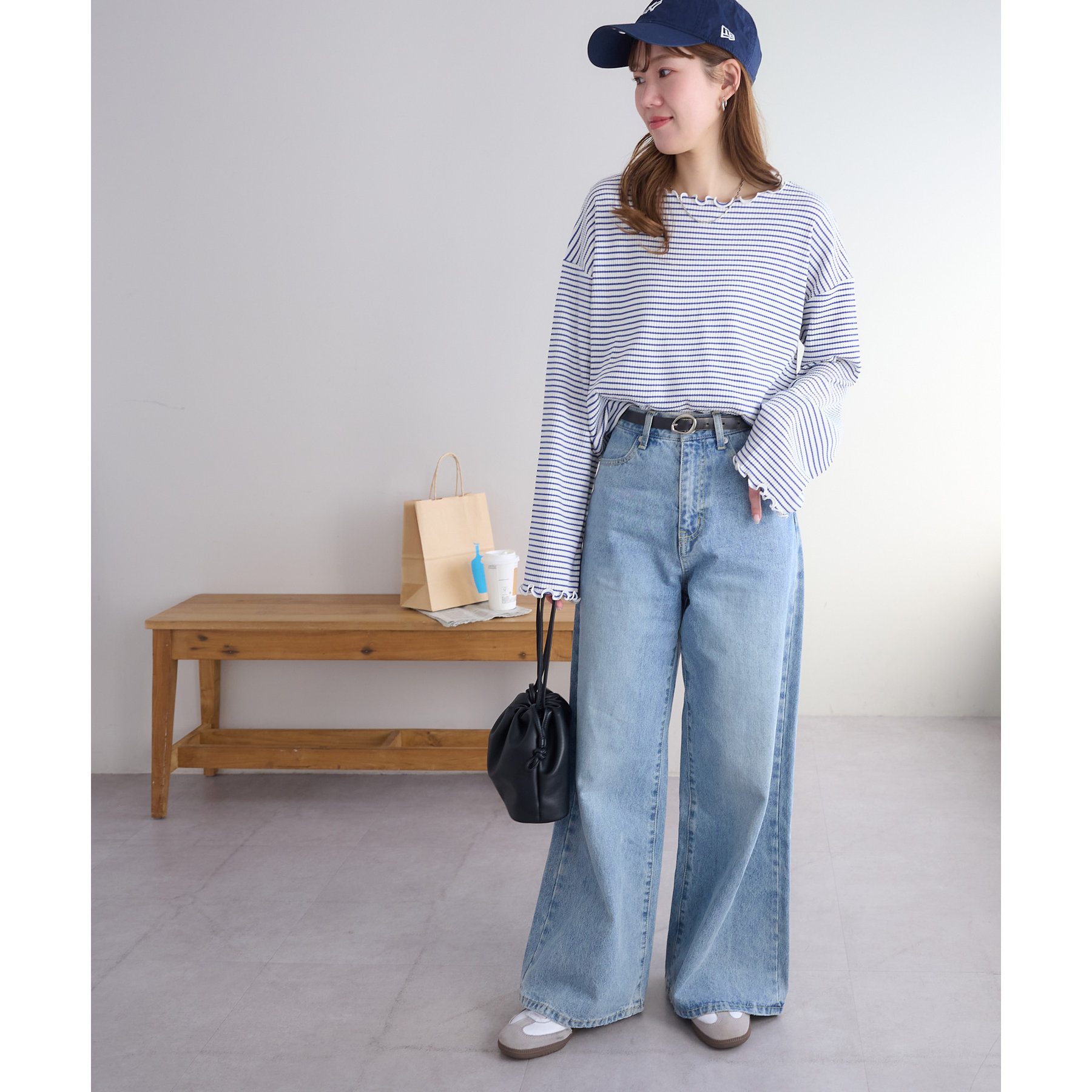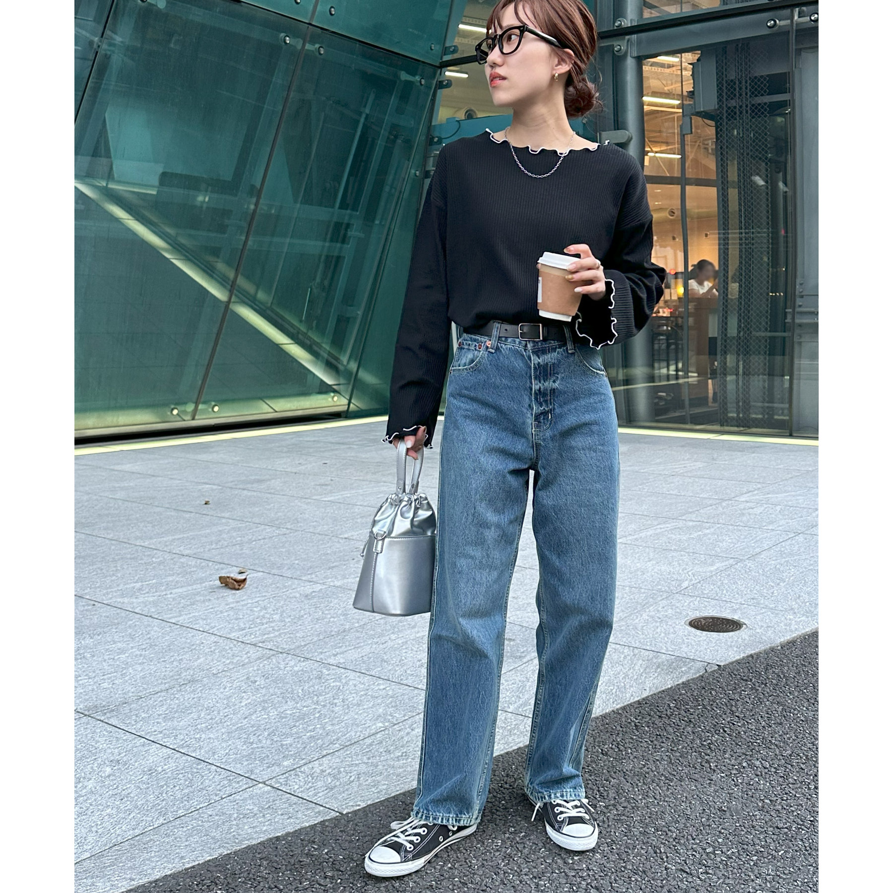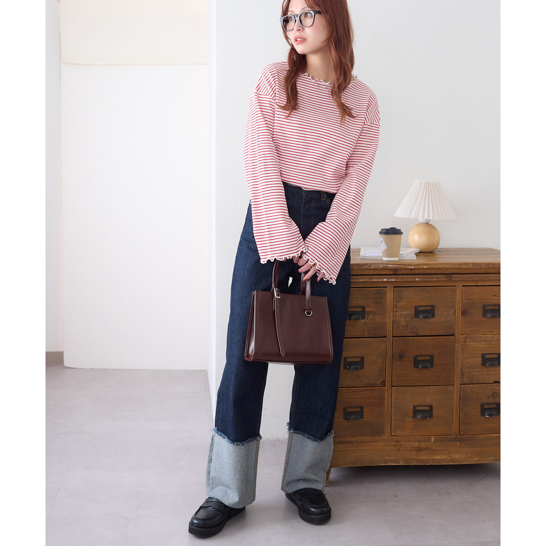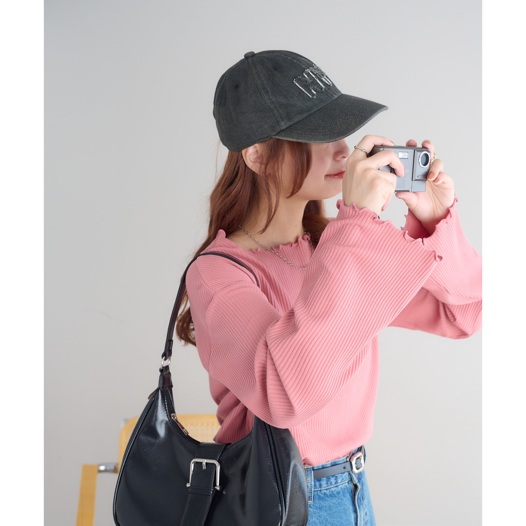 ・袖口・裾口・首元のメローデザインがポイントのリブトップス