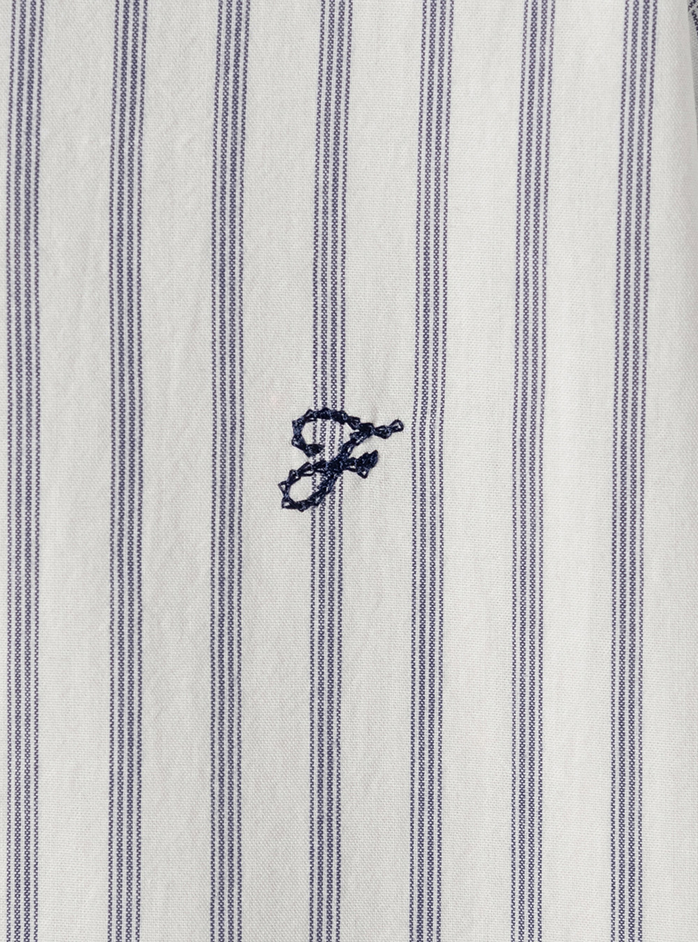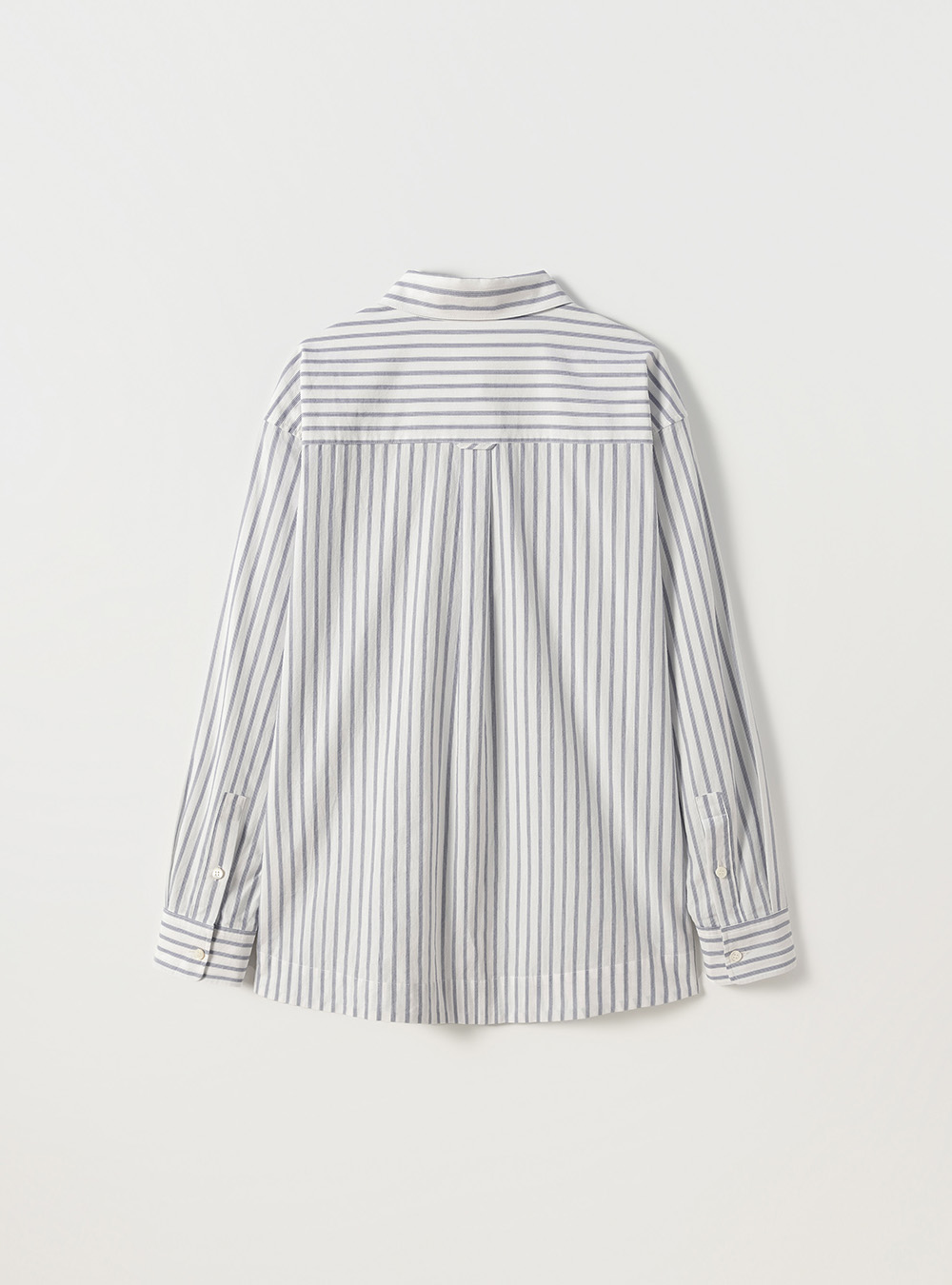 落ち着いたネイビーストライプ柄で、すっきりと整ったムードの Aven Cotton Stripe Shirts(アベン コットン ストライプ シャツ)です。
