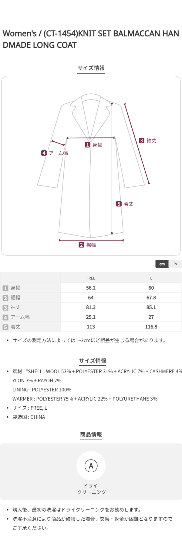 (CT-1454)KNIT SET BALMACCAN HANDMADE LONG COAT
