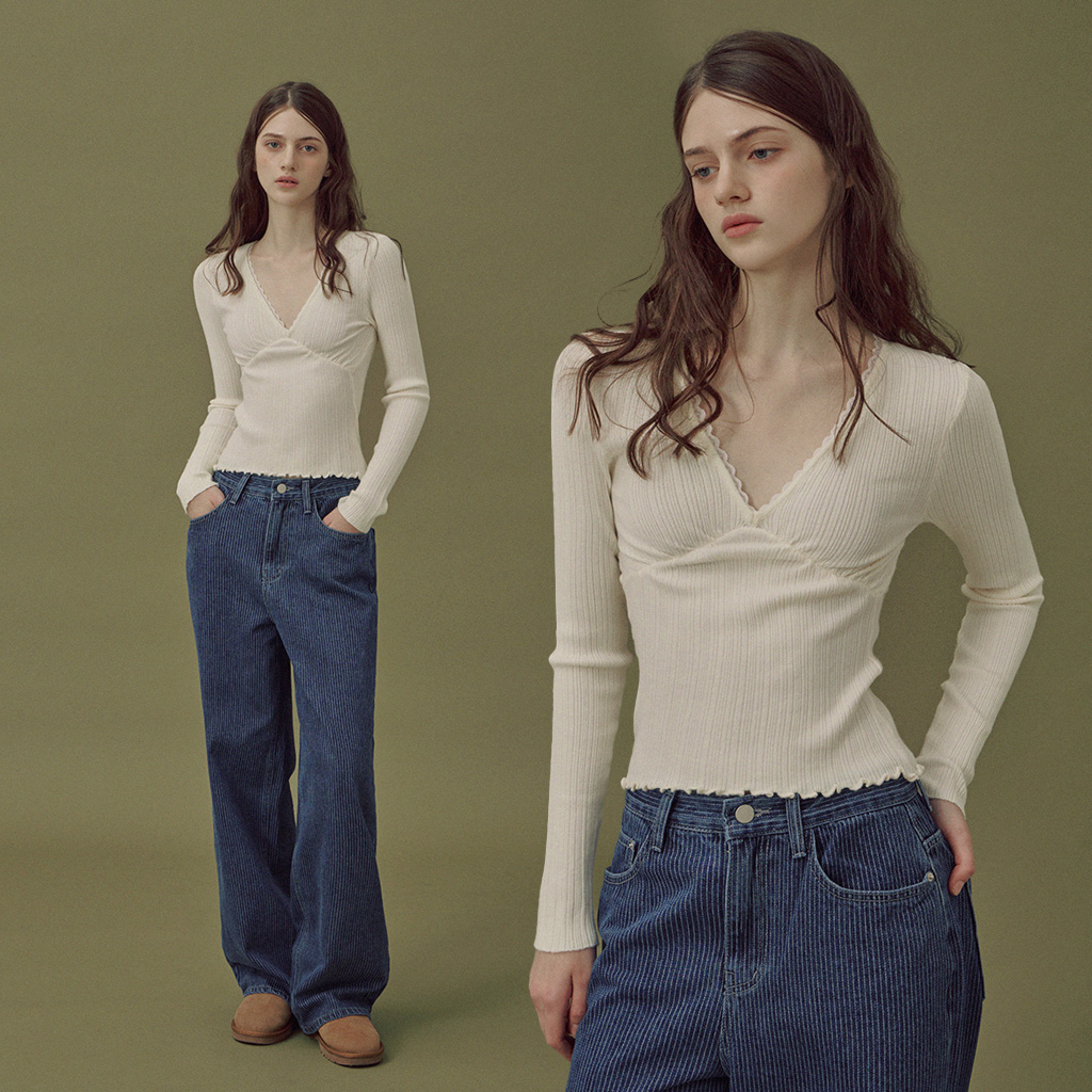 [Influencer pick] Rumble Wool V-Neck Lace Knit