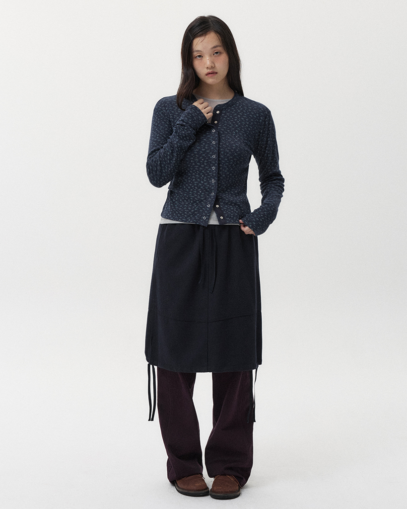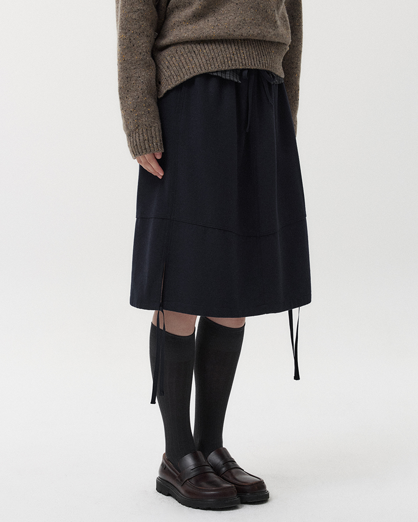 STITCH BANDING MIDI SKIRT, NAVY