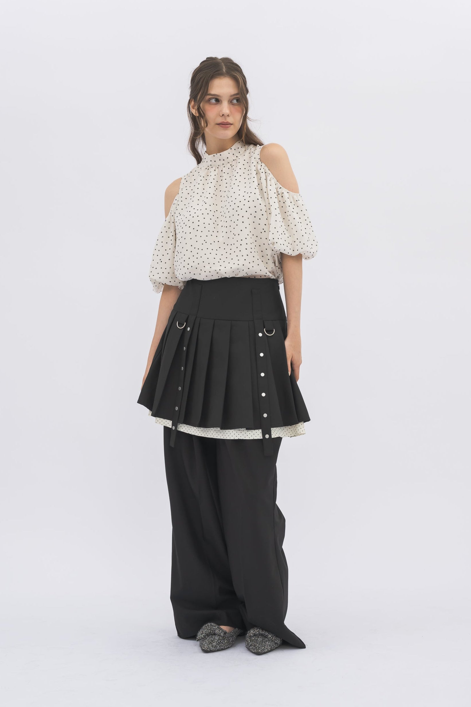 ・動くたびに揺れるプリーツが軽やかでフェミニンな印象に