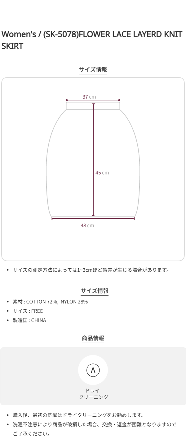 (SK-5078)FLOWER LACE LAYERD KNIT SKIRT