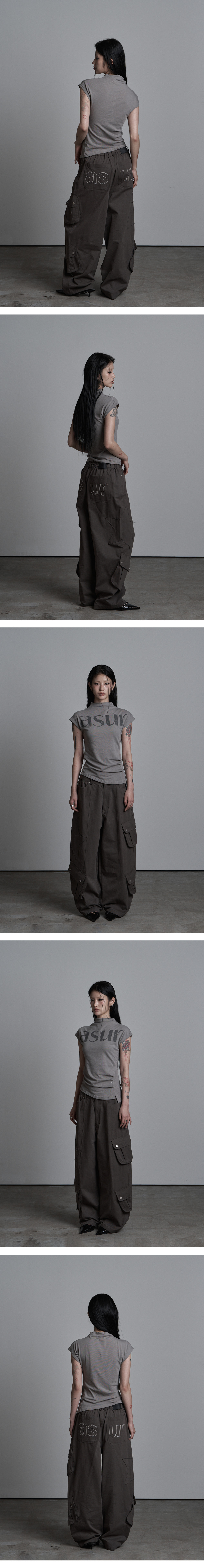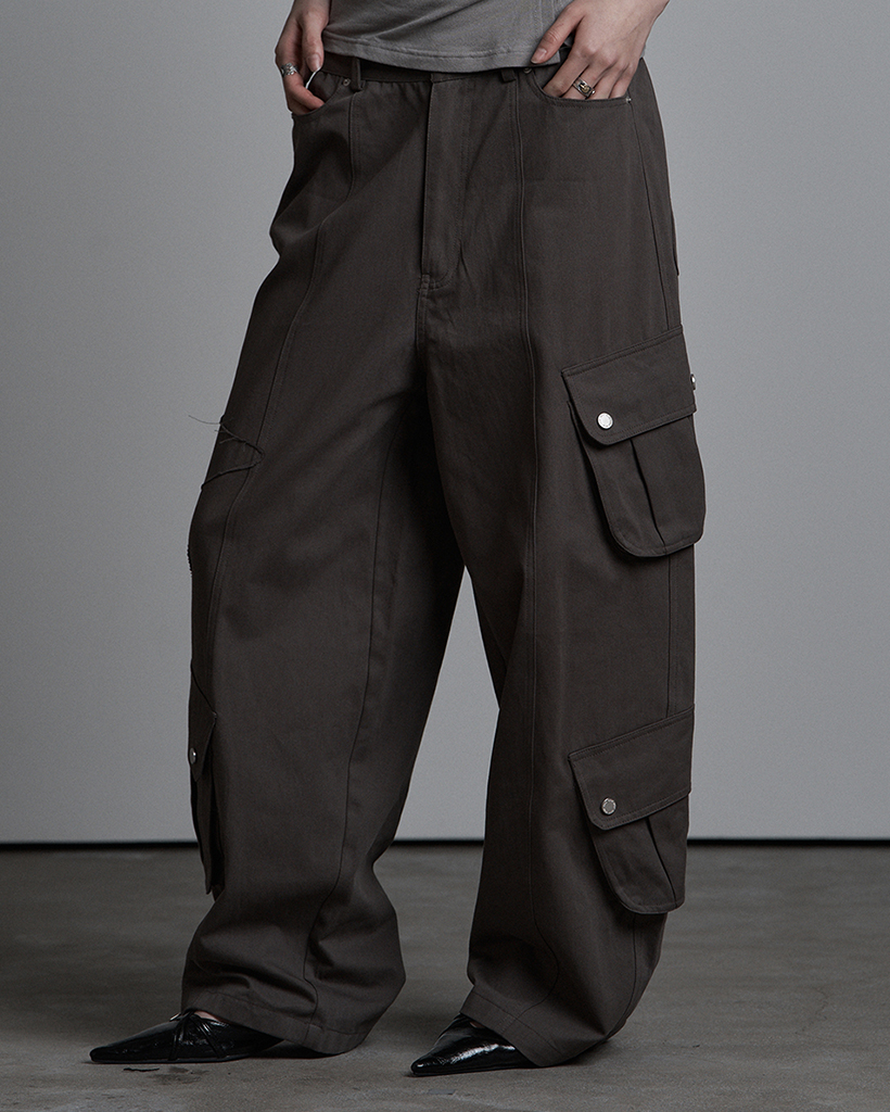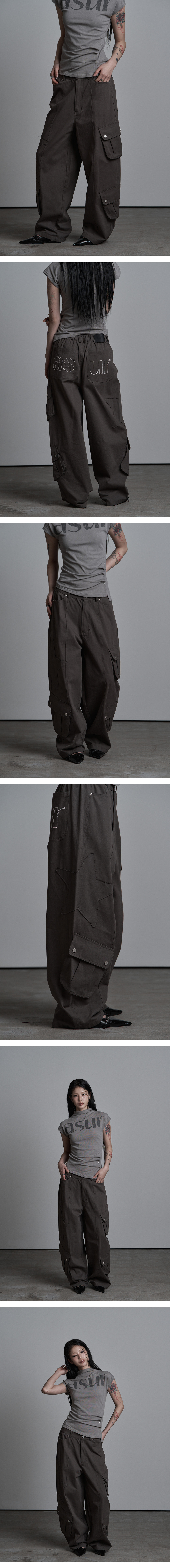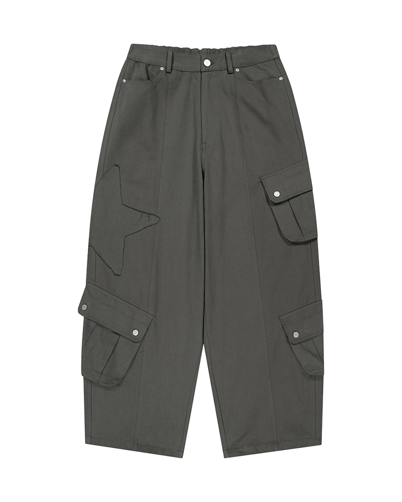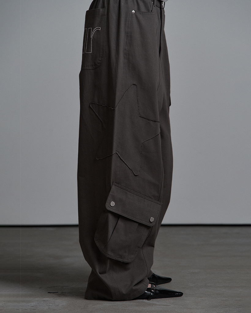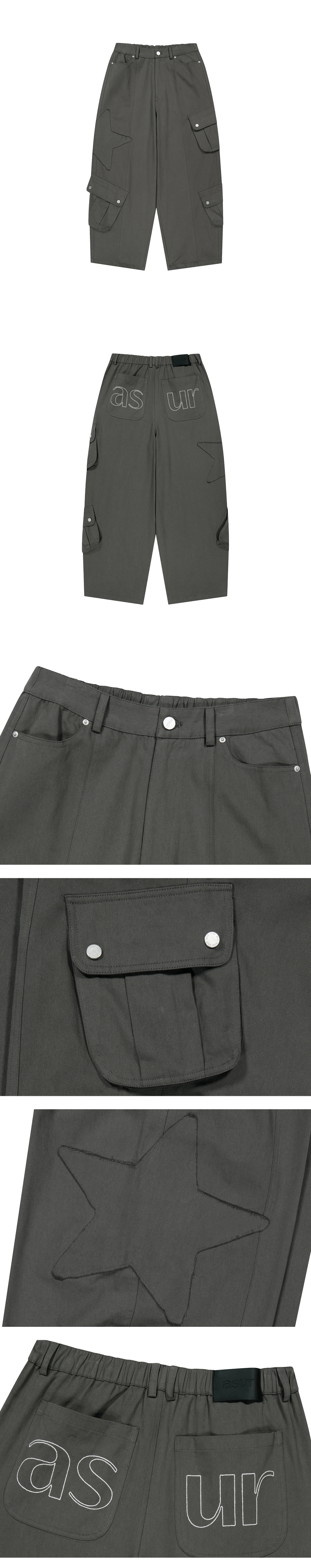 AU PATCHED POCKET COTTON PANTS CHARCOAL