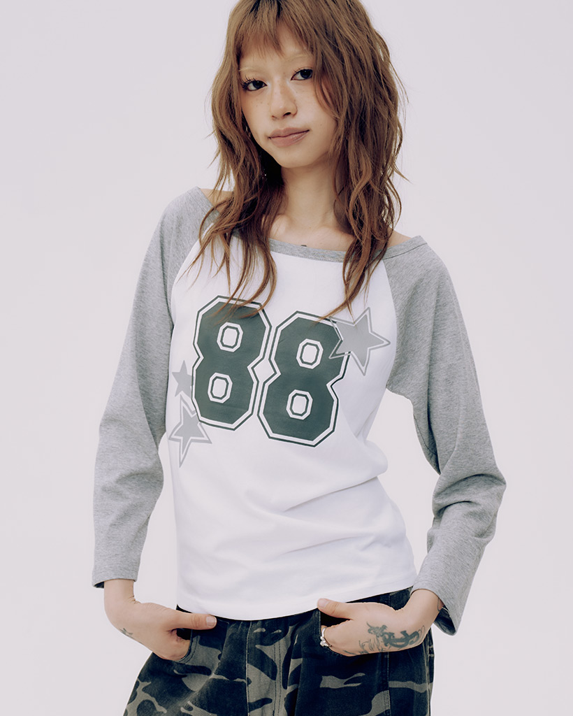 88プリンテッドセミクロップラウンドネック長袖Tシャツ_3COLOR