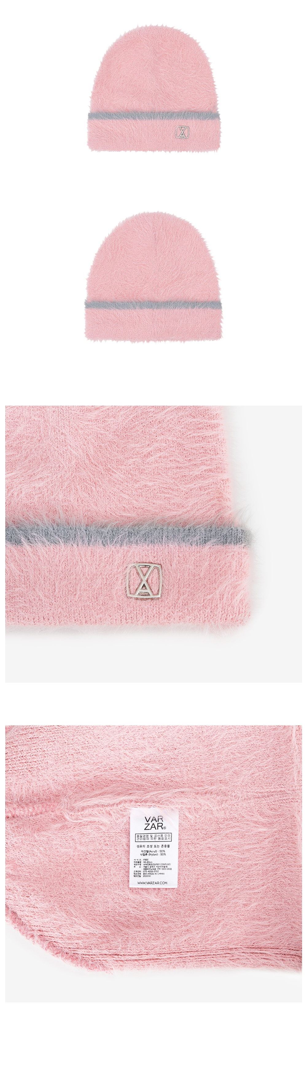 VA Square Stud Hairy Beanie Pink