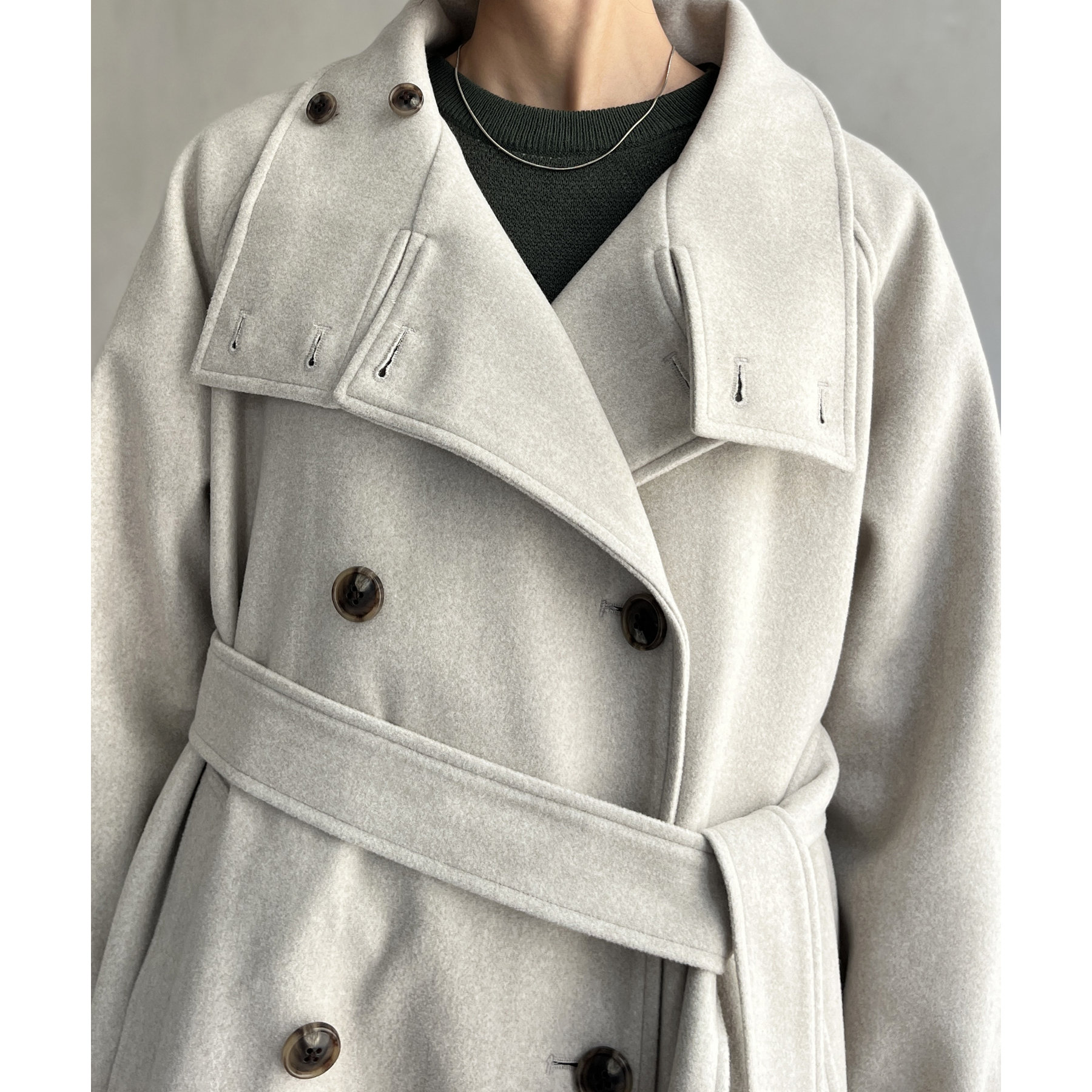 ・首元がスッキリとしたステンカラーと