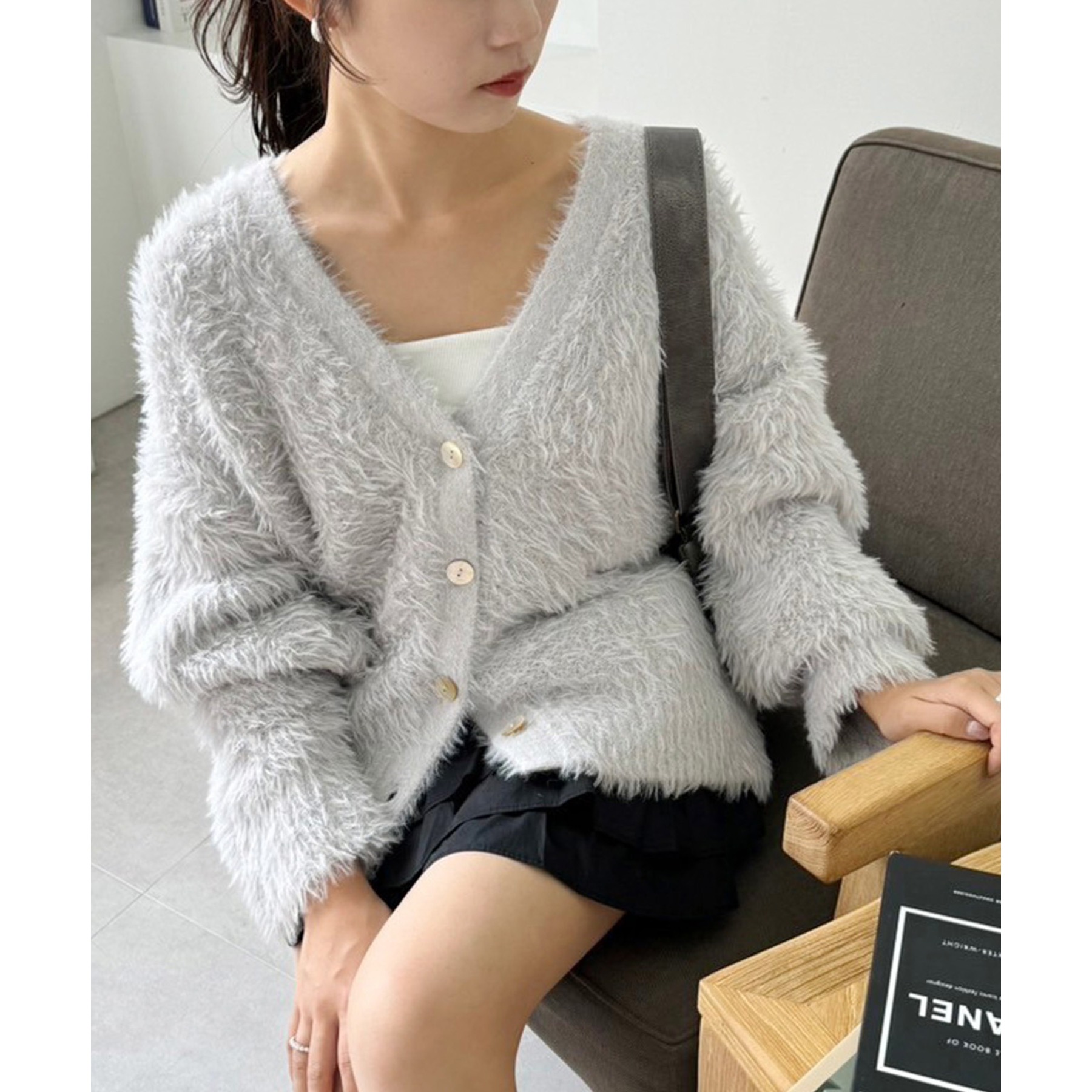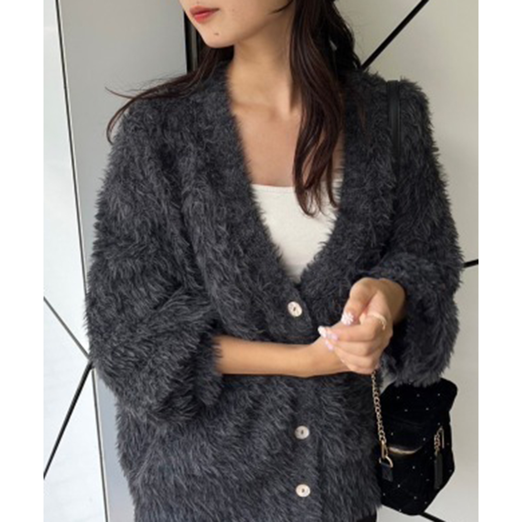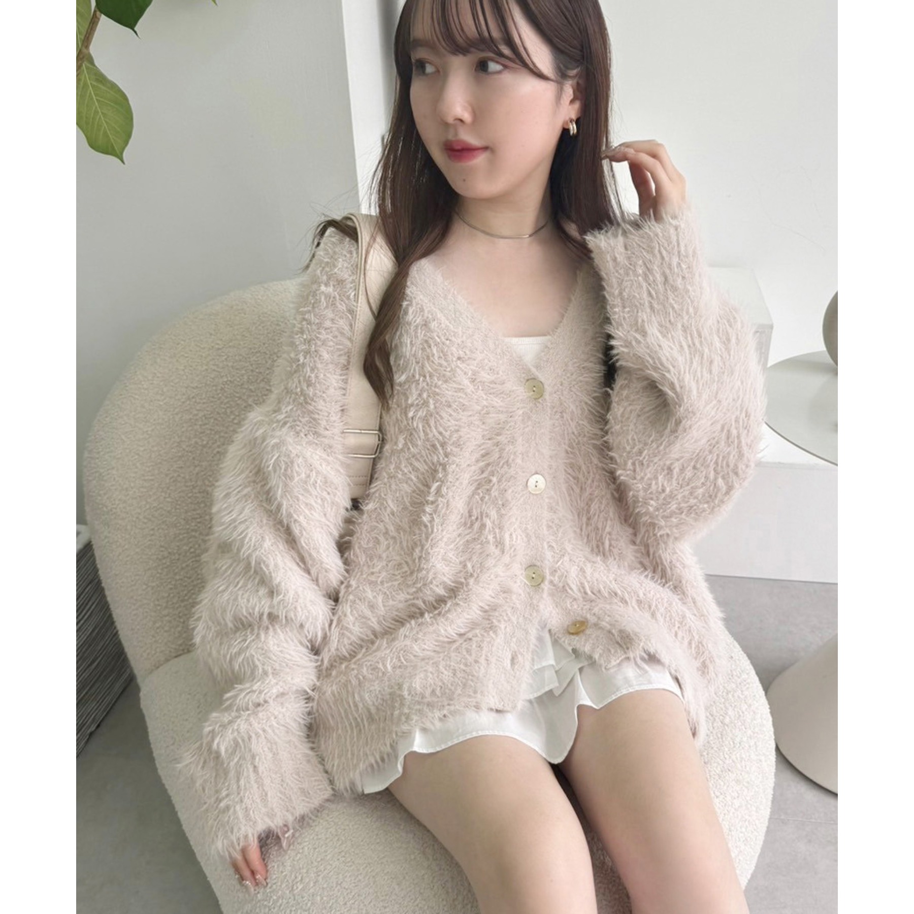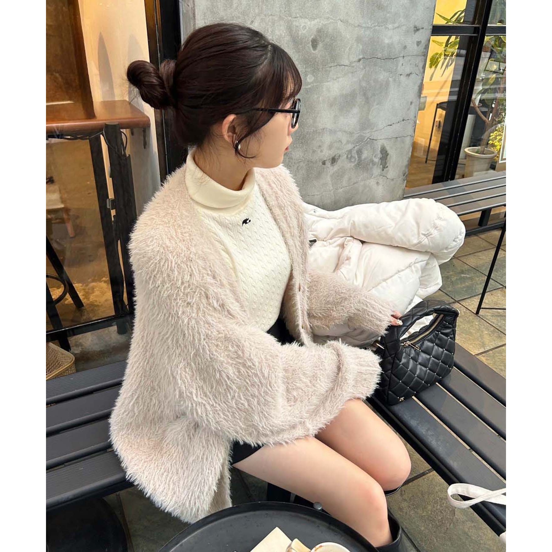 柔らかい毛足のフェザーを使ったナイスクラップらしいニットカーディガン。