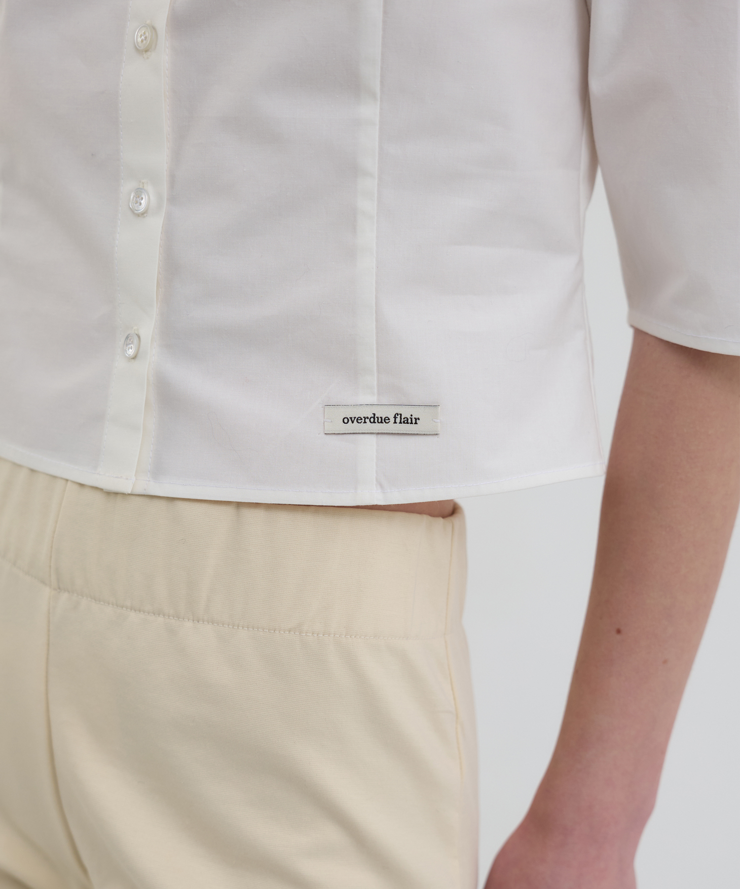 -マットな表面感のコットン素材にベーシックなホワイトカラーで、さまざまなスタイリングに活用しやすいです。