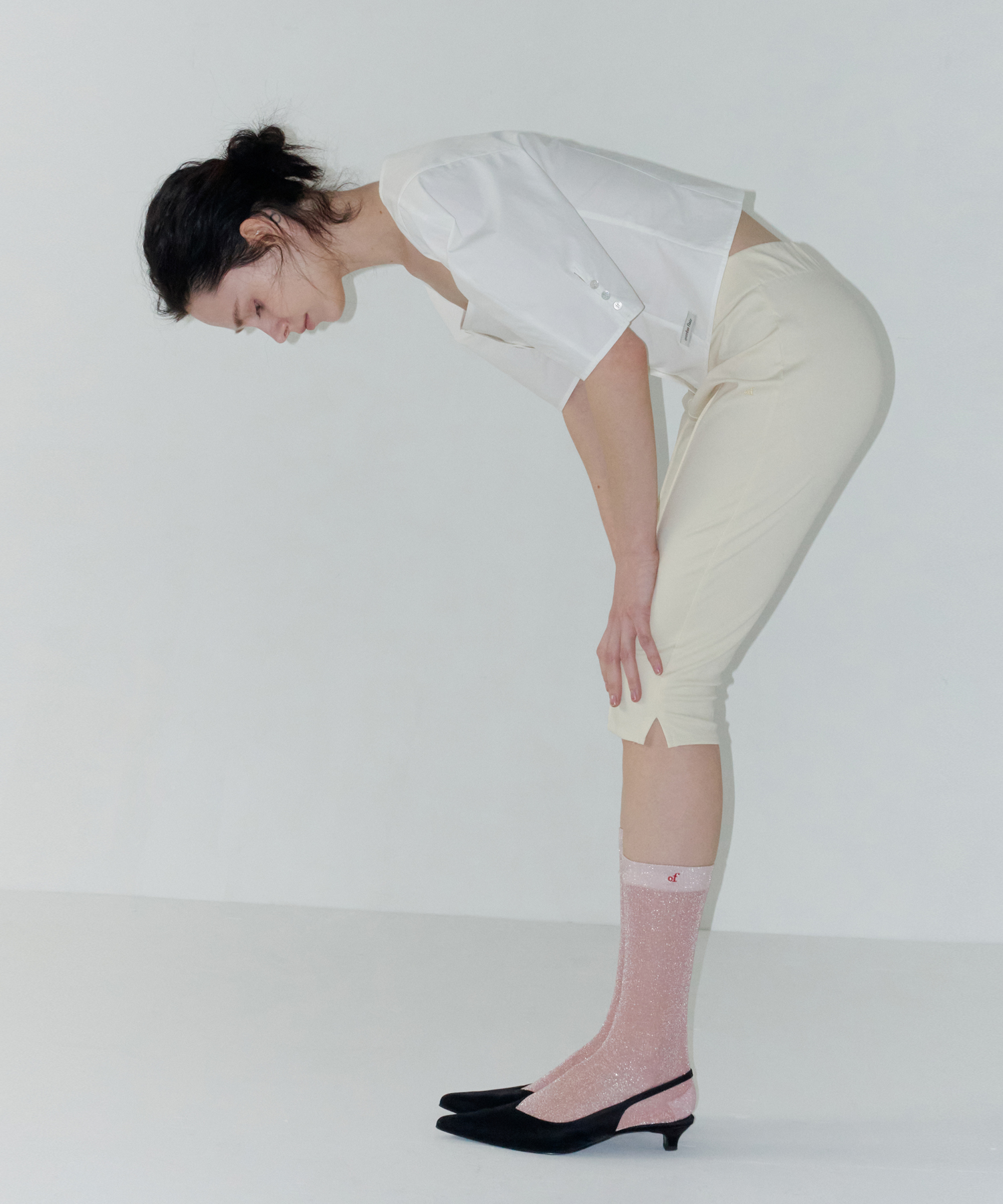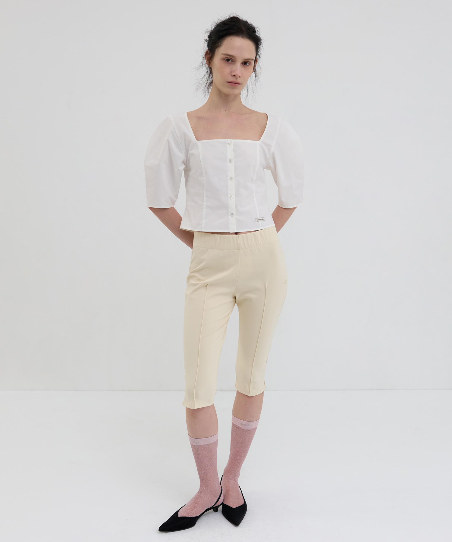 -フロントの切替ラインでスリムさを強調したセミクロップ丈のデザインです。
