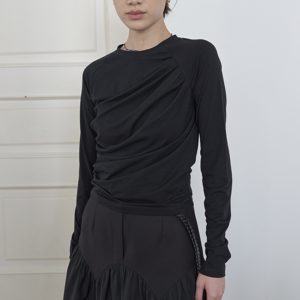 RAGLAN SHIRRING T-SHIRT_BLACK