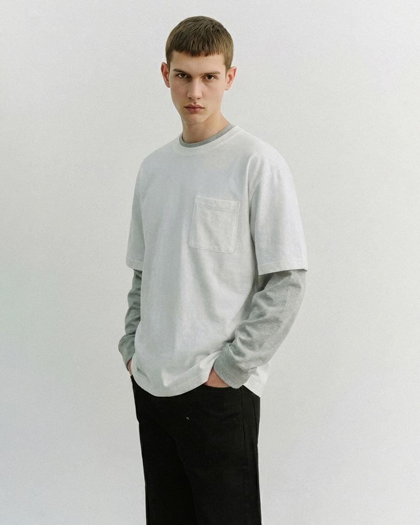 UNISEX LAYERED SET-UP T-SHIRT OFF WHITE MELANGE GREY_M_UDTS6A117OW