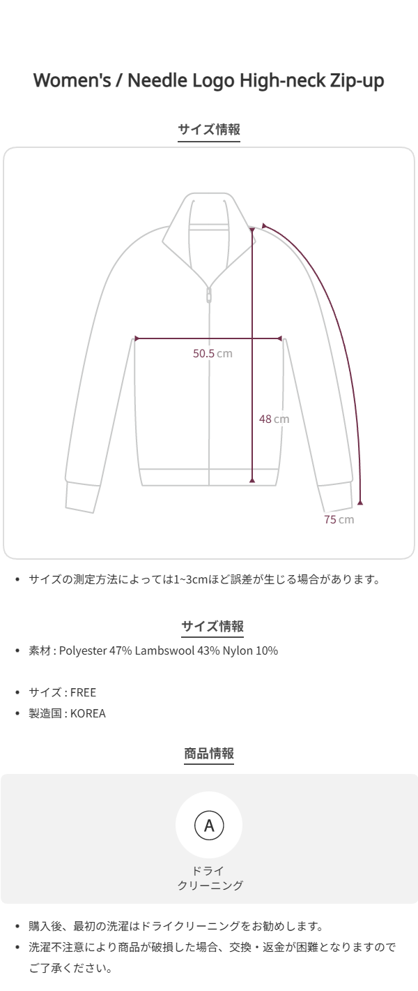 Needle Logo High-neck Zip-up (Black)