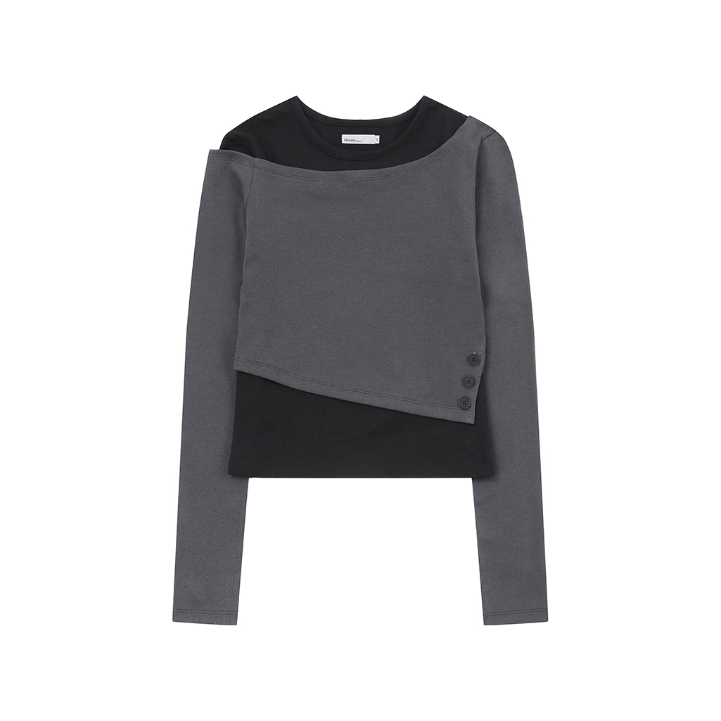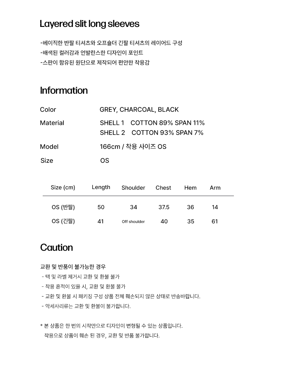 Layered slit long sleeves CHARCOAL
