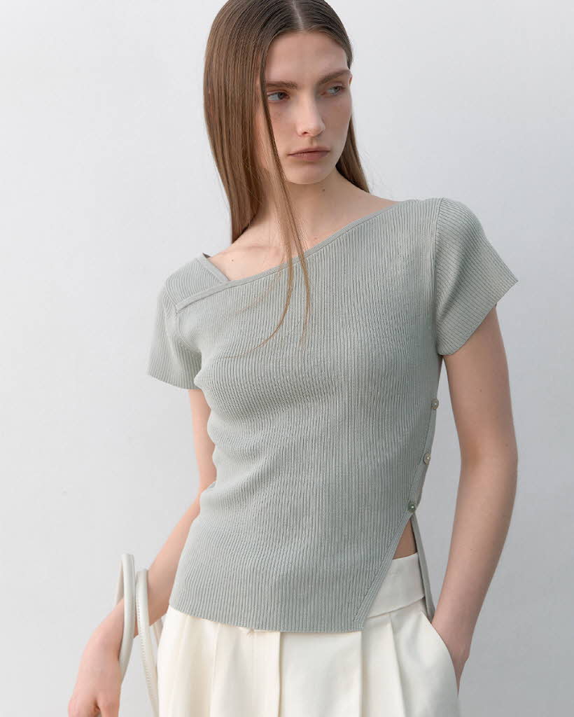 (Z-T-6651)UNBALANCED CUTOUT SLIM KNIT
