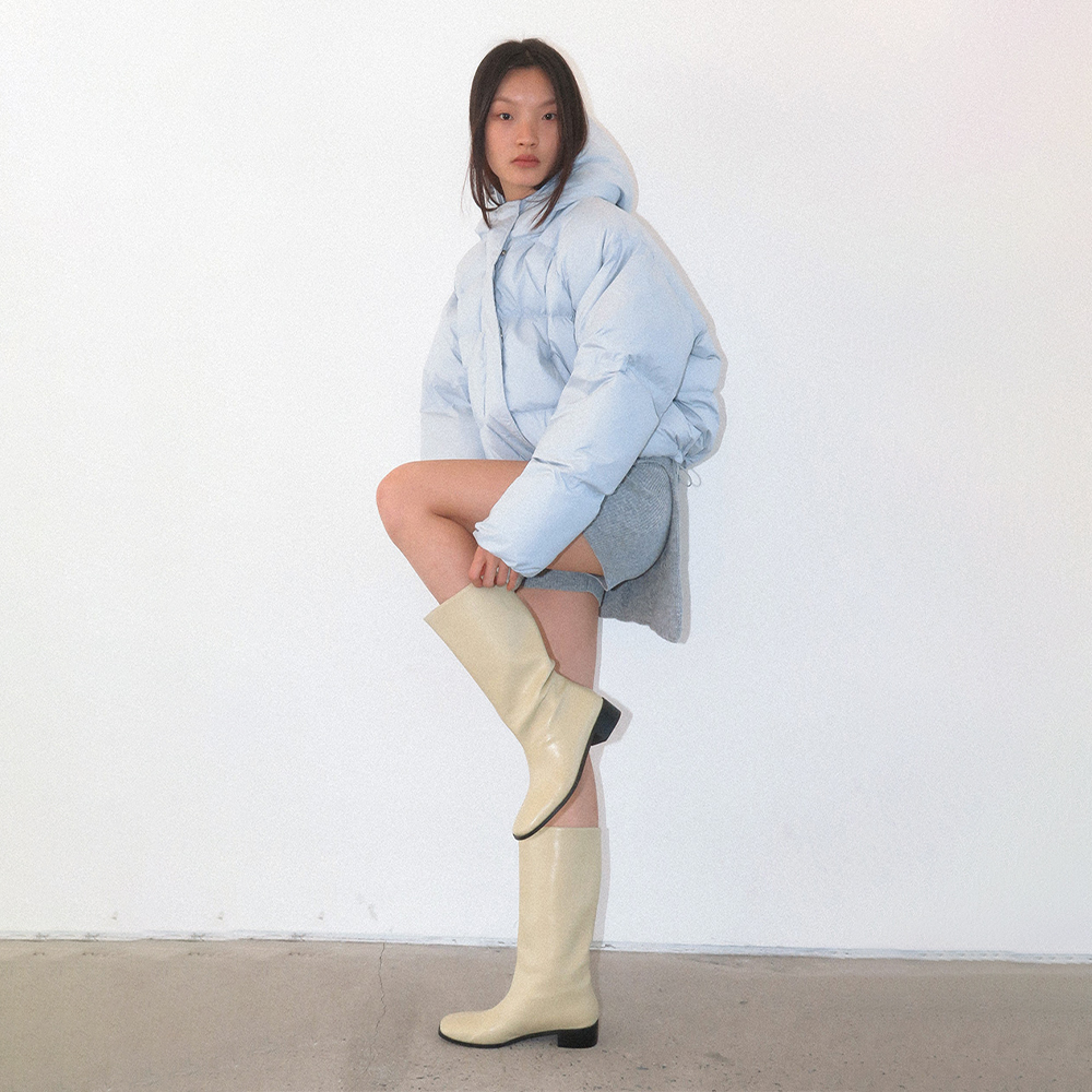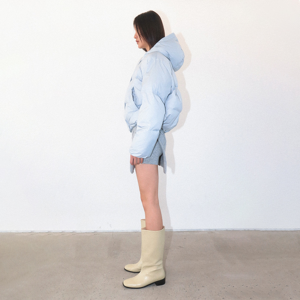 [yu x kijun] Arc Puffer Jacket Silver Blue
