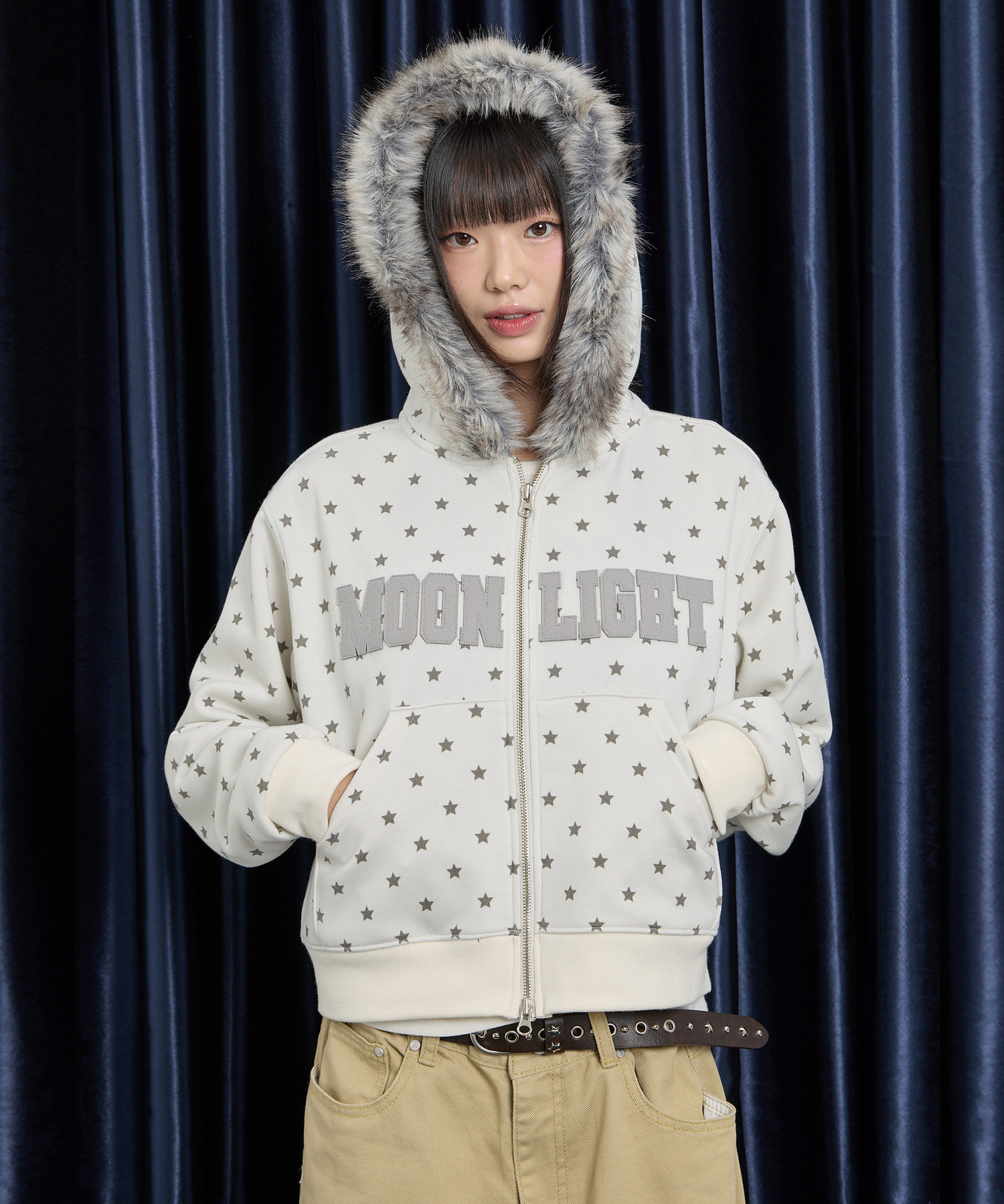 【購入特典】[Influencer pick] MOONLIGHT Applique Fur Hood Zip Up IVORY