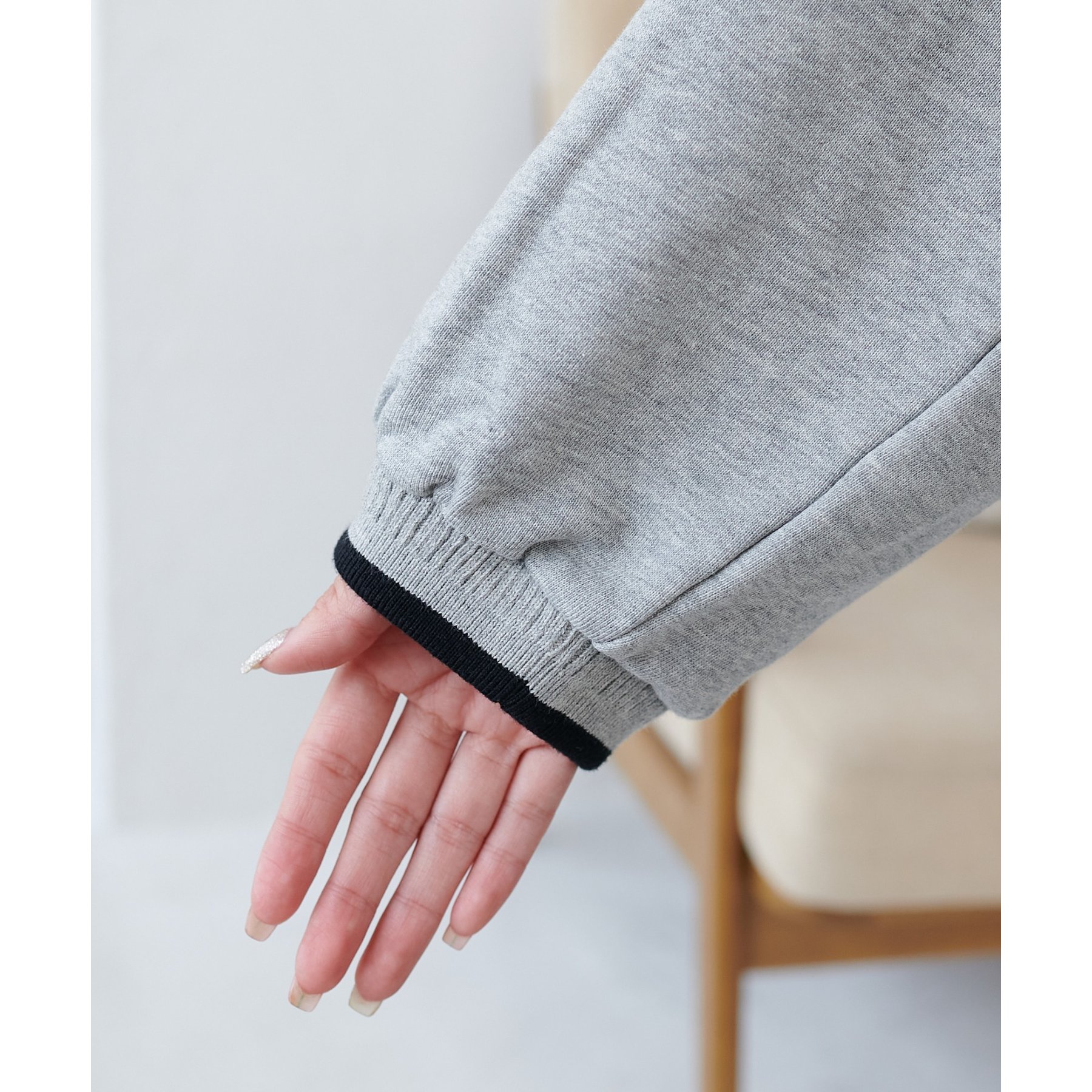 170cmメンズスタッフ:袖口と首元のラインが程よく存在感があって、コーデのポイントに◎厚すぎない裏毛素材なので、季節の変わり目にも重宝します。