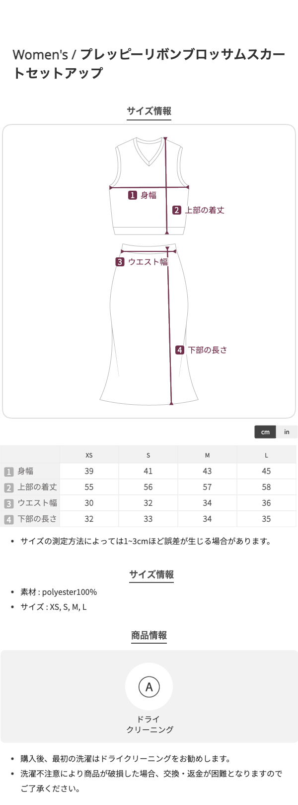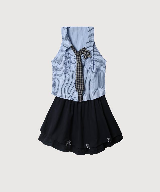 プレッピーリボンブロッサムスカートセットアップ