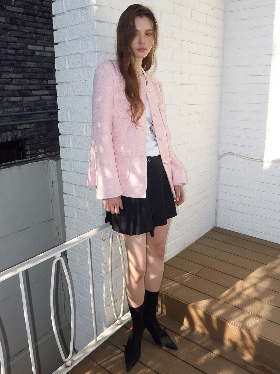 Stitch 4-Pocket Tweed Jacket, Pink